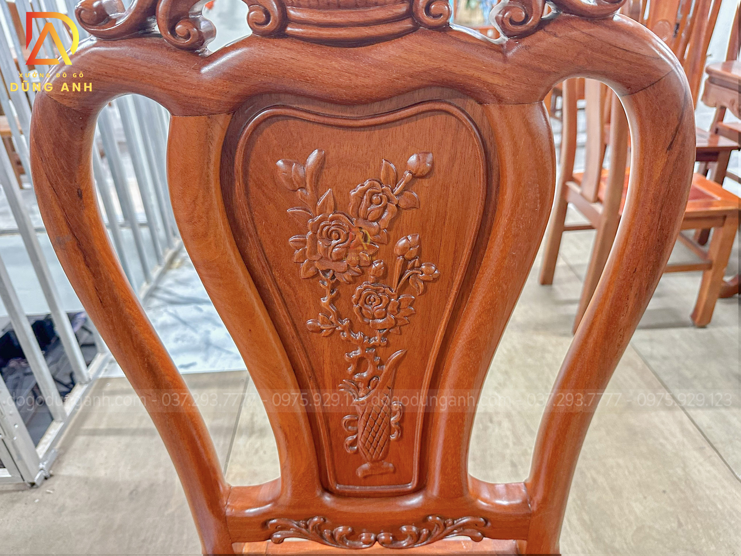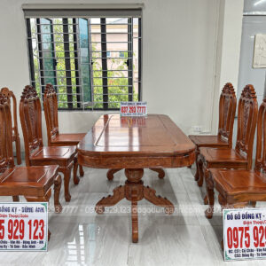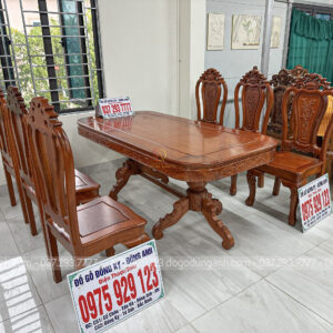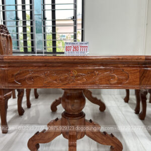 Dogodunganh | Bộ 6 Ghế Hoa Cúc + Bàn Chữ Nhật Bo Góc – Gỗ Hương Đá