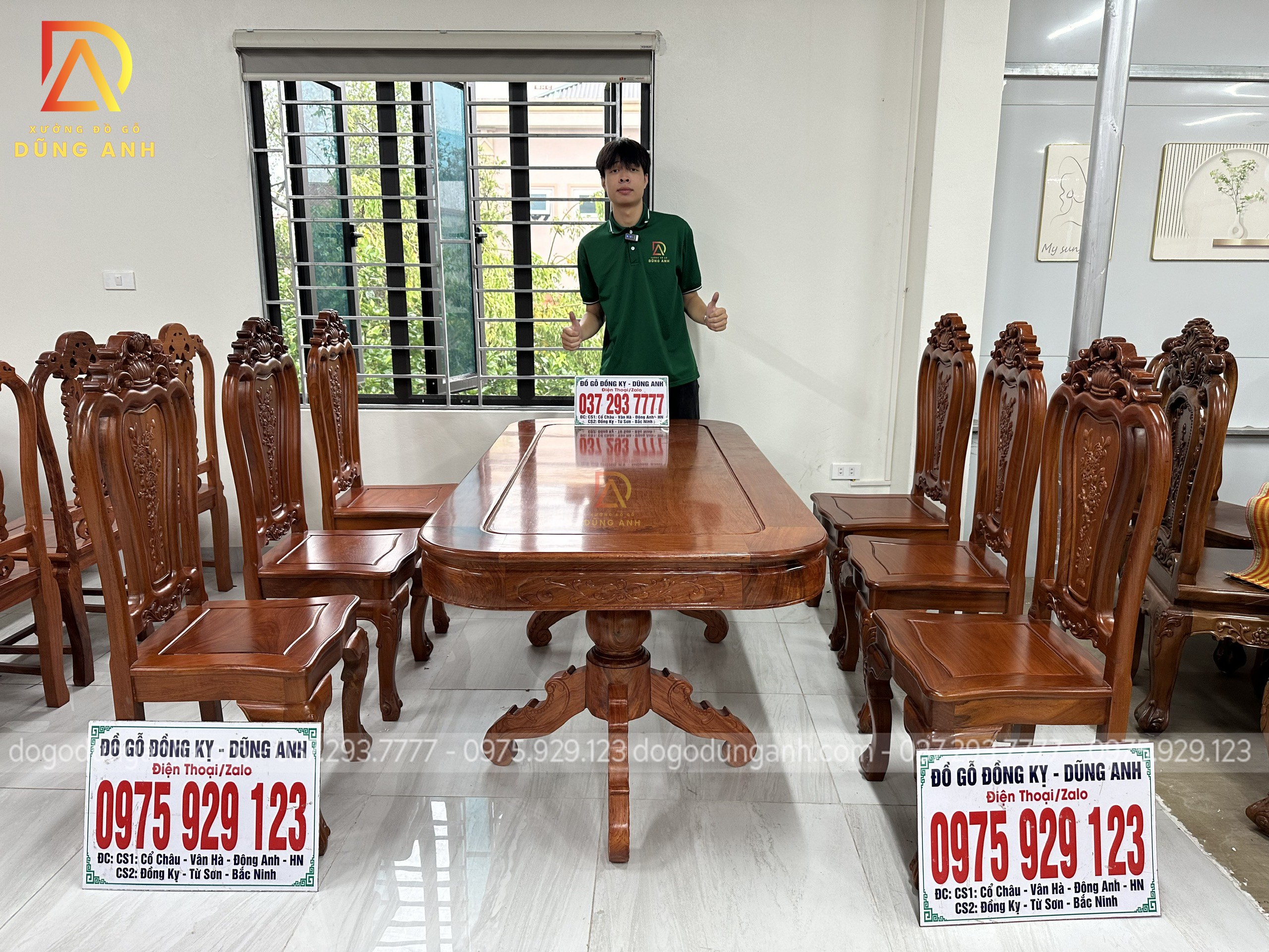 Quý khách có thể tham khảo thêm các mẫu bàn ghế ăn đẹp, bàn ghế ăn nguyên khối, các mẫu ghế ăn đẹp thì có thể liên hệ ngay với Xưởng đồ gỗ Dũng Anh qua: