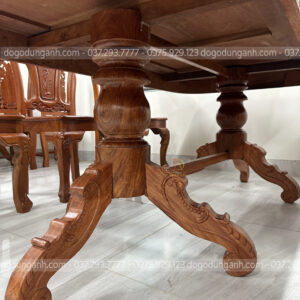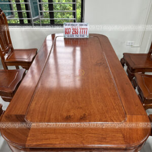 - Chiếc bàn có đường kính chiều rộng là 90 cm và chiều dài 180 cm kích thước cực kì phù hợp với mẫu ghế cây đàn , mặt bàn được làm liền một tấm vân Gỗ Hương Đá cực kì đanh được phun sơn màu trầm cực kì tô điểm độ vân veo