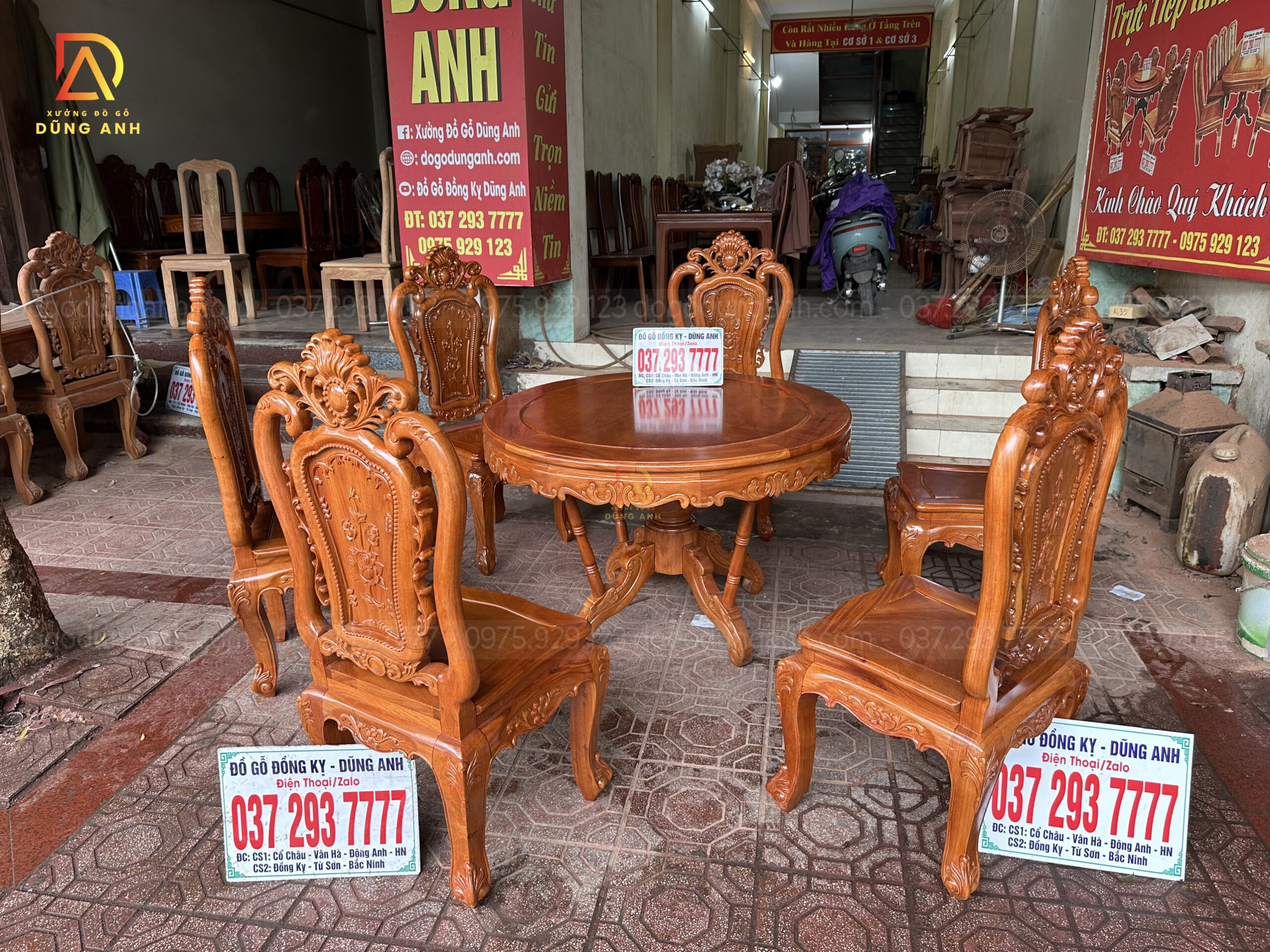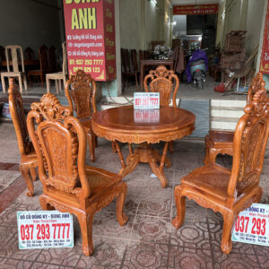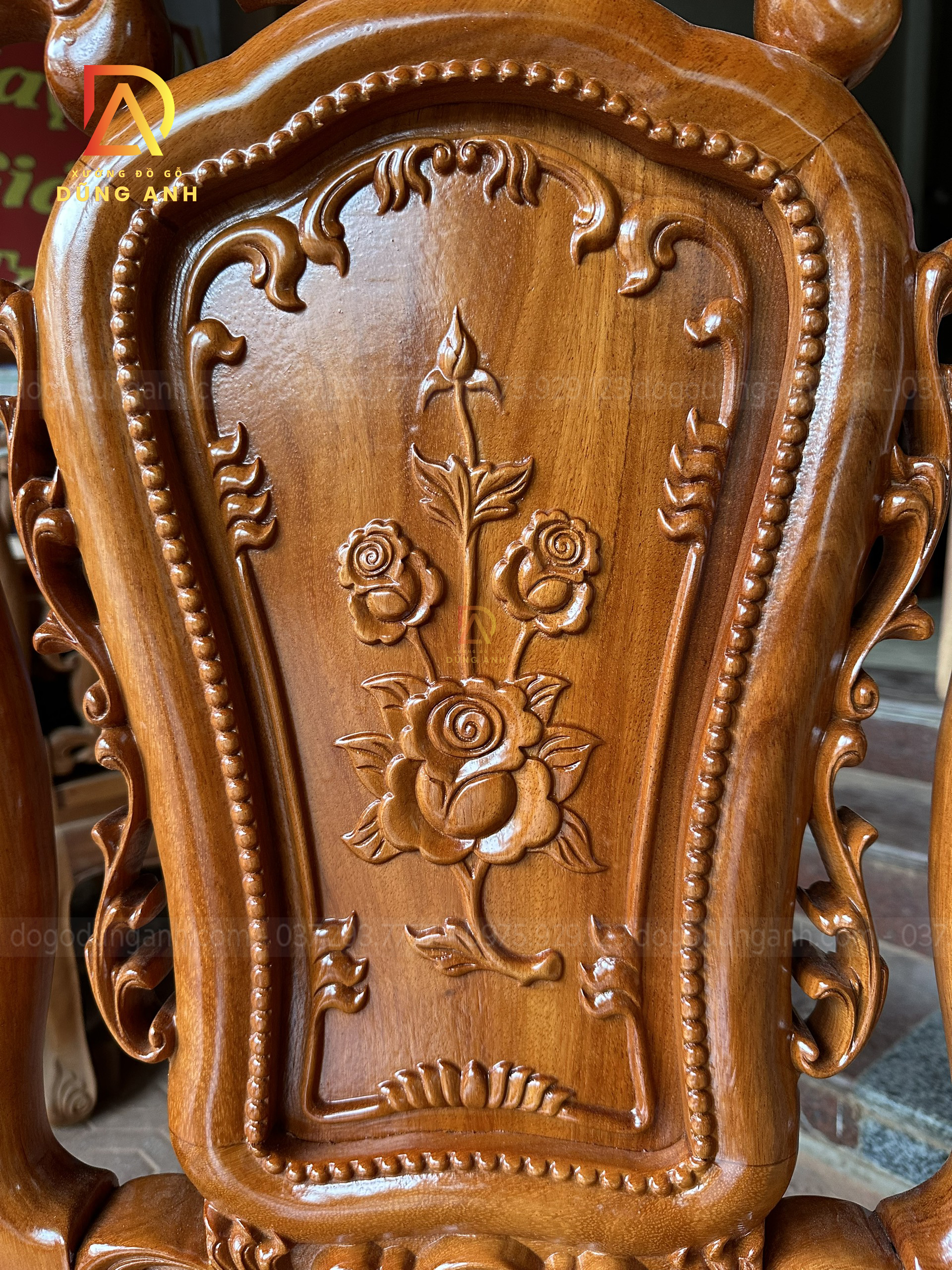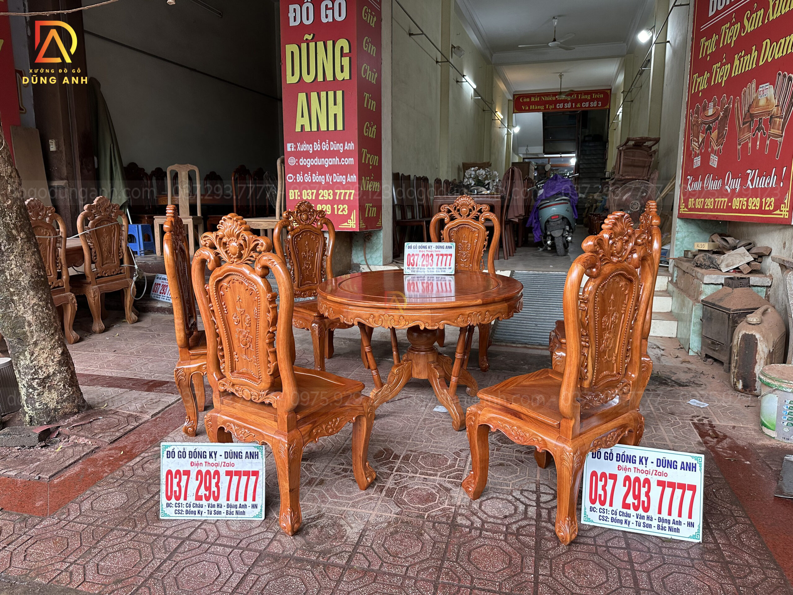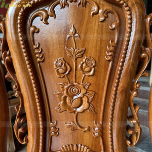 Bộ 6 Ghế Louis Hoa Hồng + Bàn Tròn nhỏ ván liền 1 tấm – Gỗ Gõ Đỏ