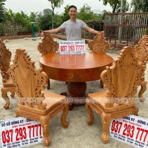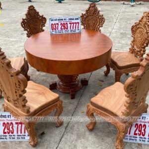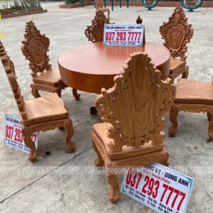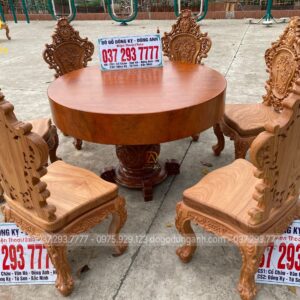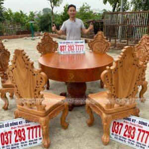 Bộ 6 ghế Louis Hoa Hồng thiết kế mới kết hợp với SIÊU PHẨM bàn tròn NGUYÊN KHỐI chất liệu gỗ Gõ Đỏ