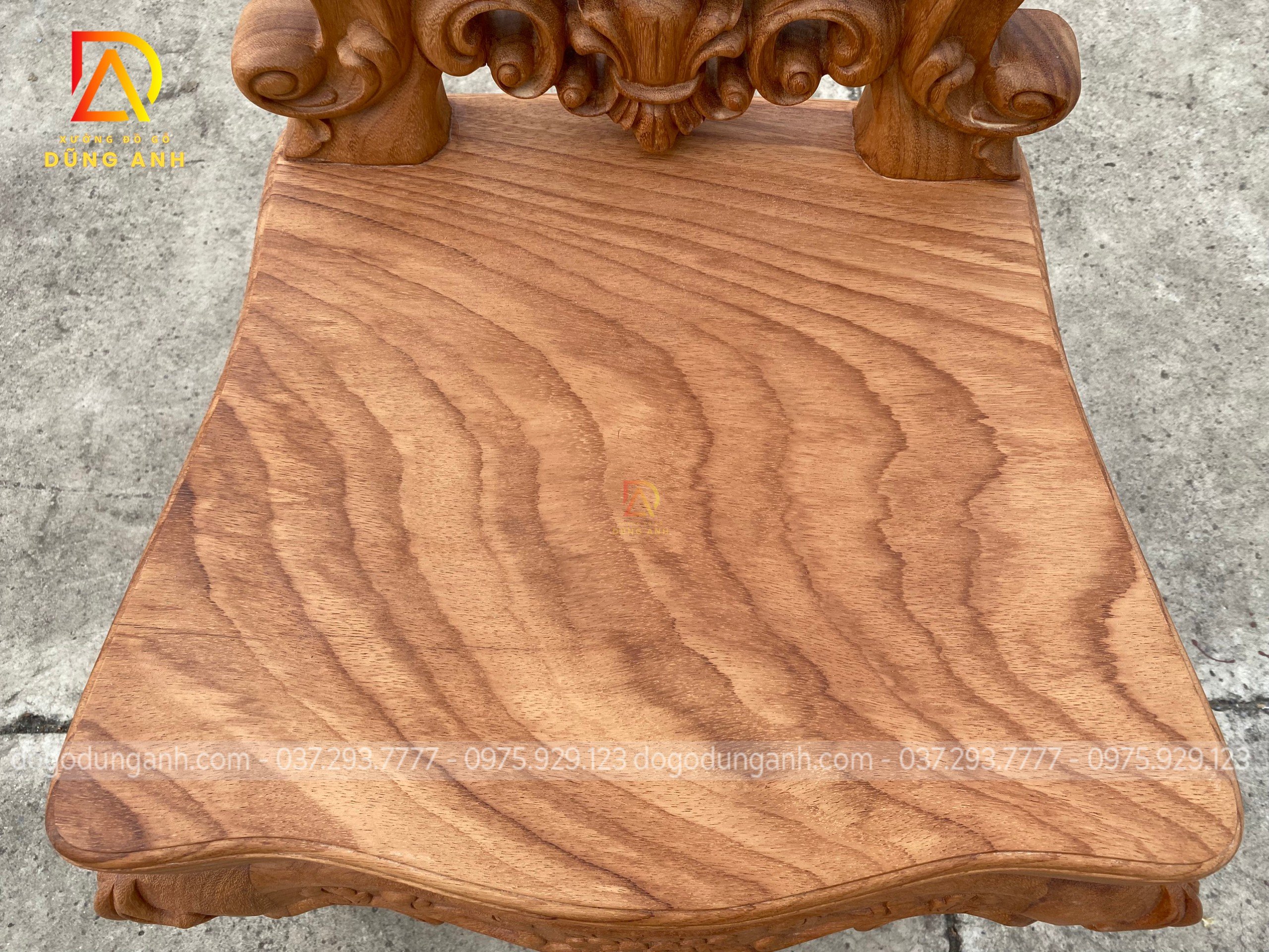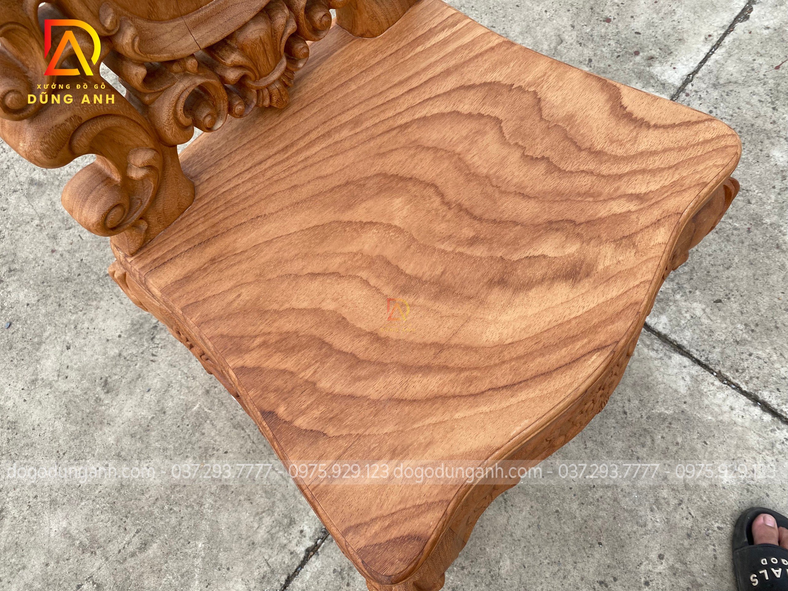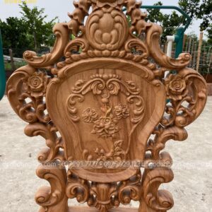 - Bản tựa của chiếc ghế với bản dày là 8 cm & 55 cm bản rộng liền 1 tảng NGUYÊN KHỐI được những nghệ nhân đục khắc TINH XẢO với đường nét tỉ mỉ đến từng CM