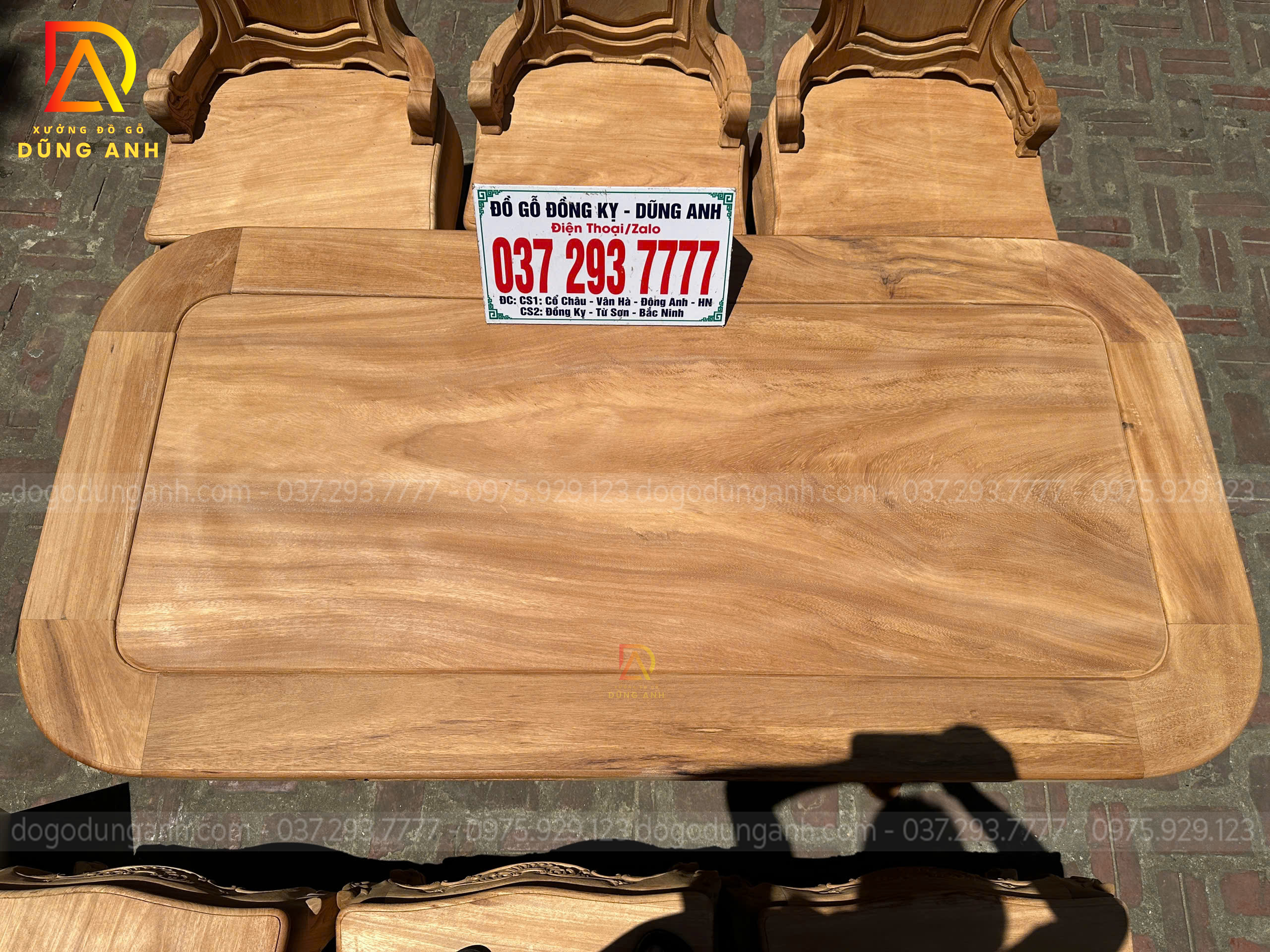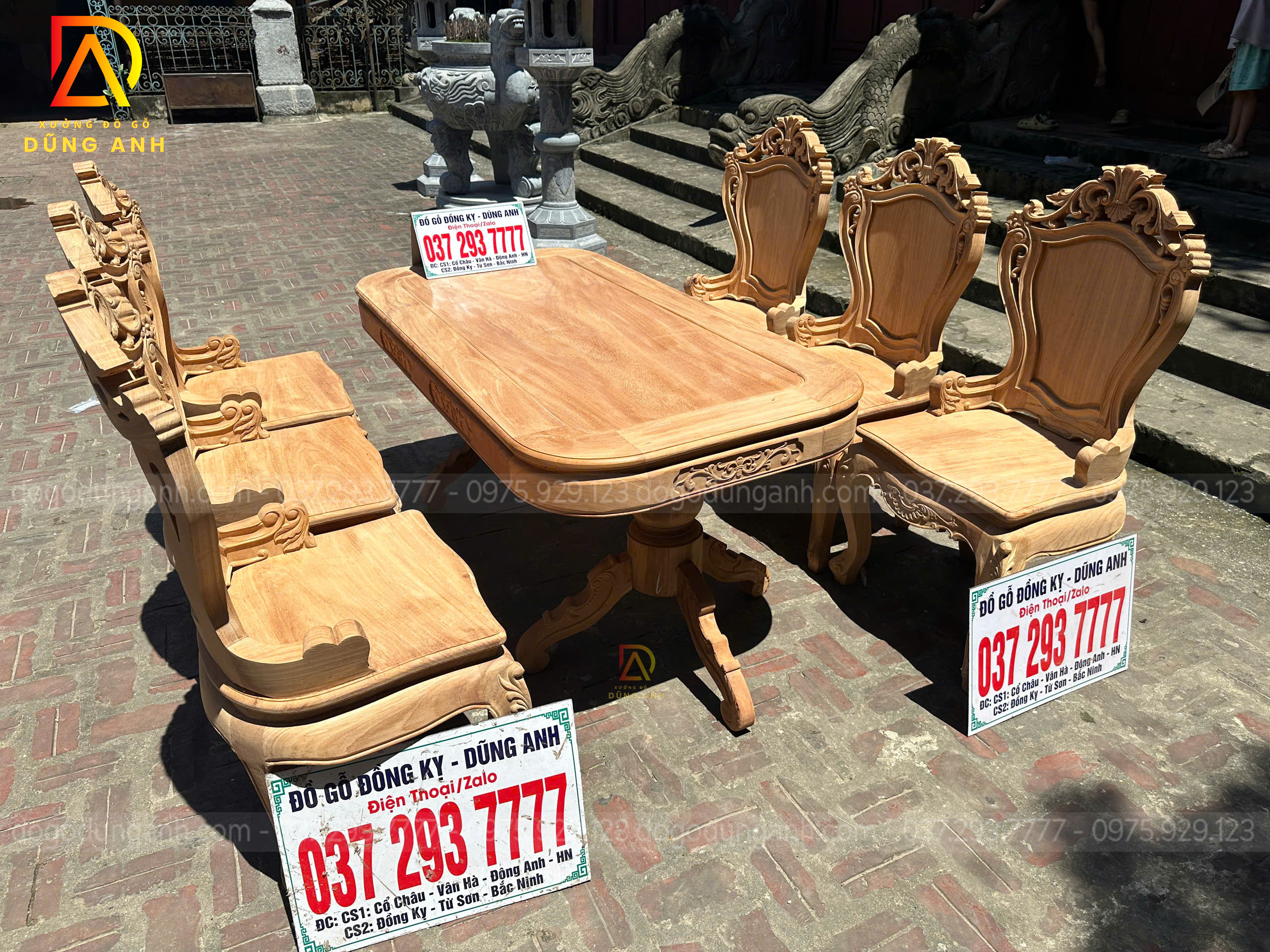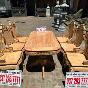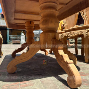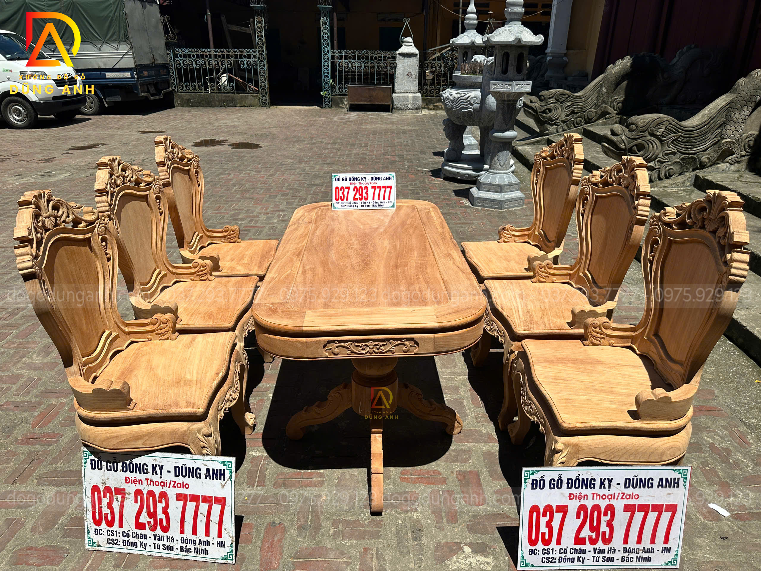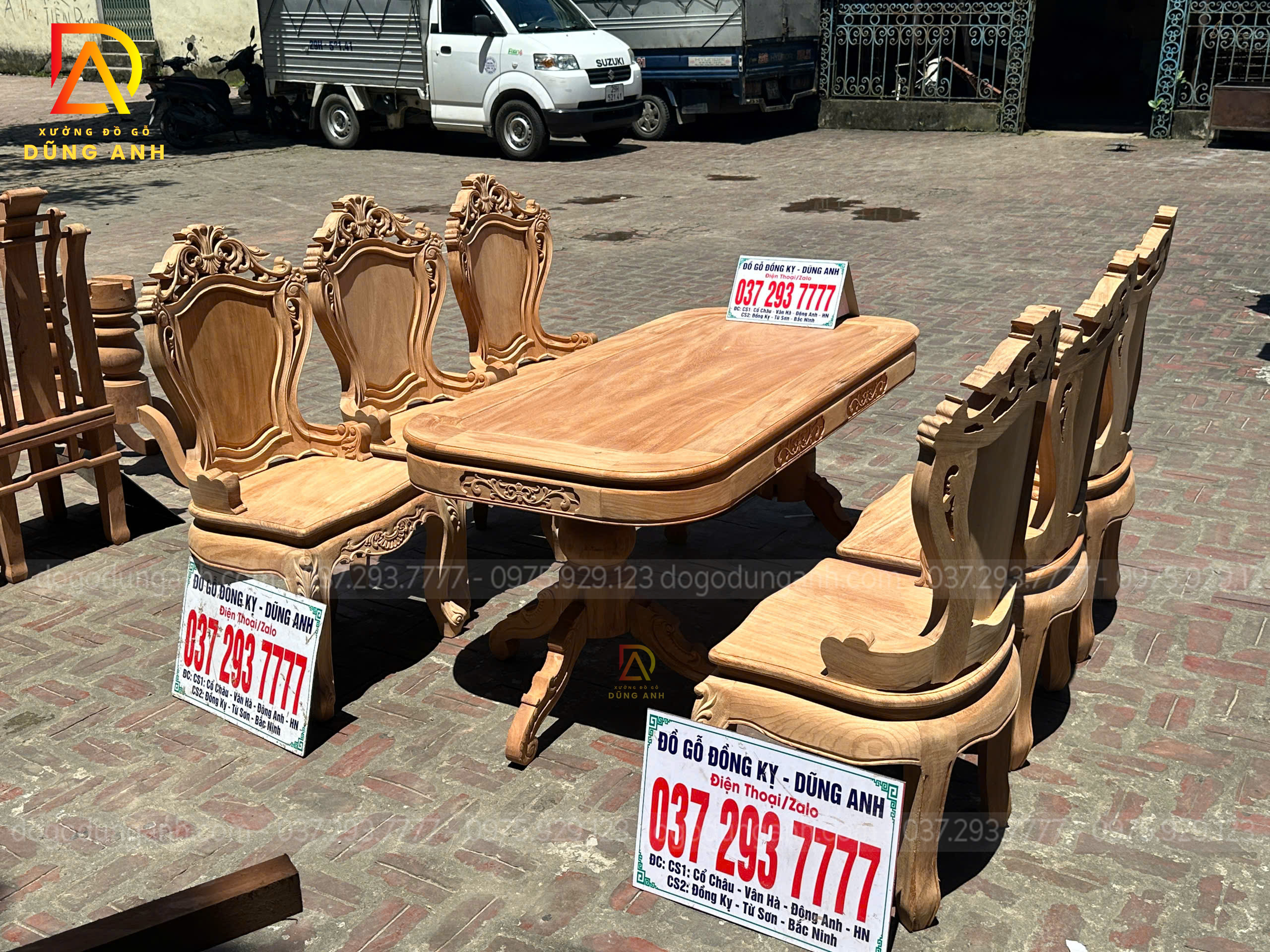 Bộ 6 Ghế Louis Hoàng Gia Có Tay + Bàn Chữ Nhật (Gỗ Gõ Đỏ)