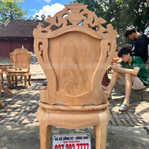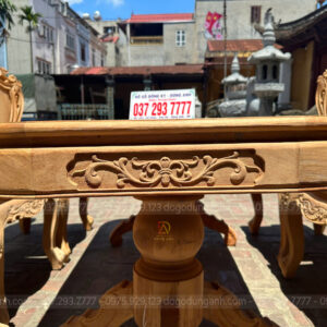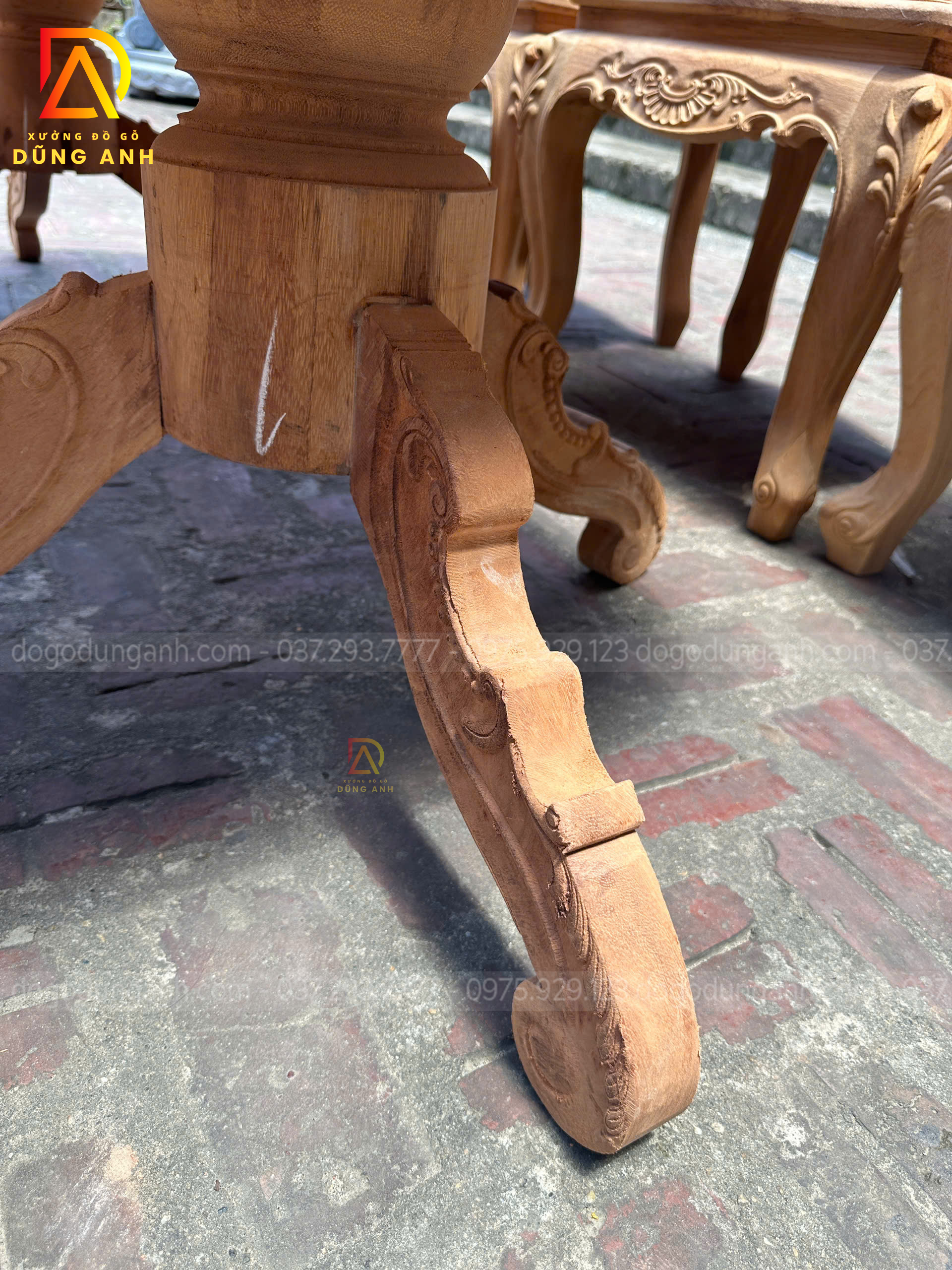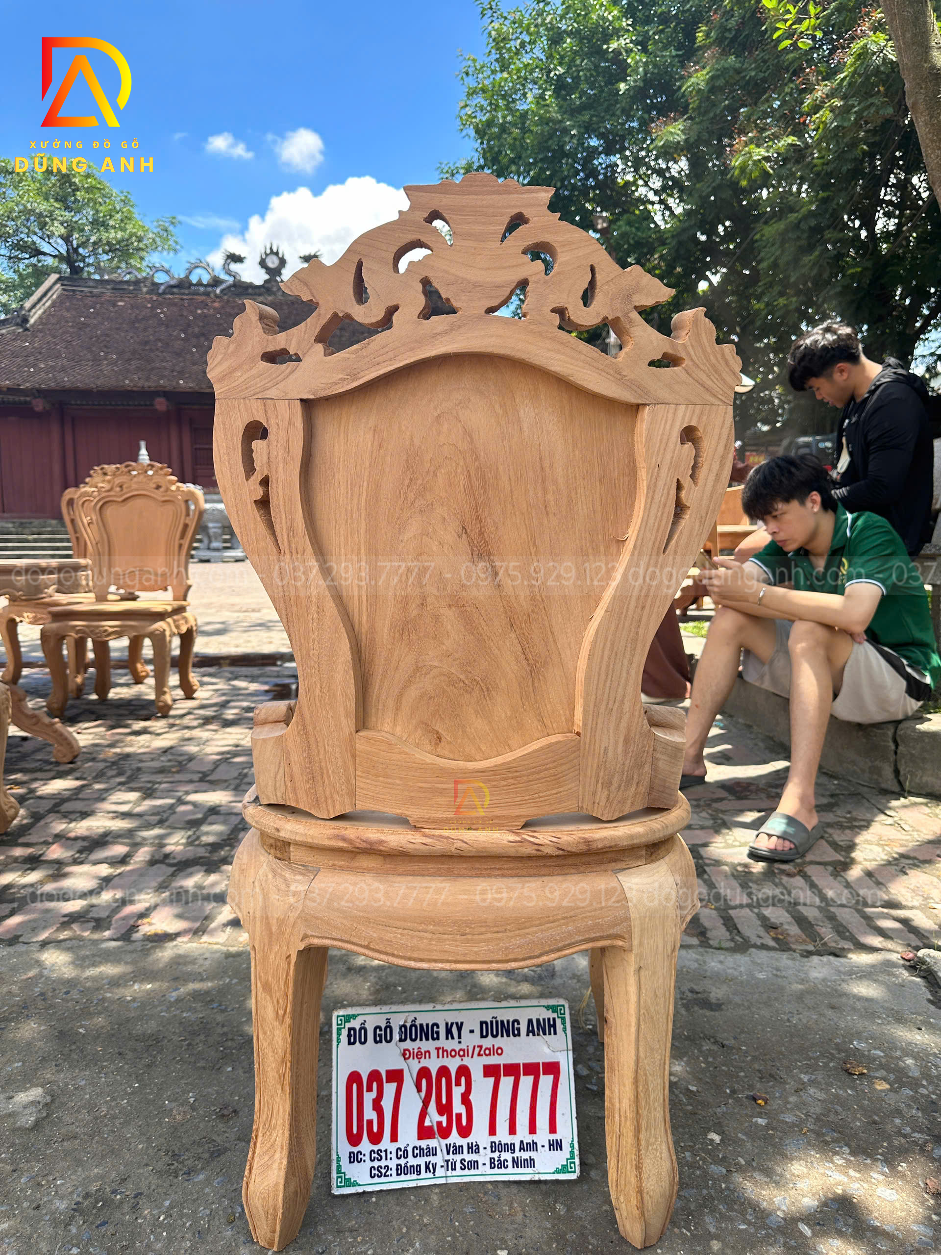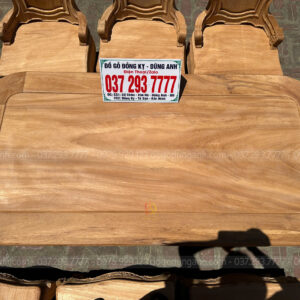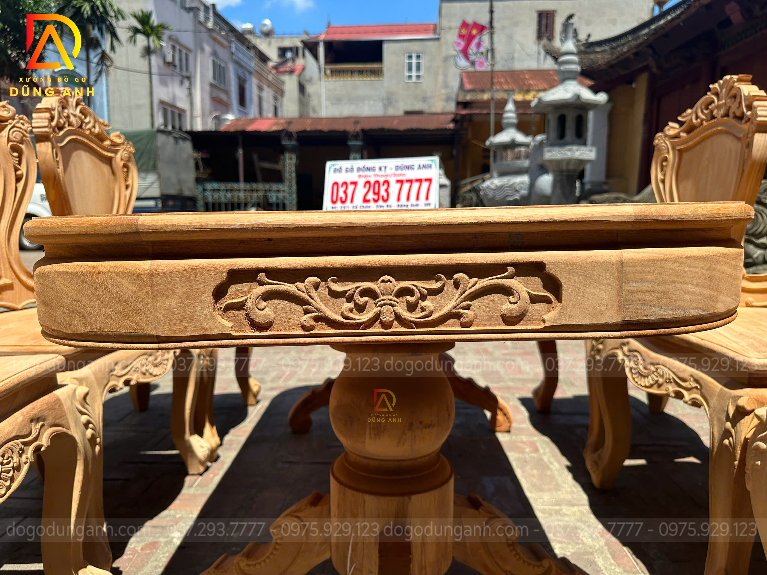 Bộ 6 Ghế Louis Hoàng Gia Có Tay + Bàn Chữ Nhật (Gỗ Gõ Đỏ)