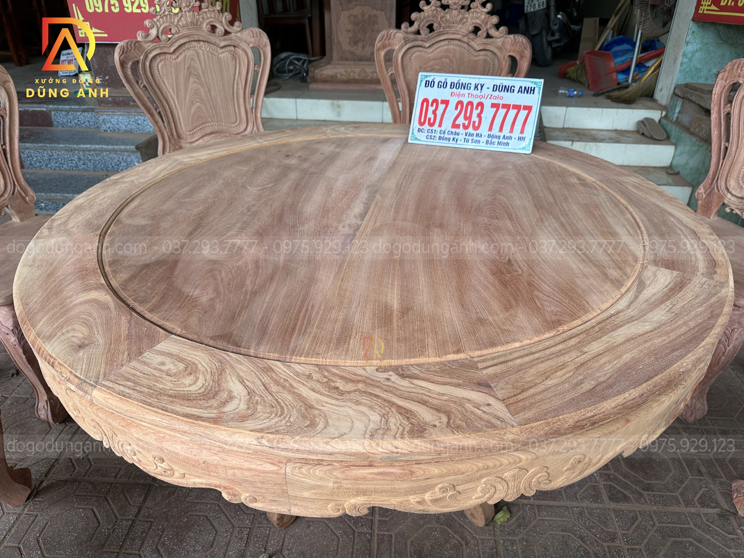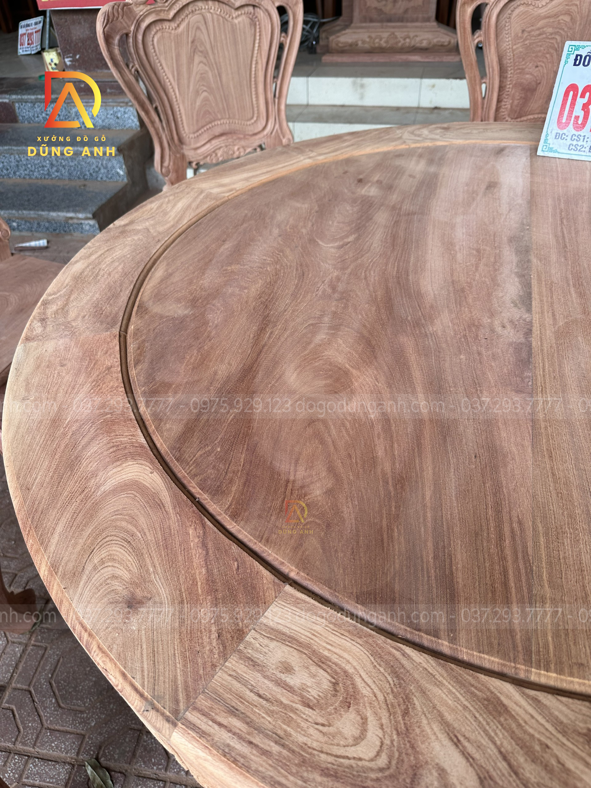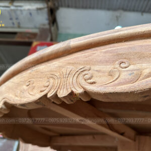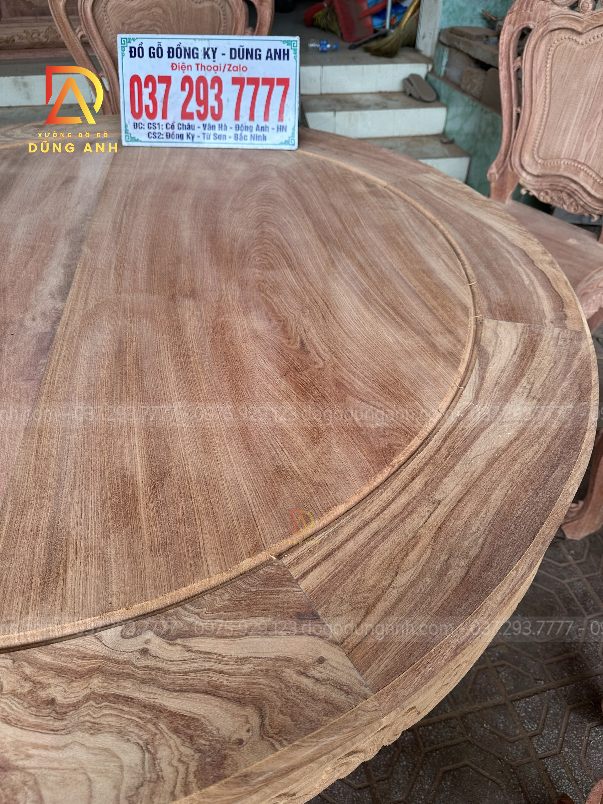 - Chiếc bàn có đường kính 138 cm rộng rãi có thể là khủng , xung quanh được làm 8 khung tranh lồng vào nhau sẽ khác và đặc biệt hơn so với những xưởng khác là tất cả khung tranh đều có mộng lối với nhau tạo ra độ chắc chắn và ăn khớp hơn