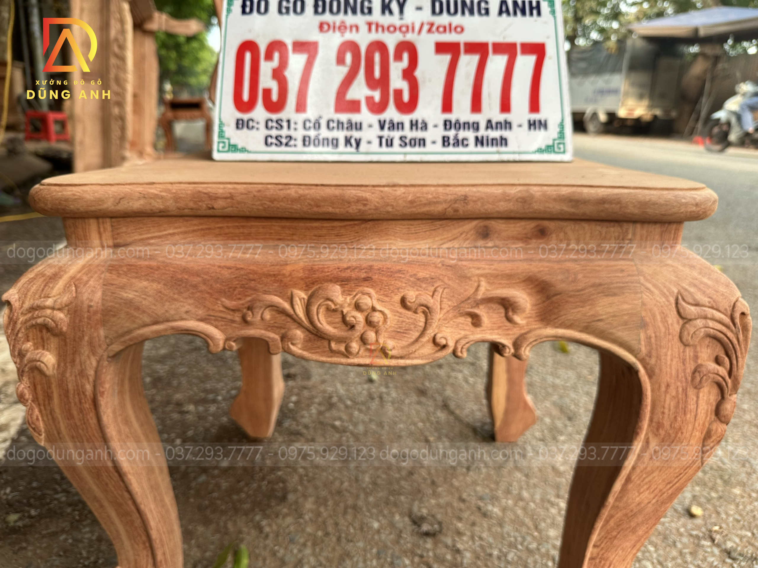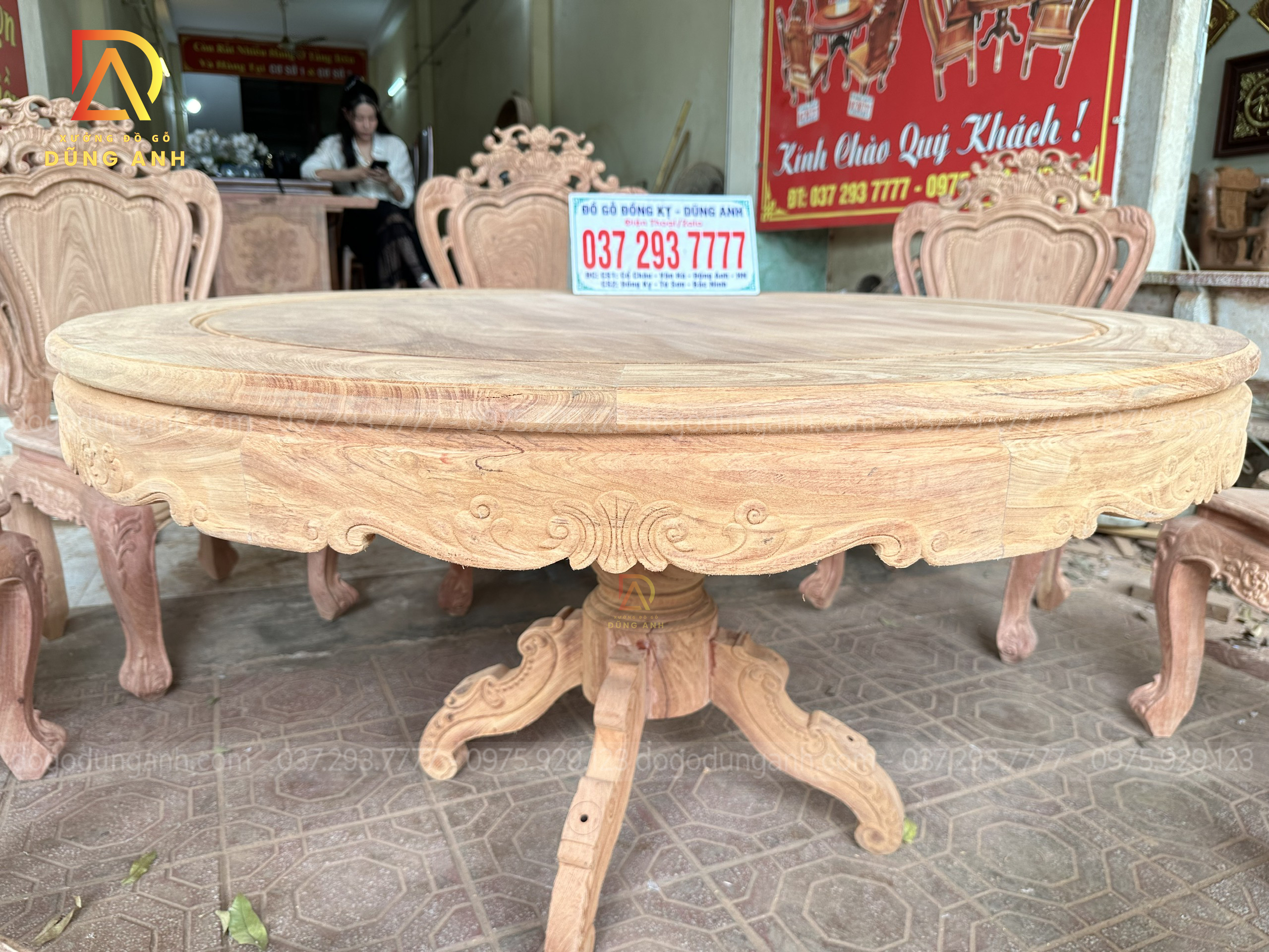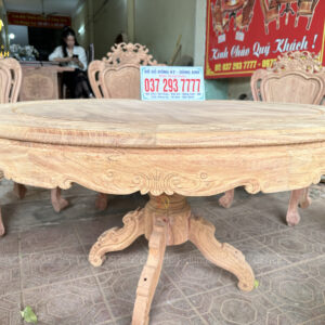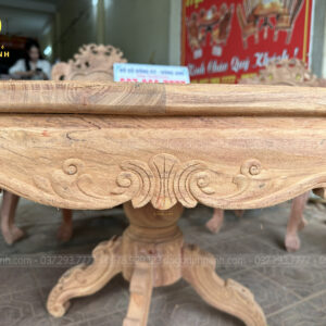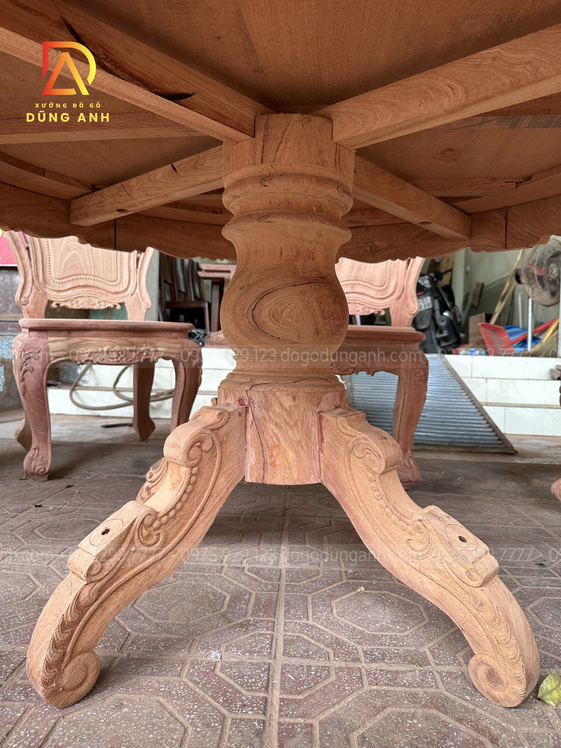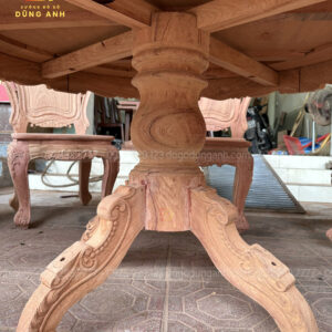 - Chân trụ 100% đặc liền Nguyên Khối và được tiện tròn thủ công bằng tay xung quanh chiếc chân trụ là 4 chiếc chân chó cũng được đục chạm không chỉ tạo thêm vẻ đẹp cho chiếc bàn mà còn giúp chiếc bàn được chắc chắn hơn