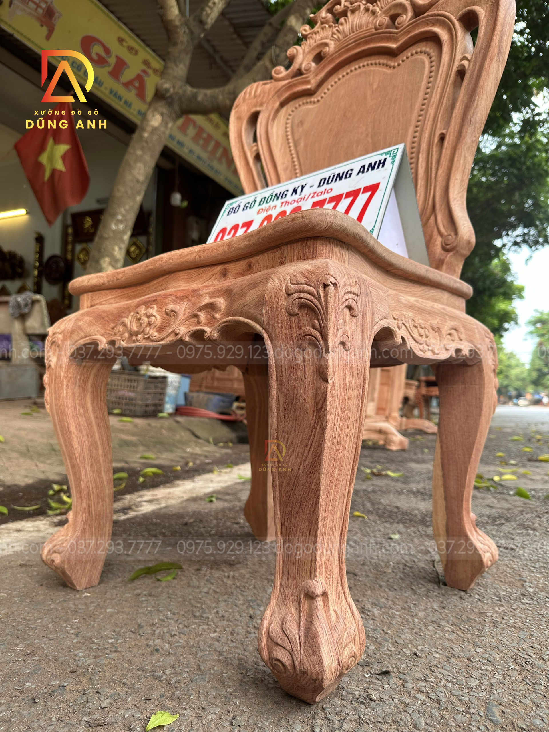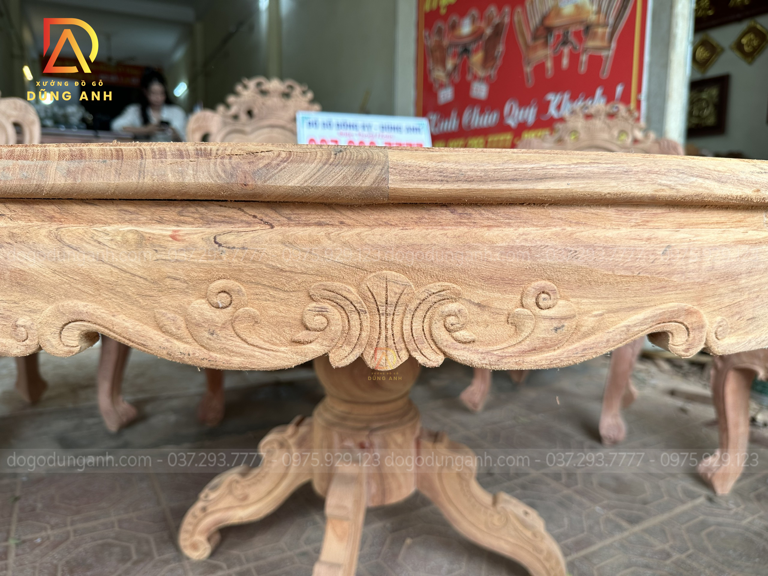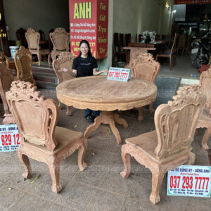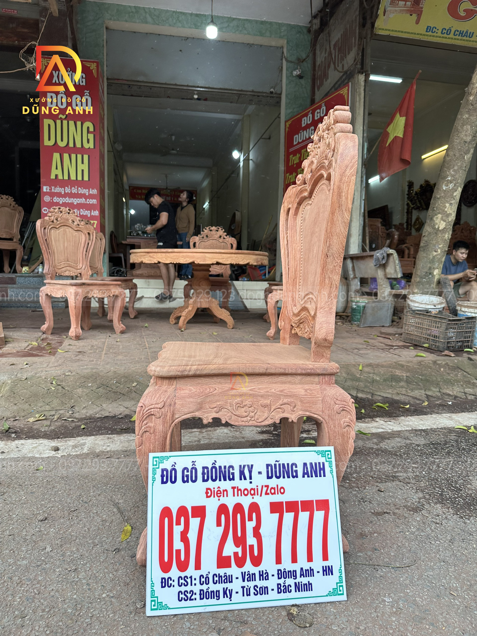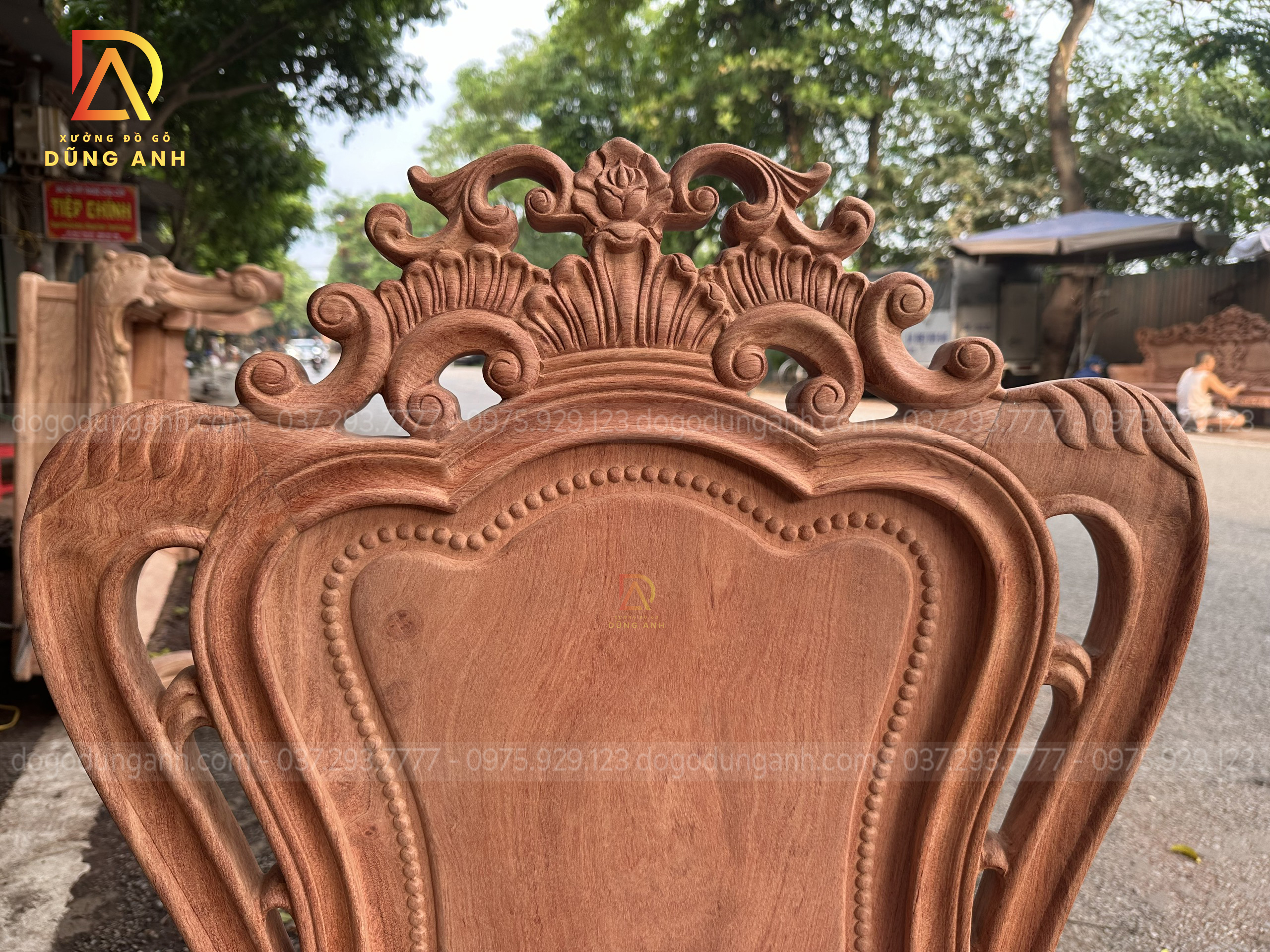Bộ 6 Ghế Louis Hoàng Gia + Bàn Tròn Yếm Vén – Gỗ Hương Đá