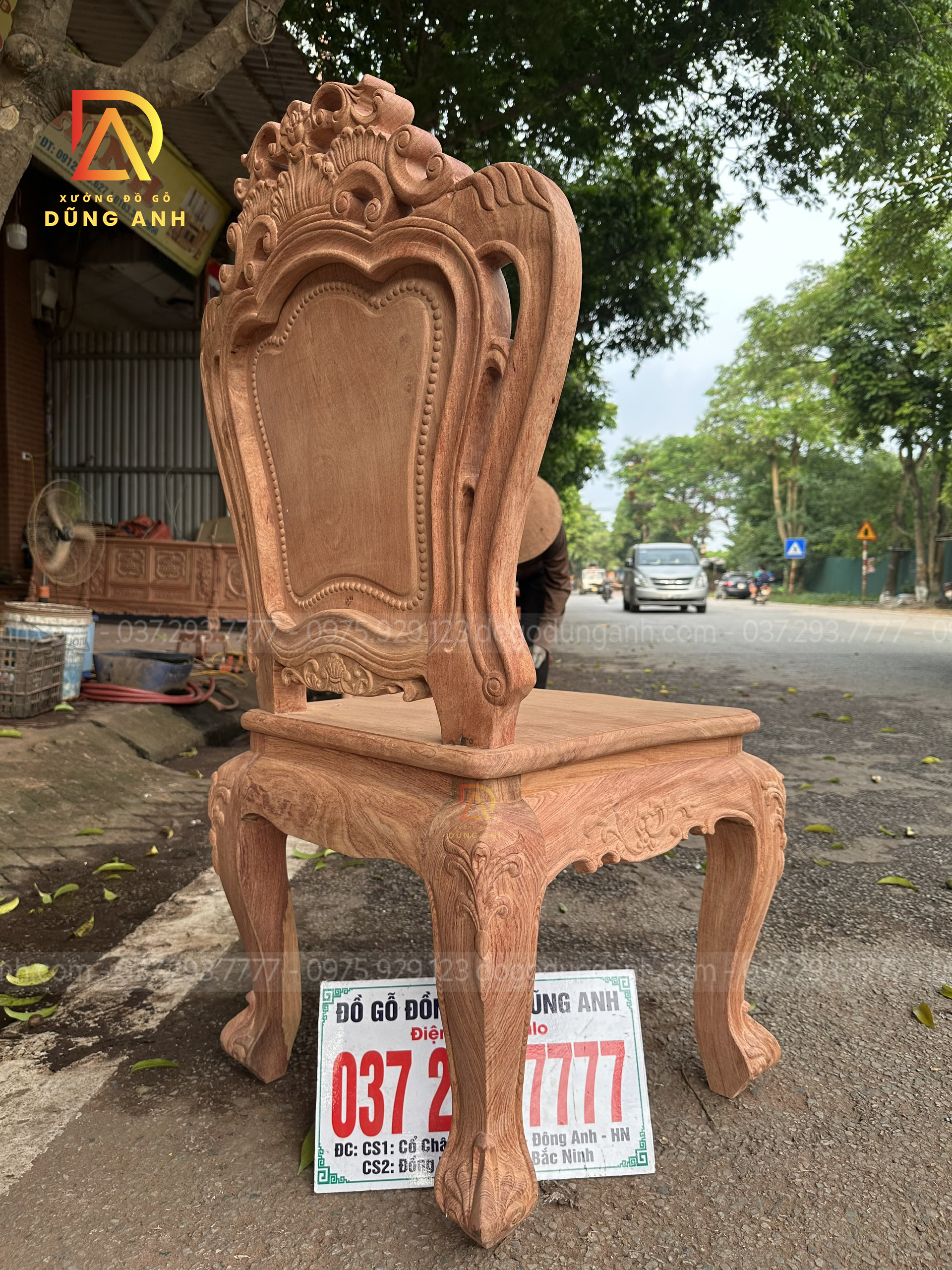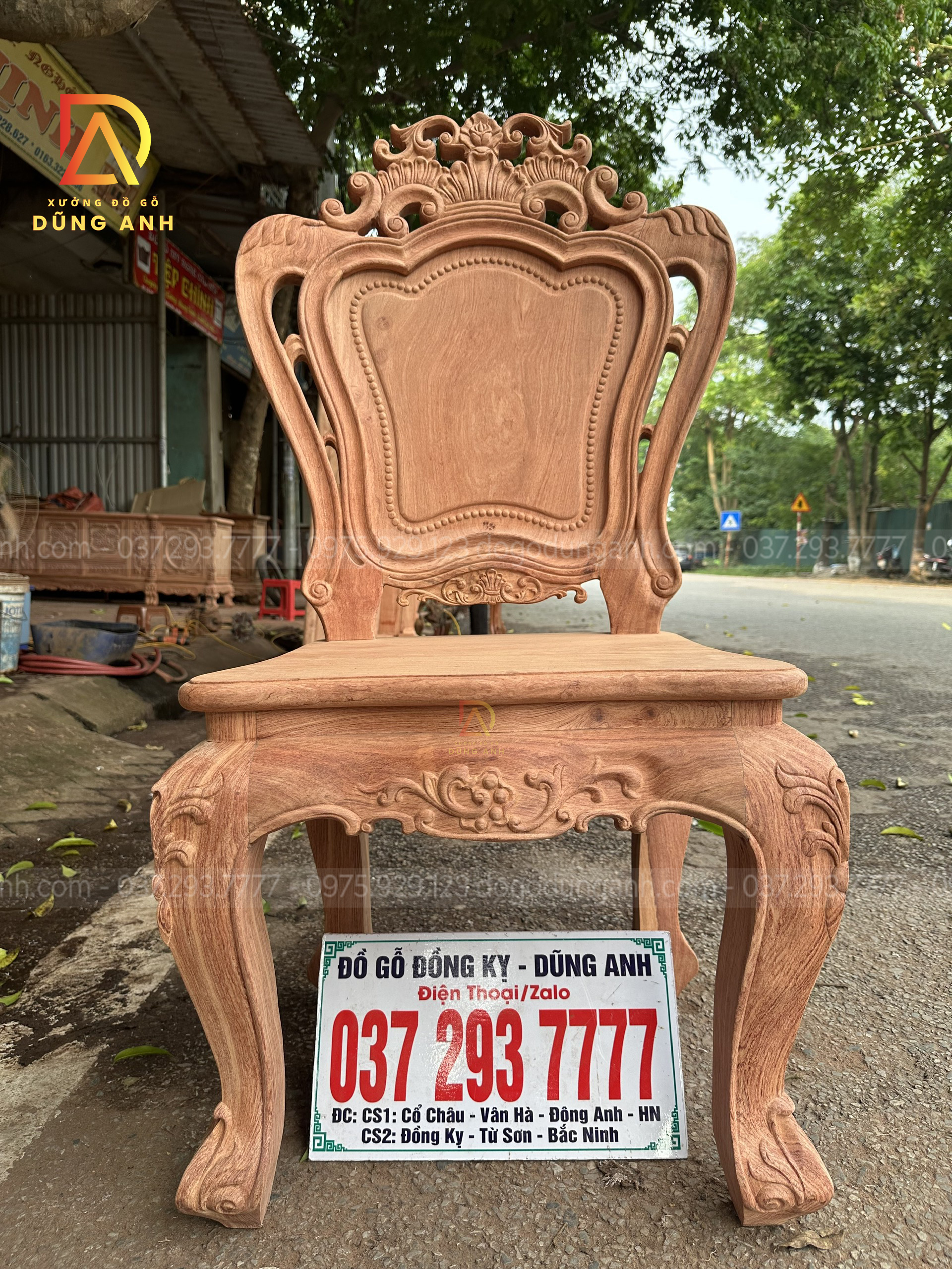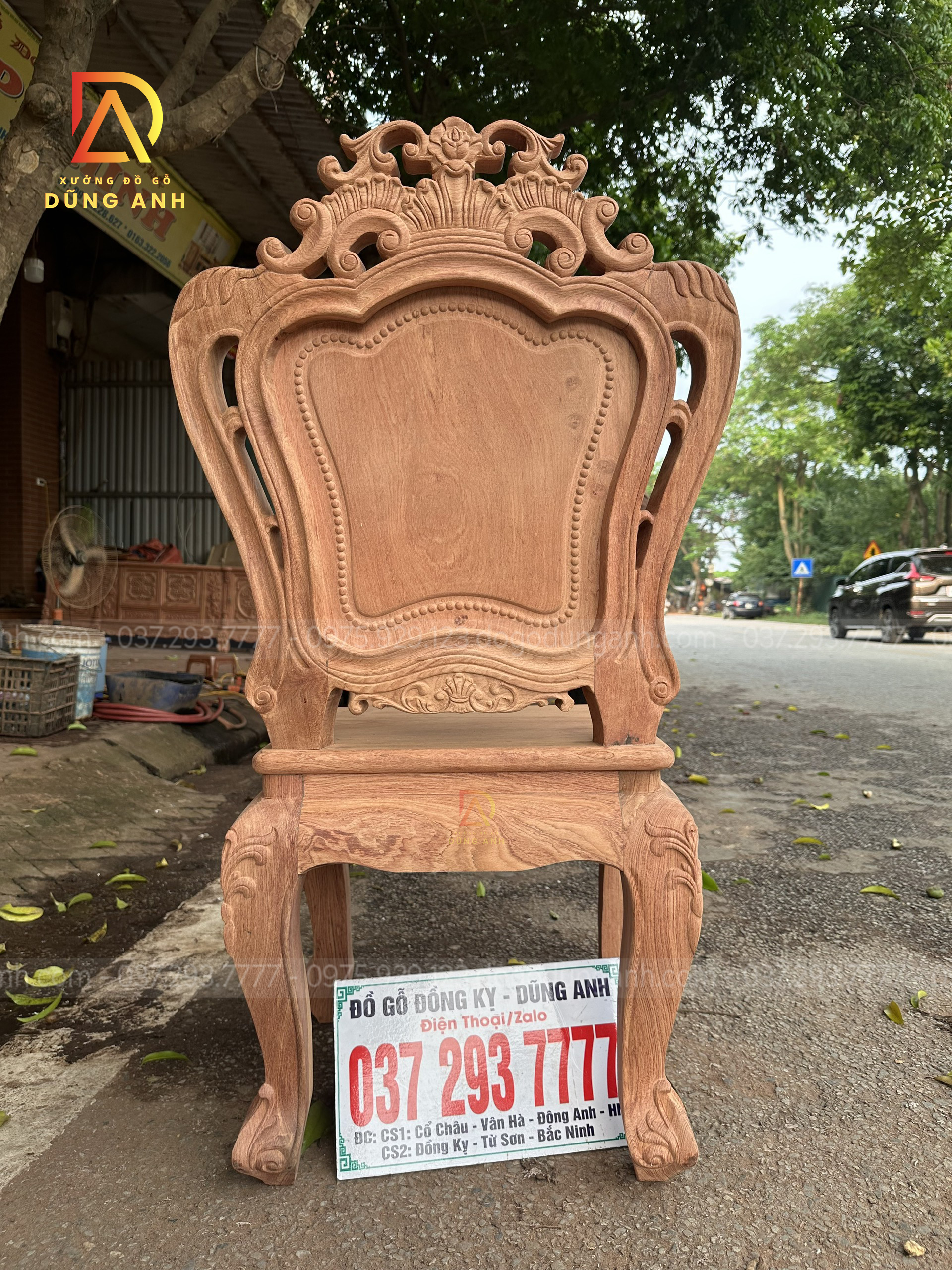 Bộ 6 Ghế Louis Hoàng Gia + Bàn Tròn Yếm Vén – Gỗ Hương Đá