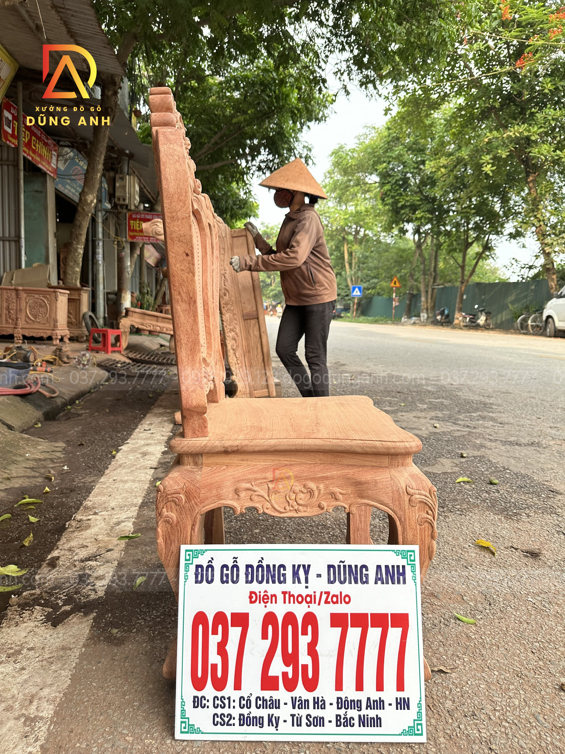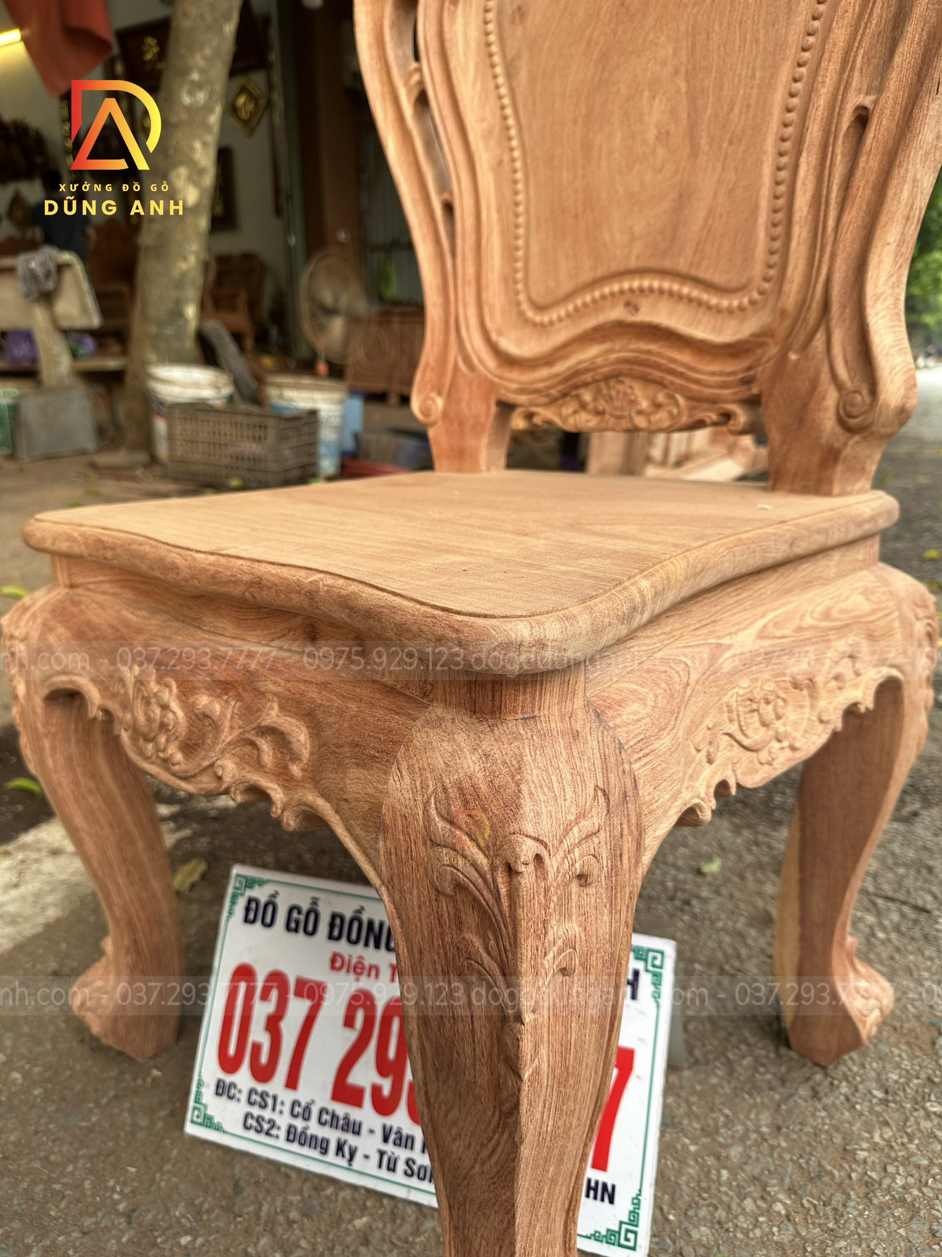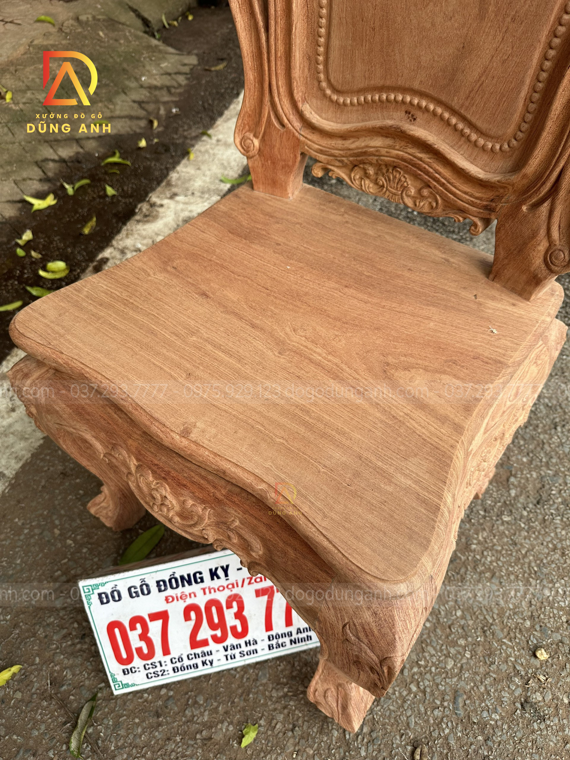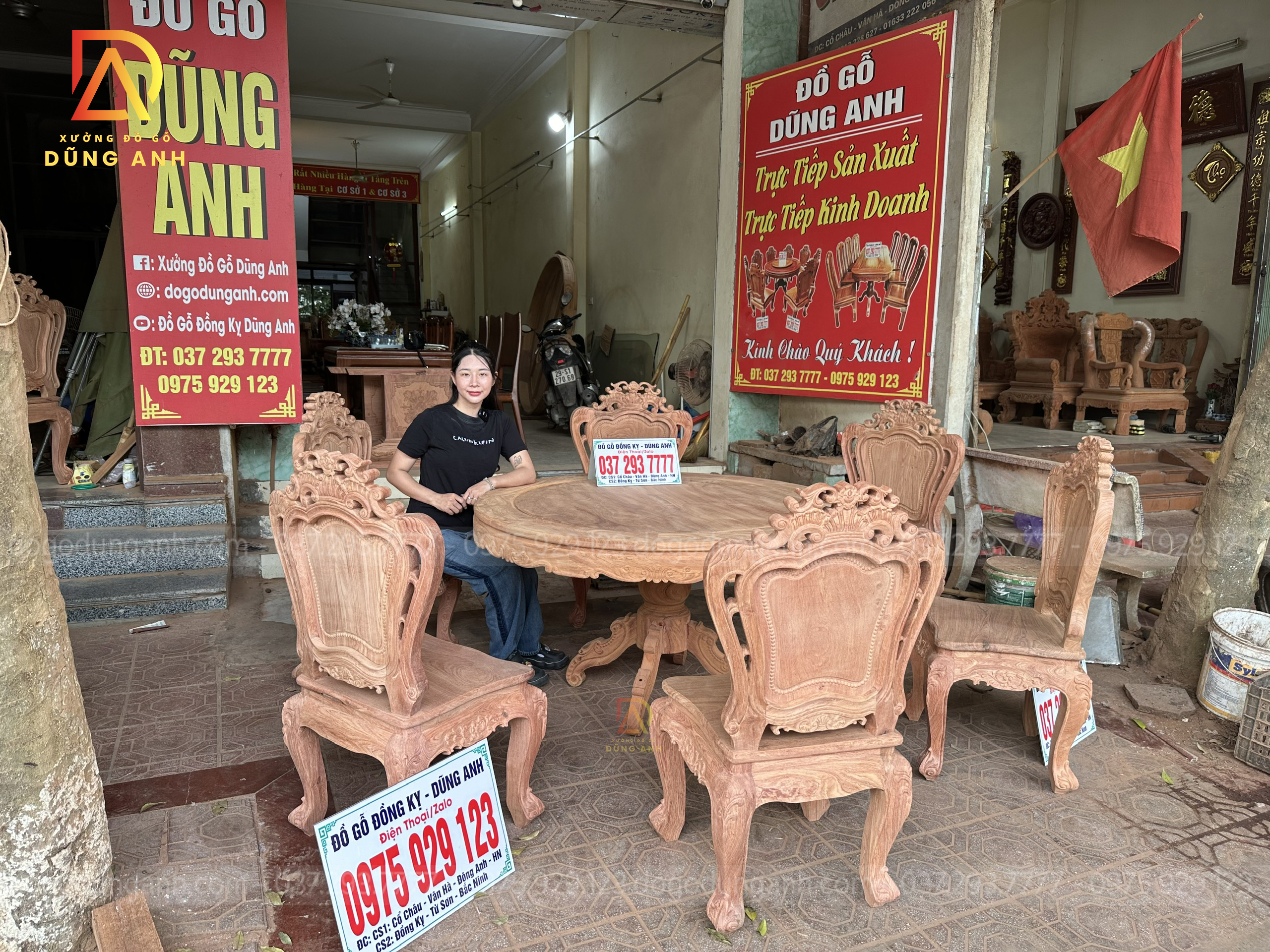 Bộ 6 Ghế Louis Hoàng Gia + Bàn Tròn Yếm Vén – Gỗ Hương Đá