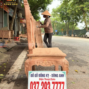 - Trương ghế liền Nguyên Khối ở chính giữa đục chạm bông hoa hồng ý nghĩa mang được sự sang trọng và quý phái cho ra chủ , ghế được đục chạm hai mặt trước sau , mặt trước như thế nào thì mặt sau cũng được đục chạm như vậy