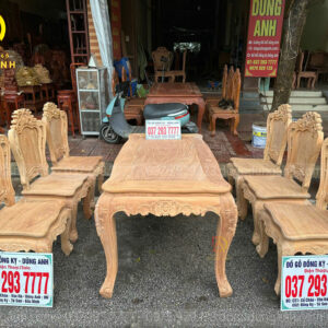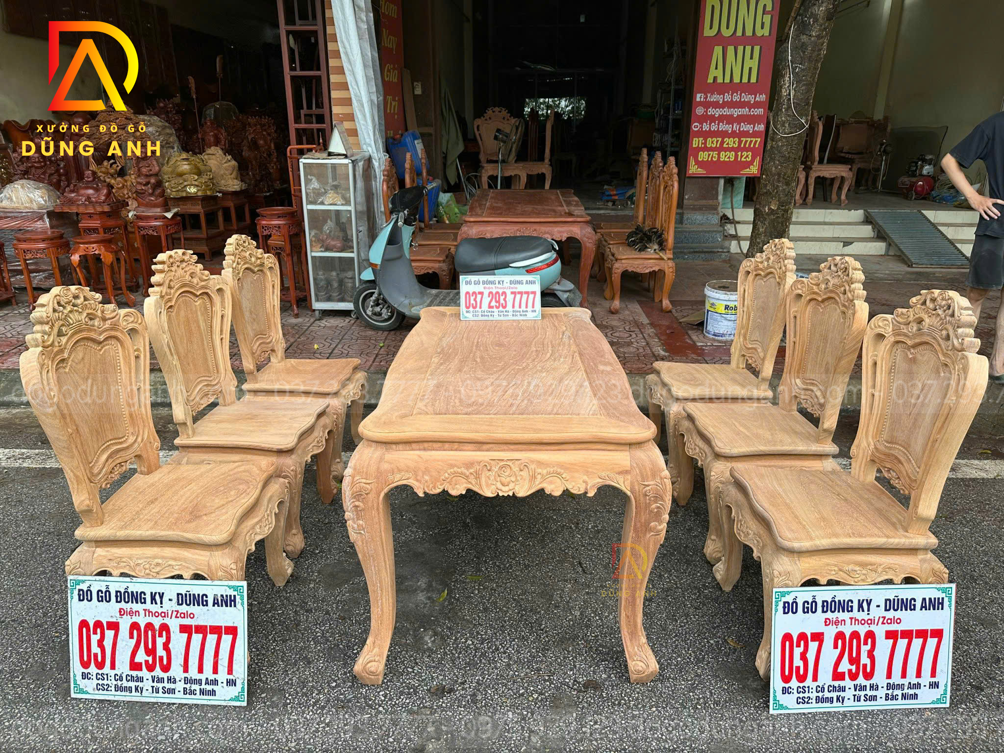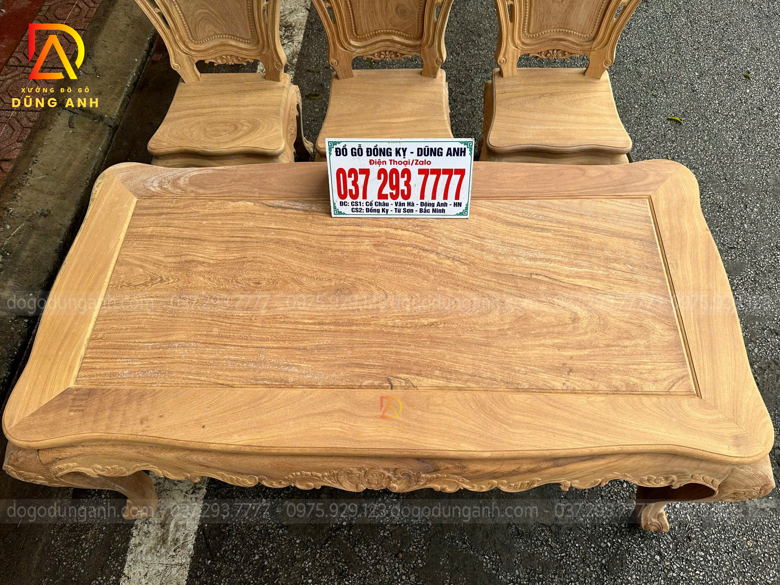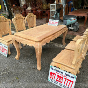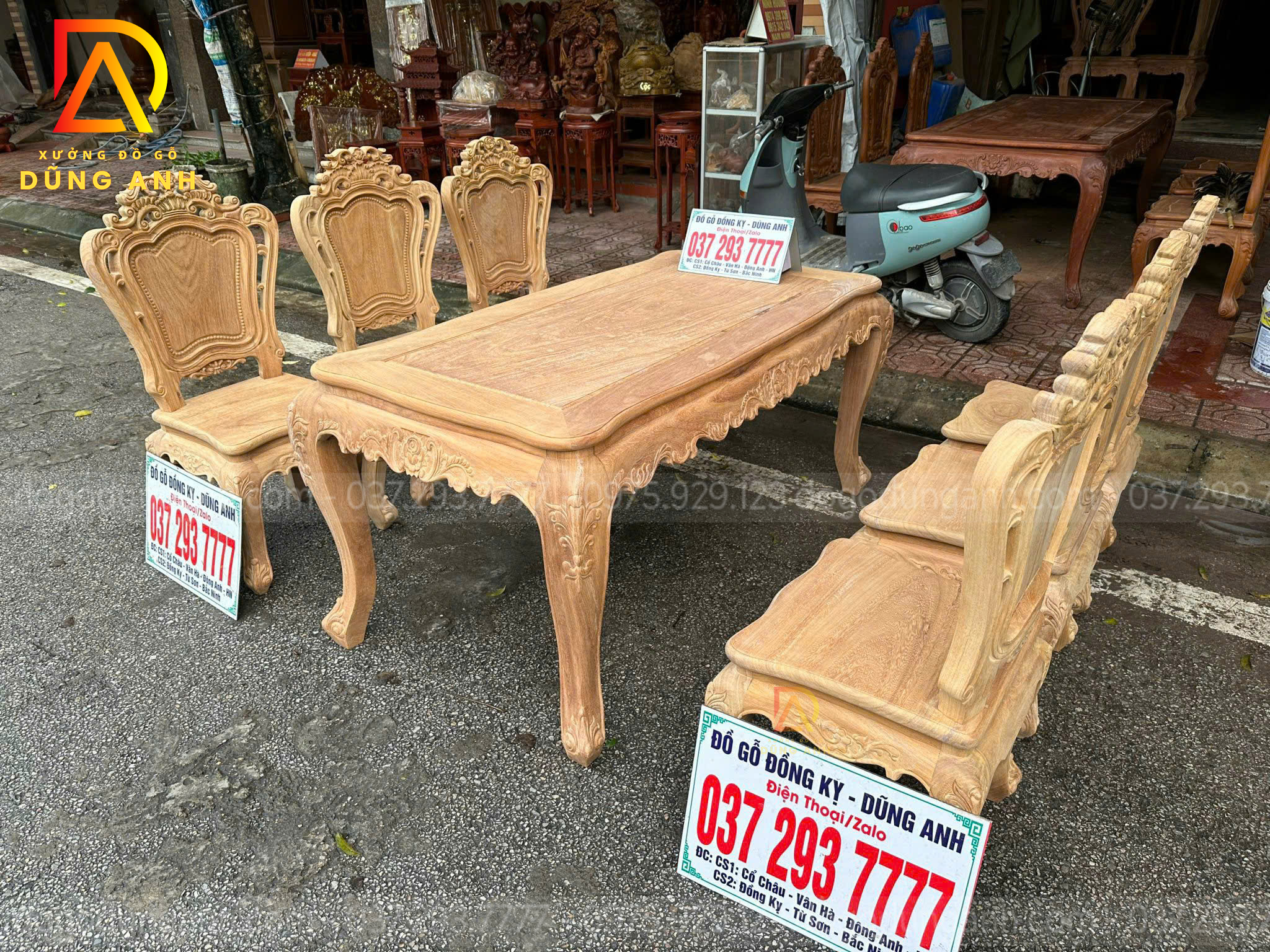 Bộ 6 Ghế Louis Hoàng Gia+Bàn Chữ Nhật Yếm Vén