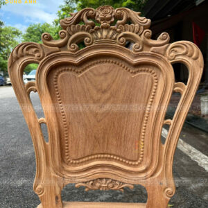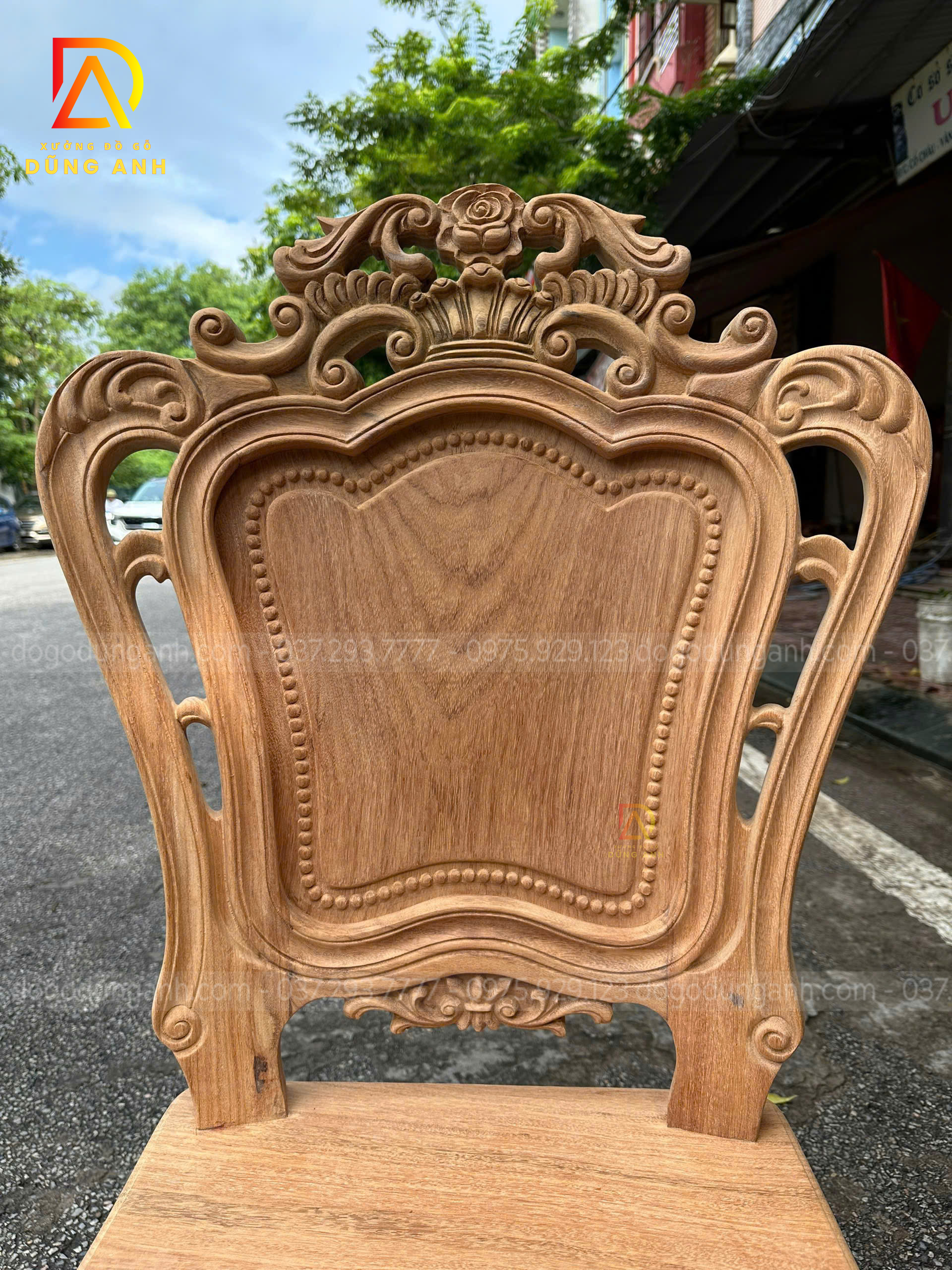 - Chiếc ghế cũng sở hữu thông số đáng kinh ngạc,mặt ghế dày 2,5cm và được hoàn thiện tràn liền nguyên khối tựa ghế được đục trạm hai mặt vô cùng tinh sảo