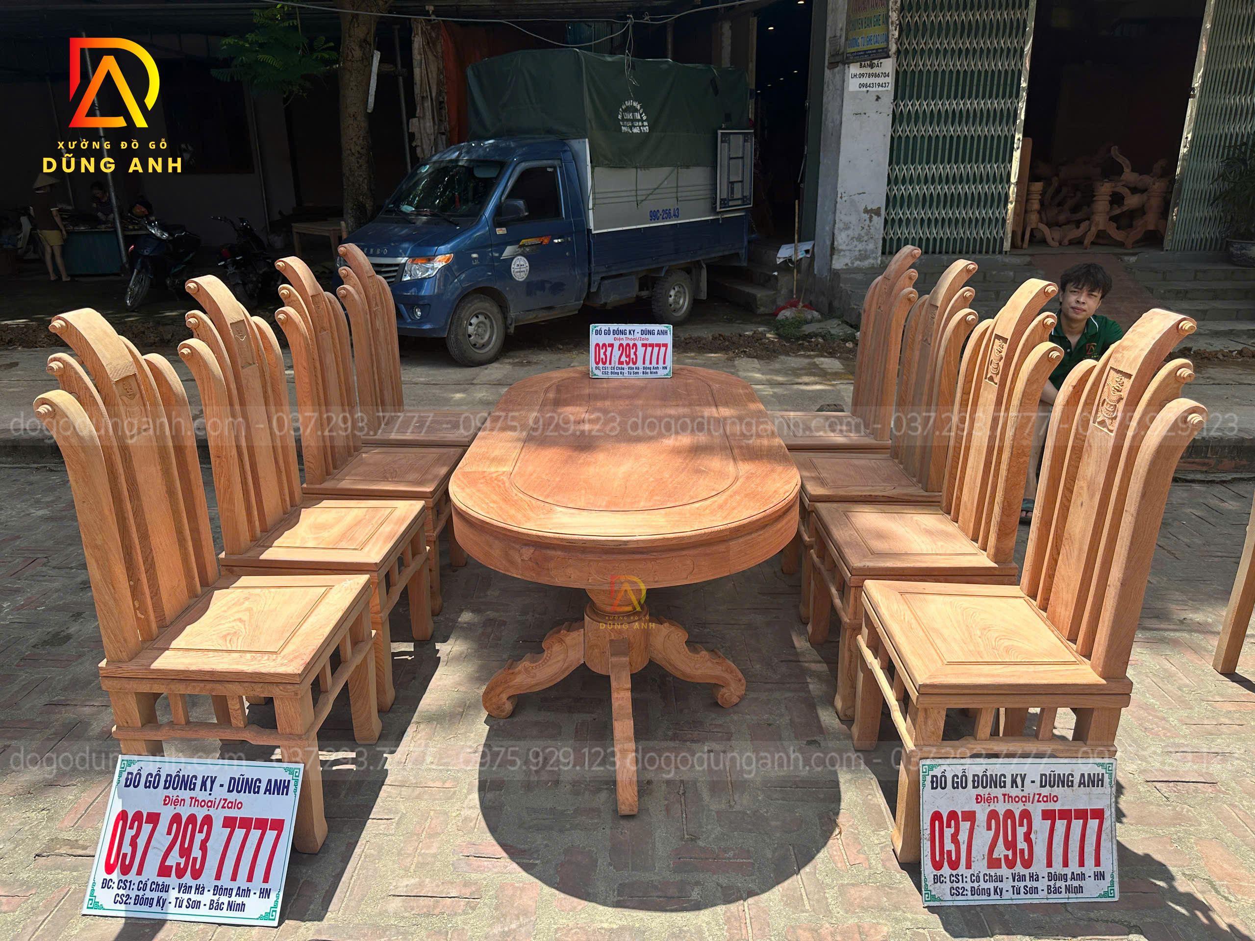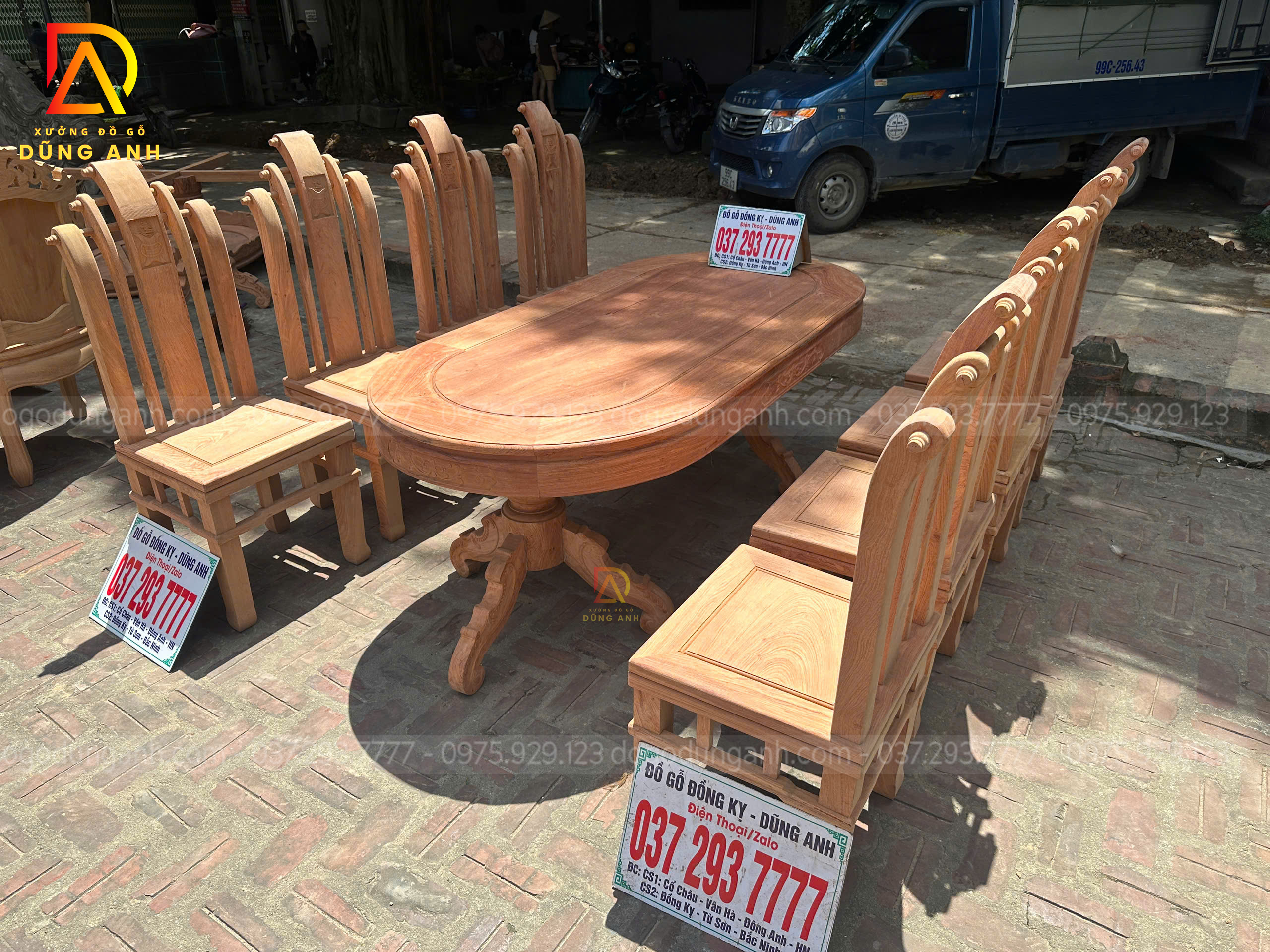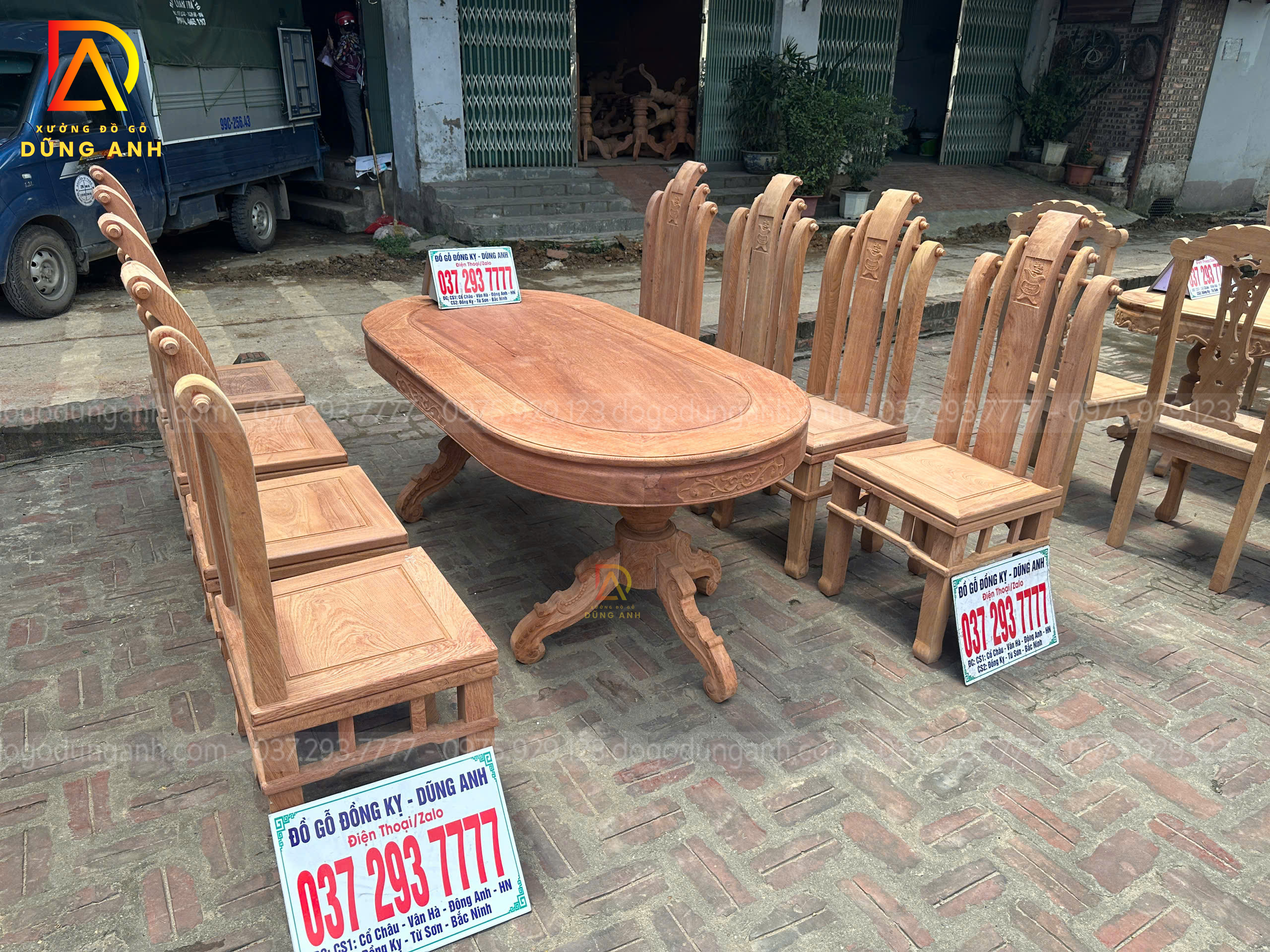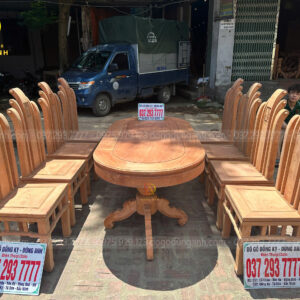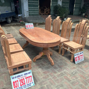 Bộ 8 Ghế Tần Thủy Hoàng + Bàn Bầu Dục (Gỗ Hương Đá)