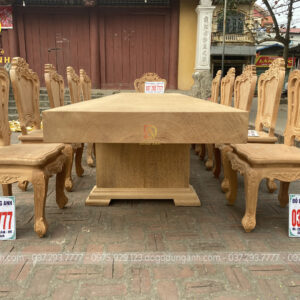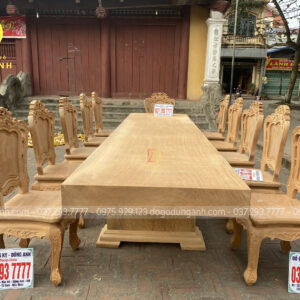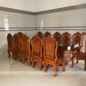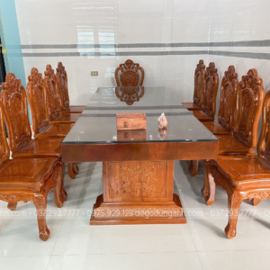 Đồ Gỗ Dũng Anh | Bộ 12 Ghế Nữ Hoàng Bọc Da kết hợp Bàn Chữ Nhật Chân Trụ U Nguyên Khối Gõ Đỏ Nam Phi