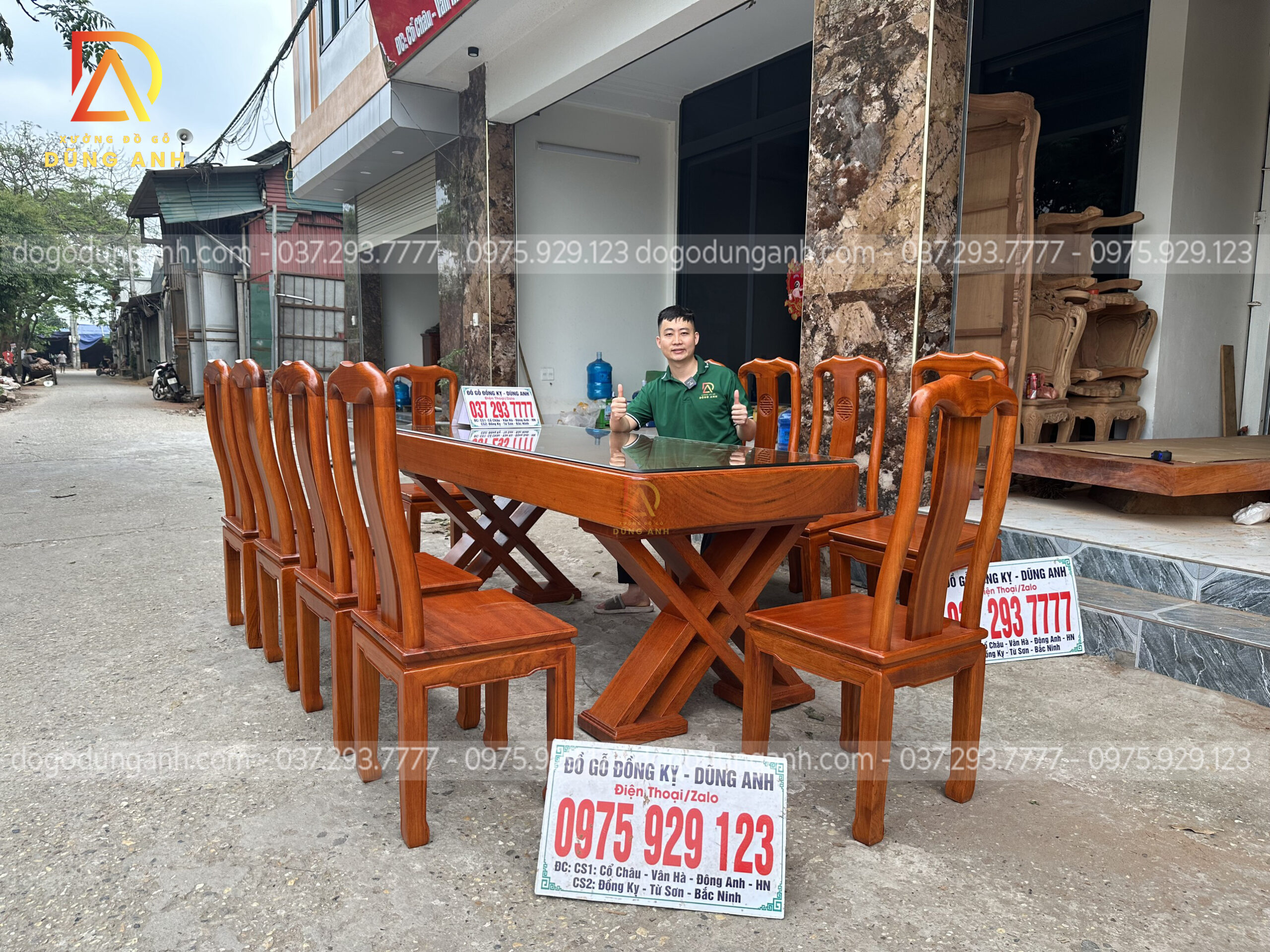 Khi đặt trong không gian bếp hoặc phòng ăn, bộ bàn ghế sẽ thu hút mọi ánh nhìn, tạo cảm giác ấm cúng mà vẫn đầy quyền lực.