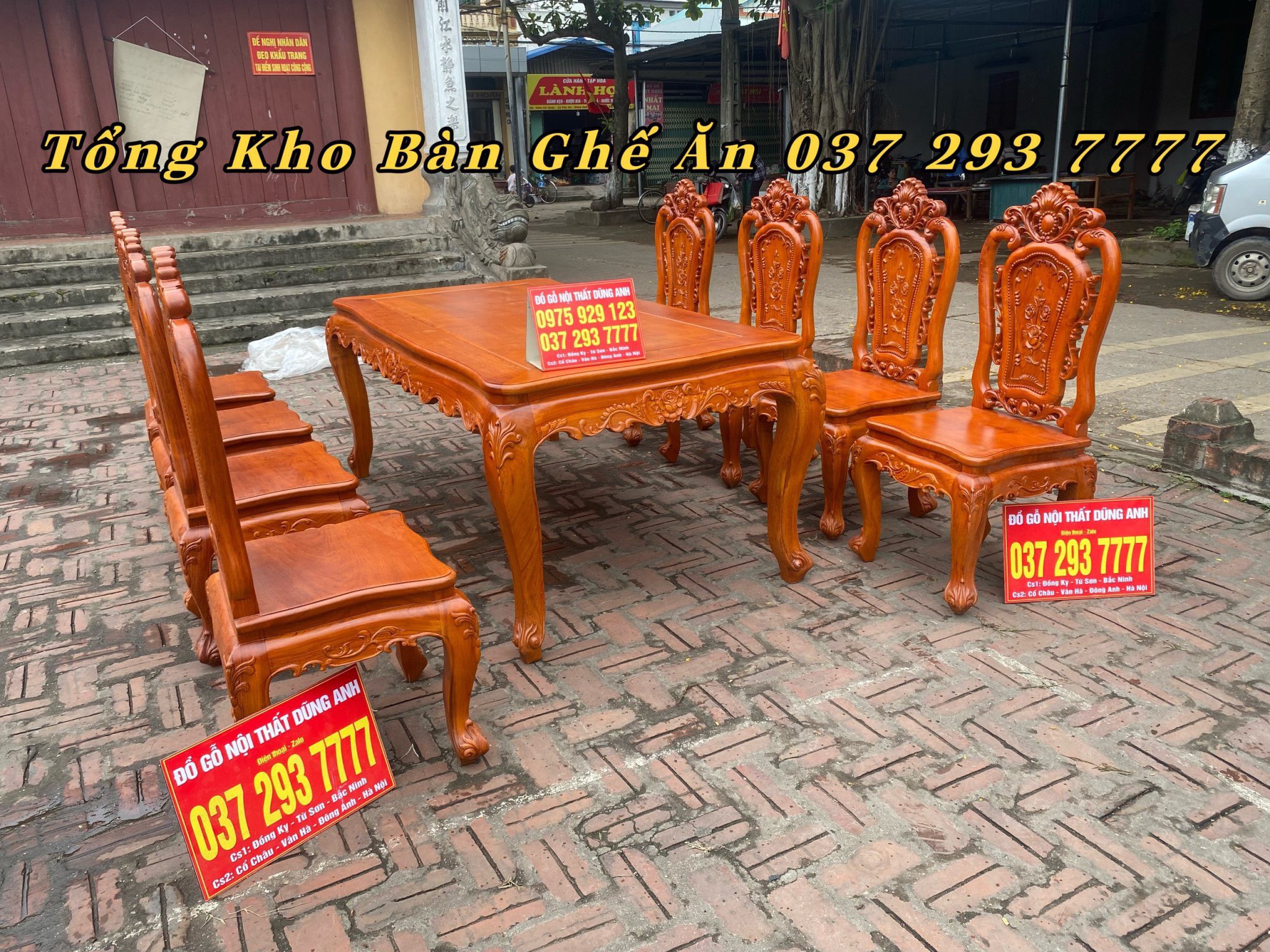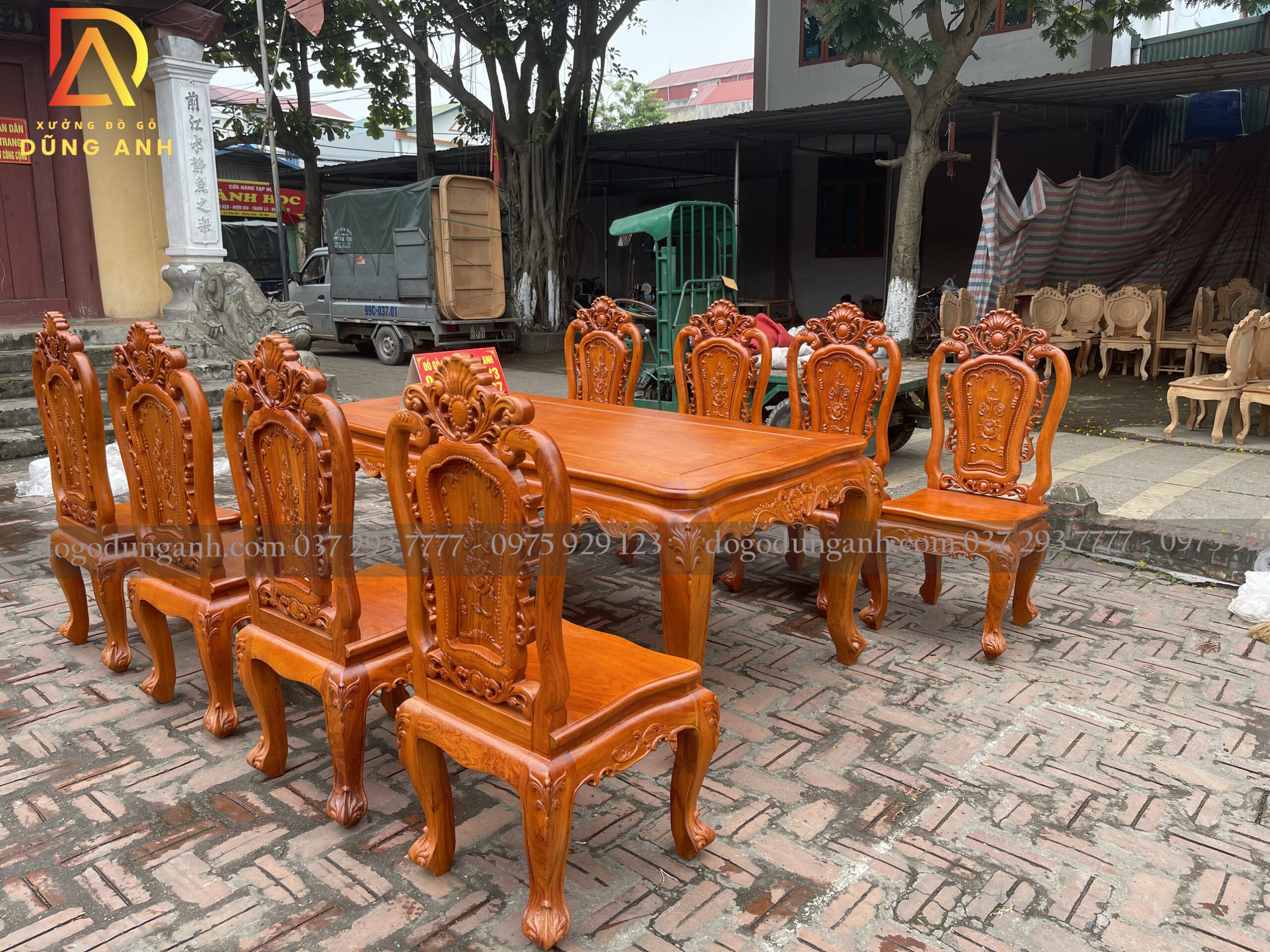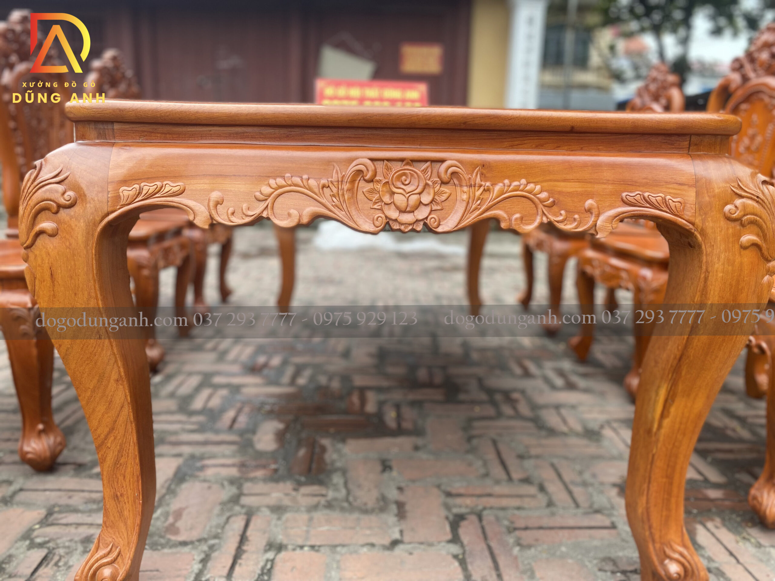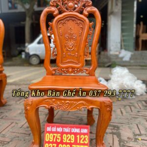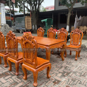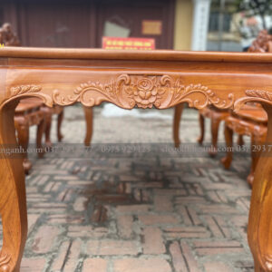 Bộ bàn ăn Louis Hoa Hồng chất liệu gỗ Hương Đá bàn củ lạc + 8 ghế