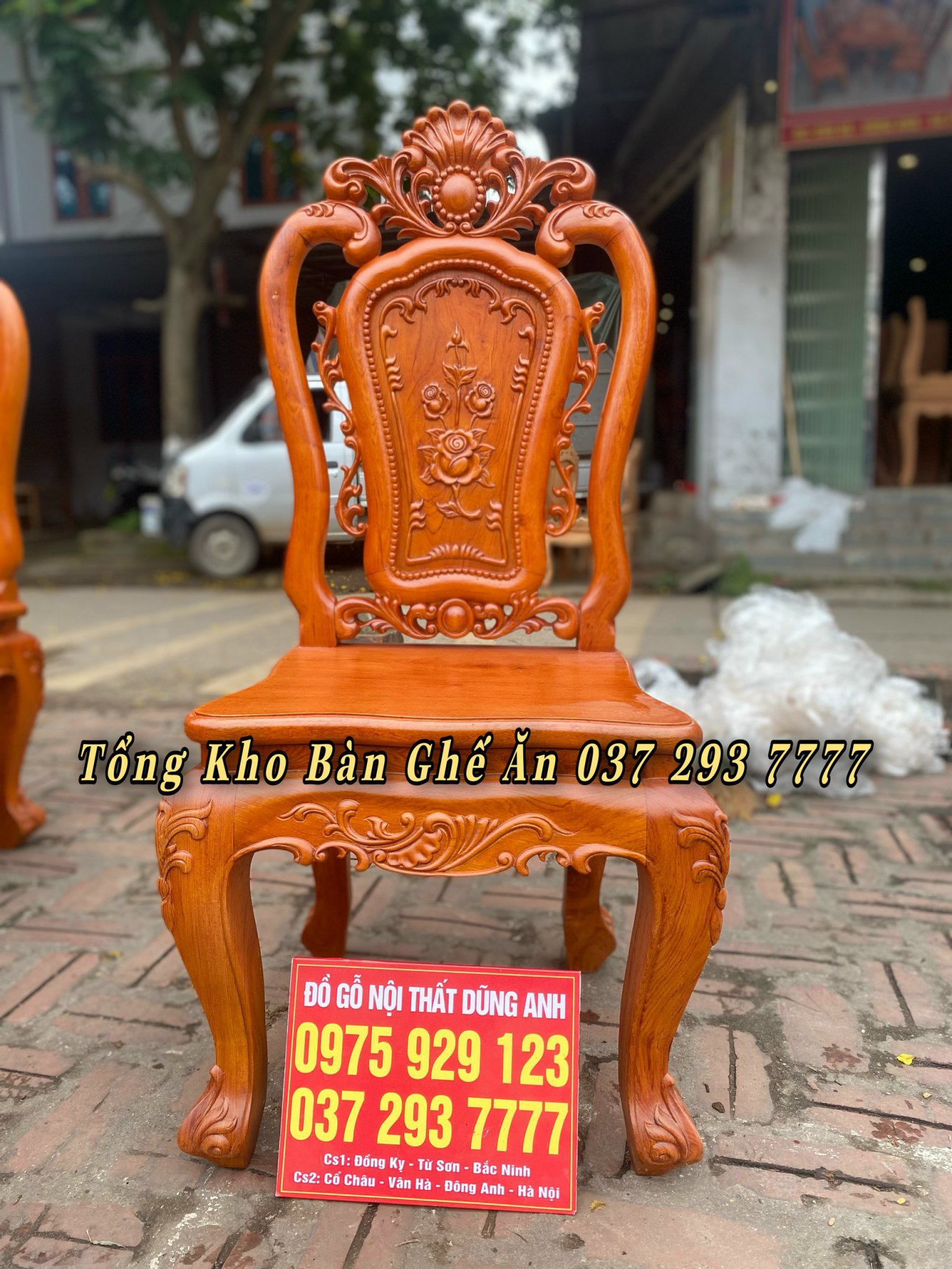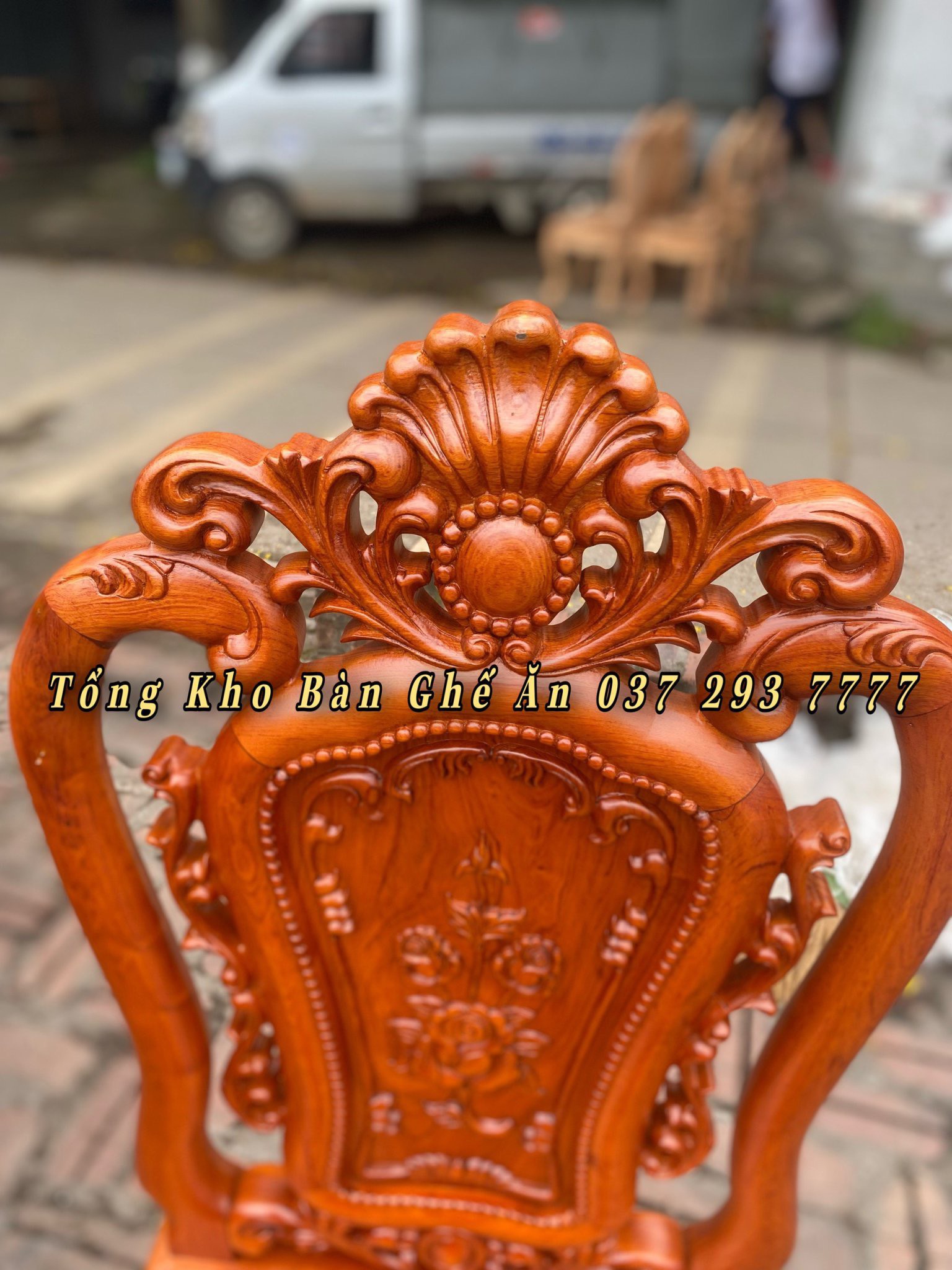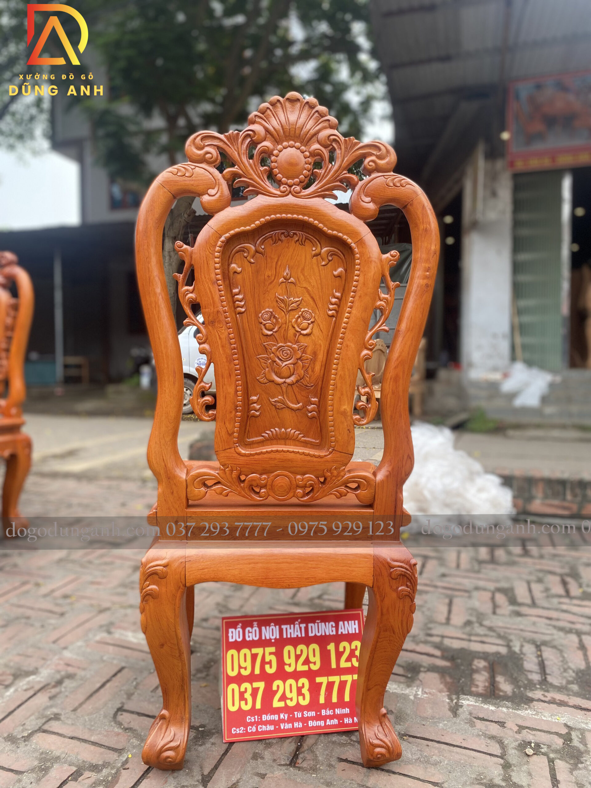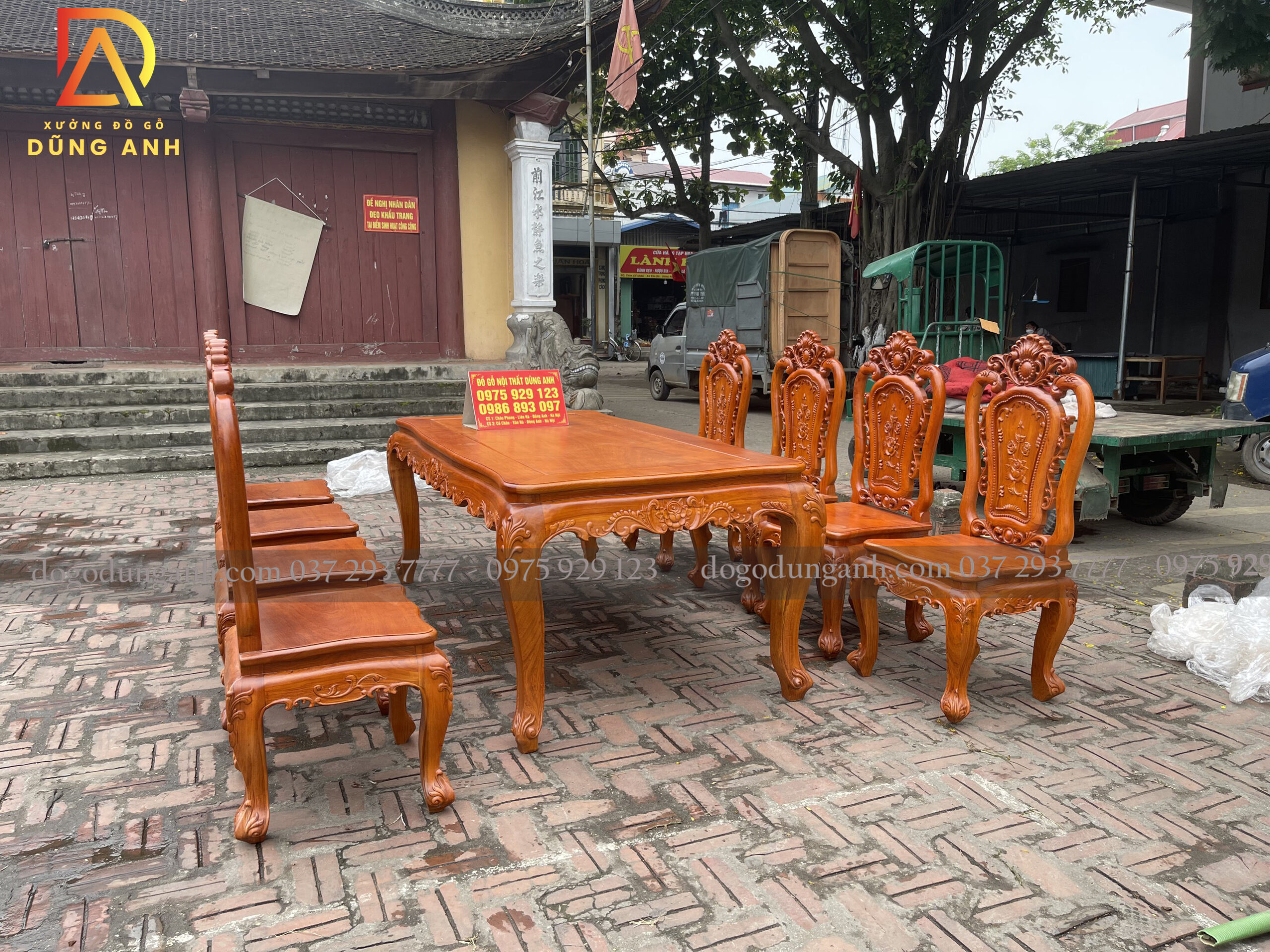 Bộ bàn ăn Louis Hoa Hồng chất liệu gỗ Hương Đá bàn củ lạc + 8 ghế