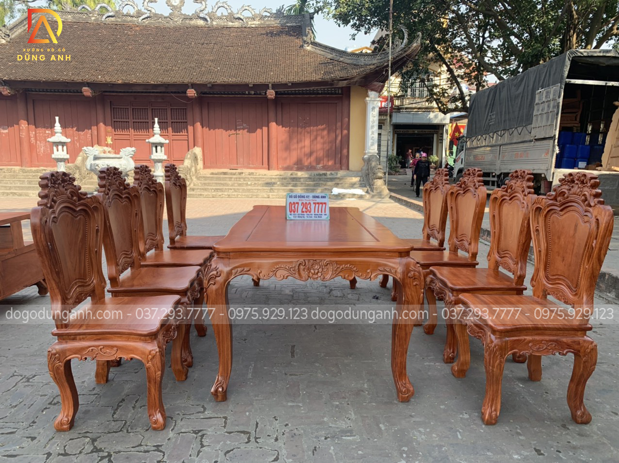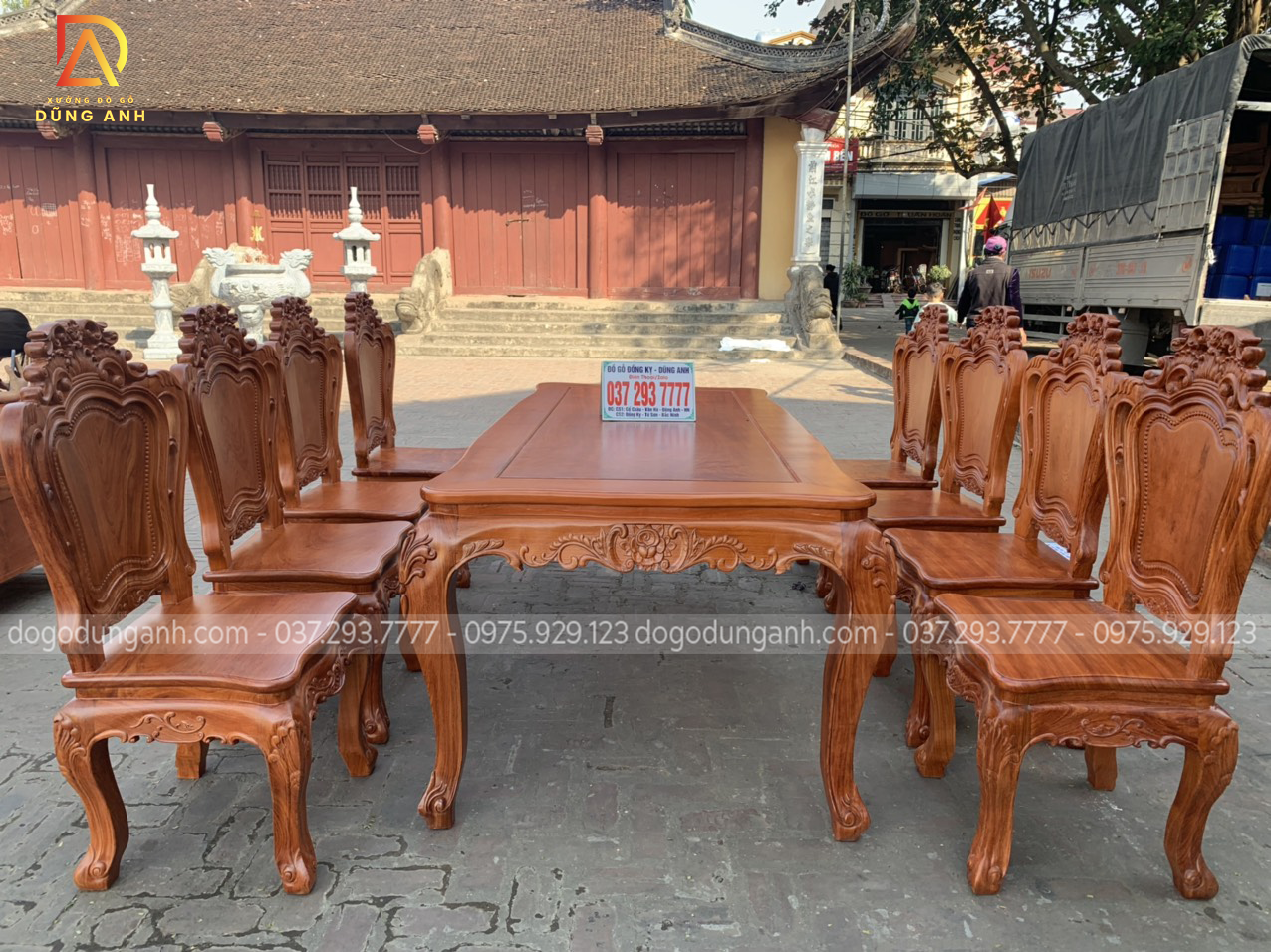 Bộ bàn ăn louis hoàng gia 8 ghế kết hợp với bàn củ lạc siêu đỉnh của anh Linh.