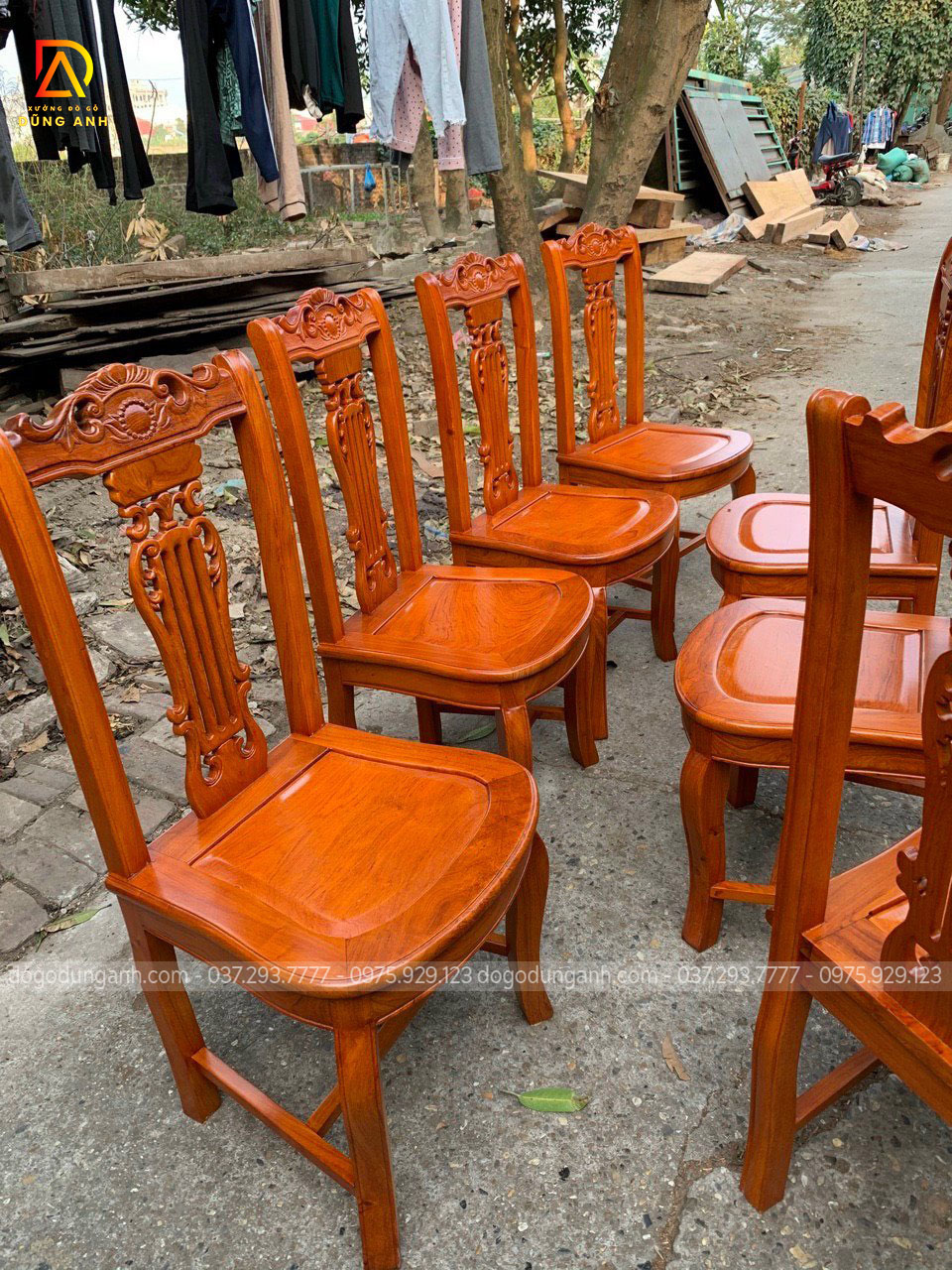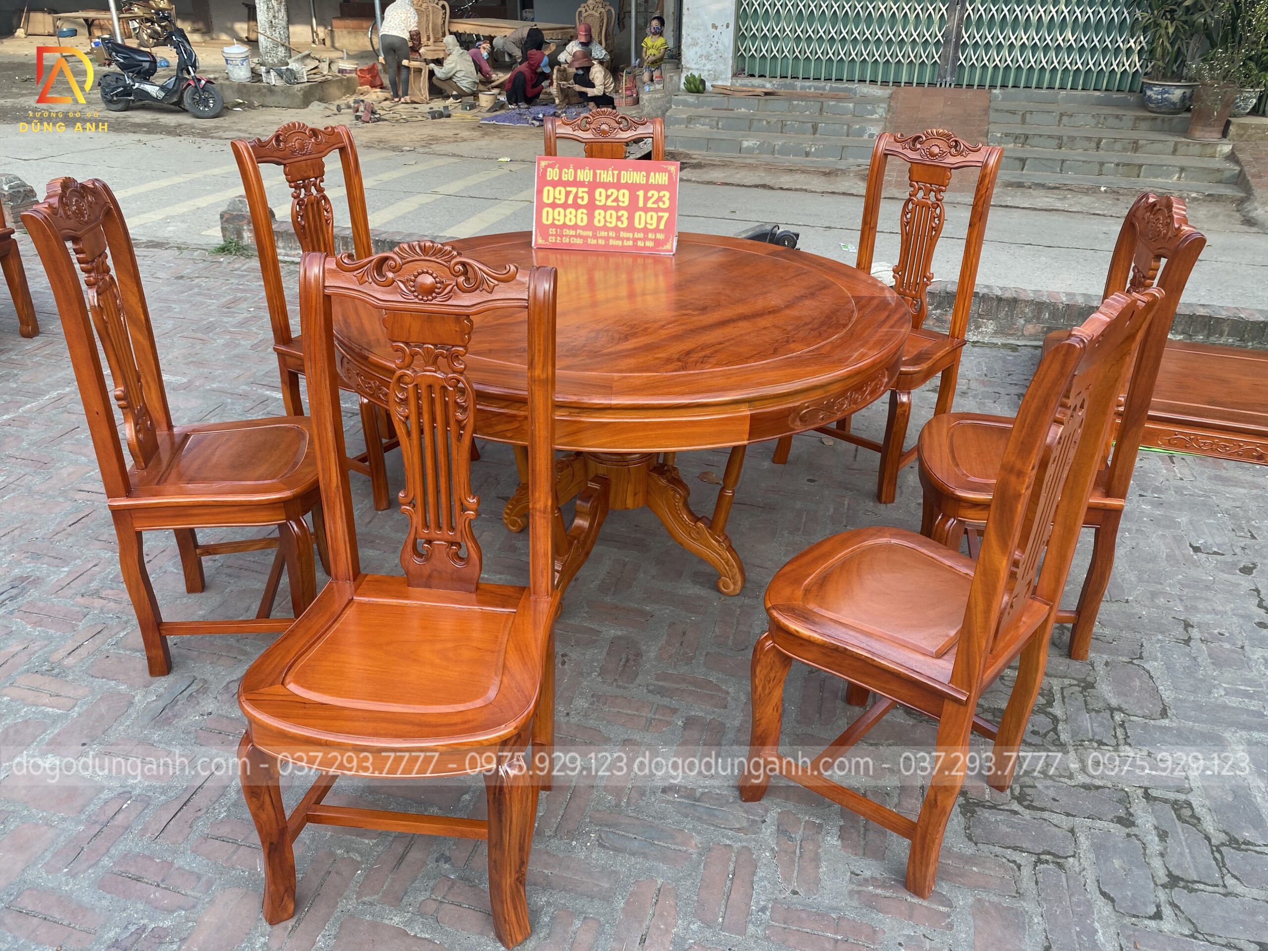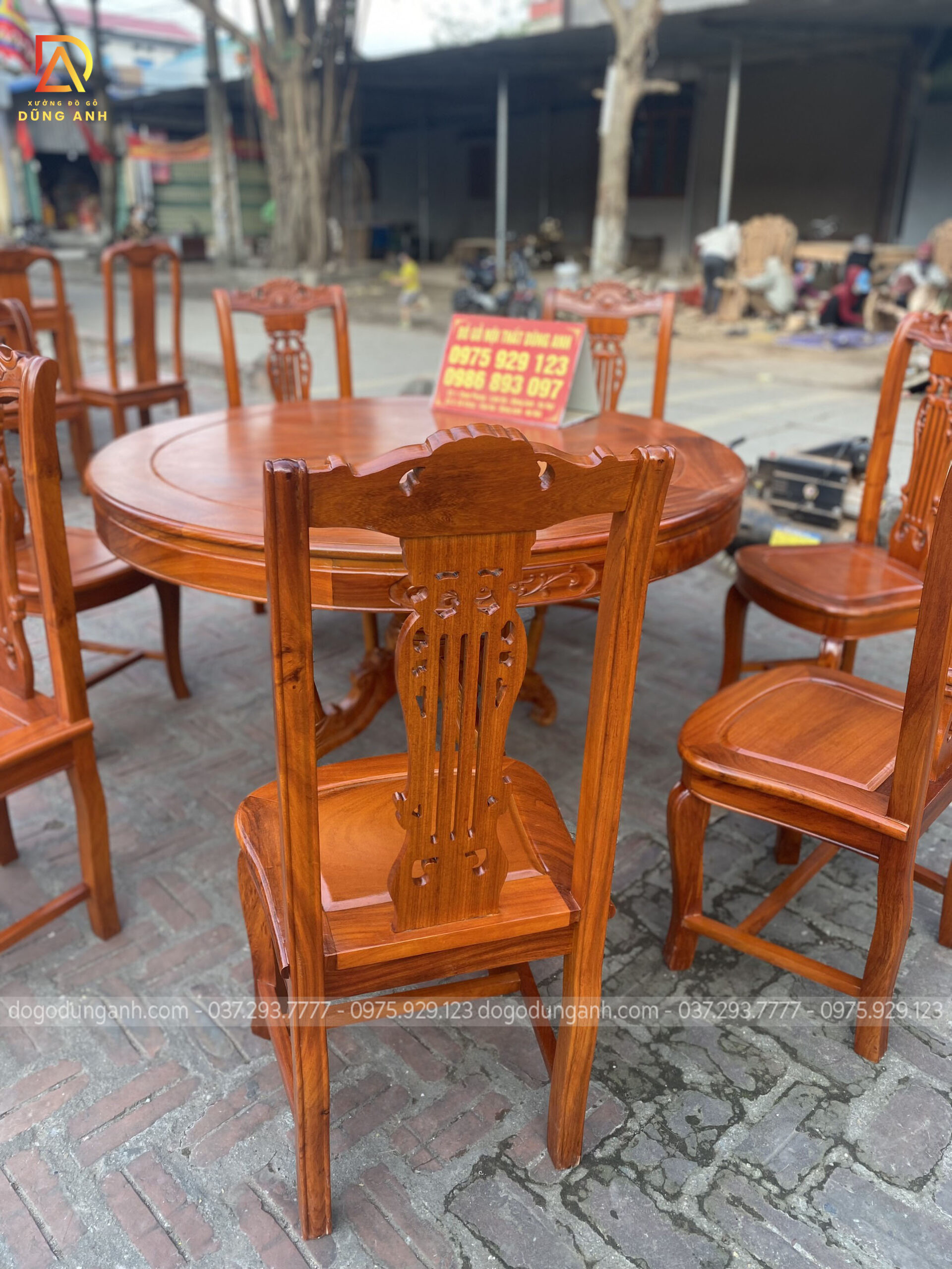 Bộ bàn ăn mẫu Cây Đàn chất liệu gỗ Gõ Đỏ + 7 ghế