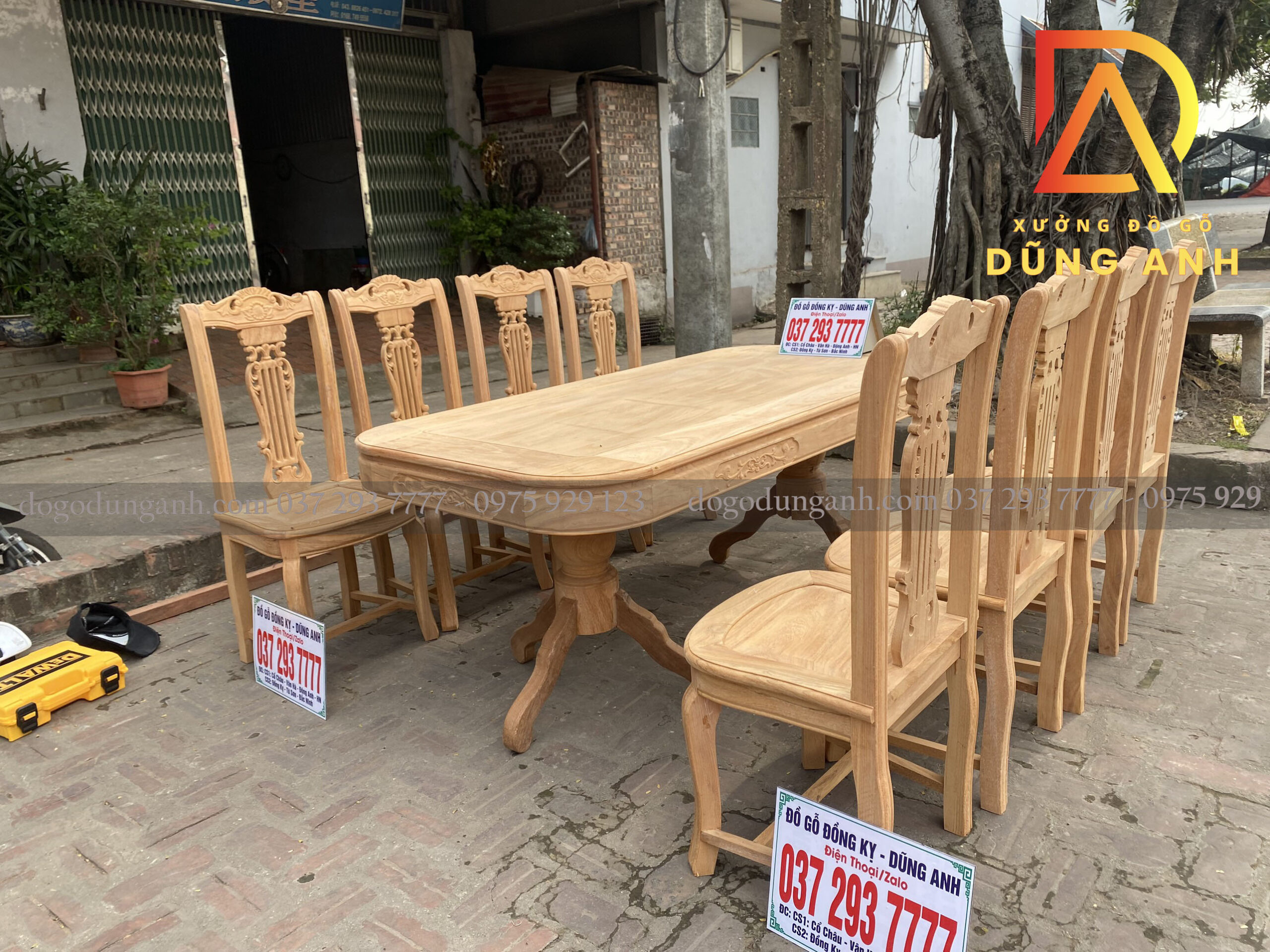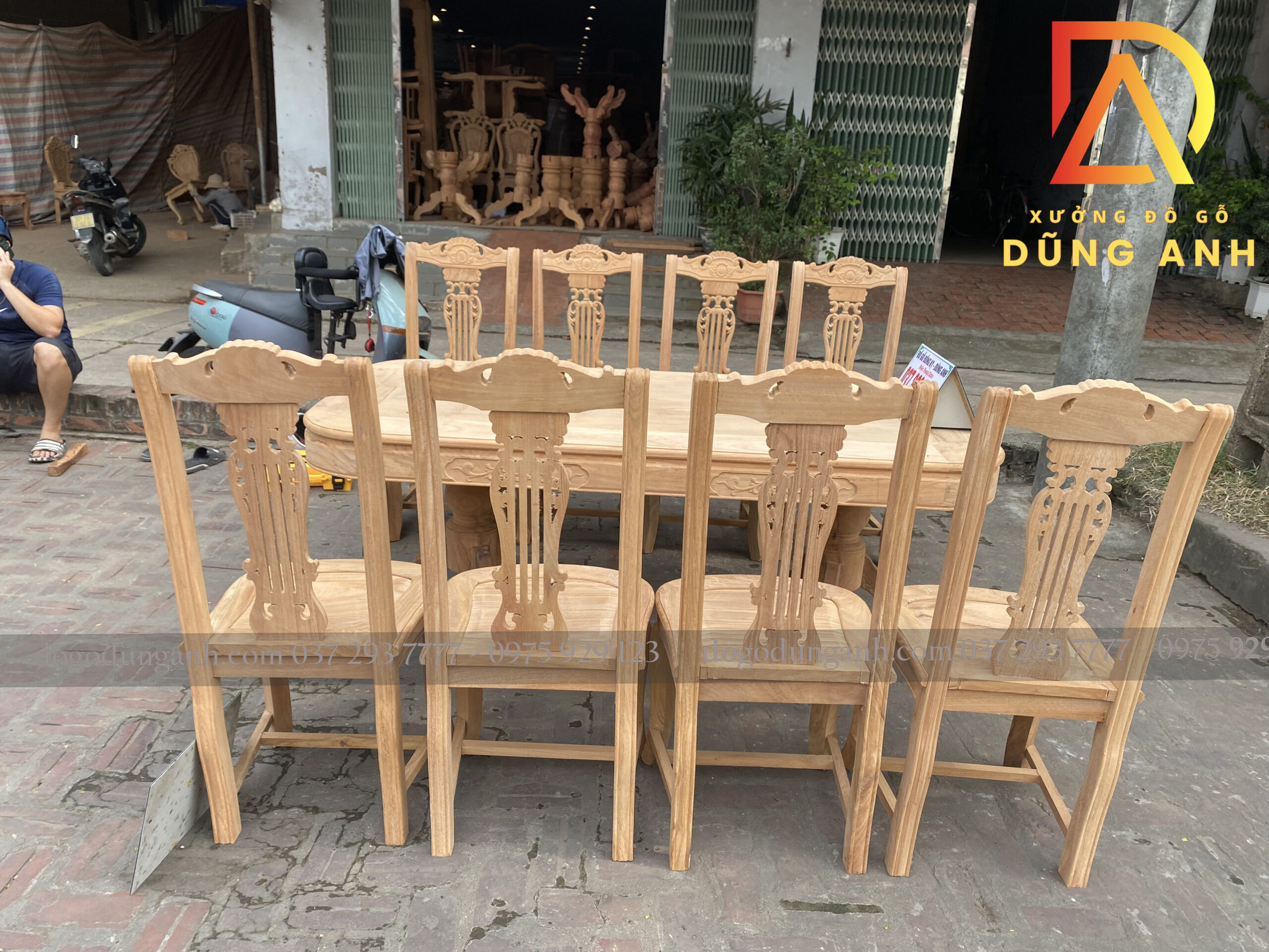 Bộ bàn ăn mẫu Cây Đàn chất liệu gỗ Gõ Đỏ bàn bầu dục + 8 ghế