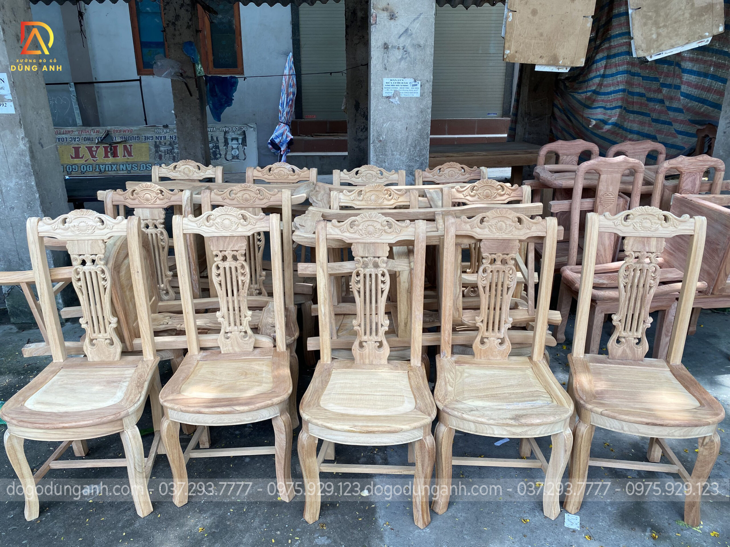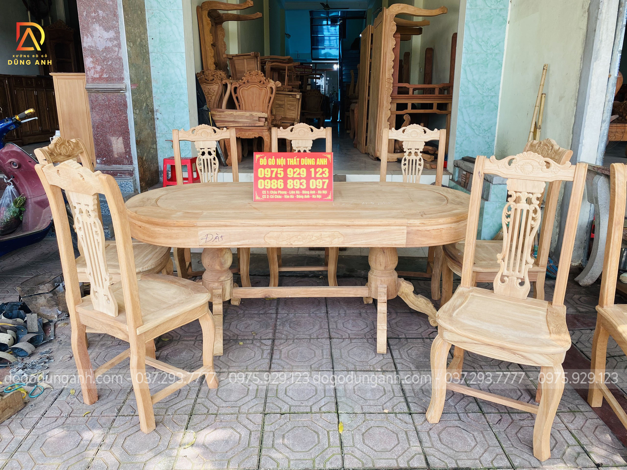 Bộ bàn ăn mẫu Cây Đàn chất liệu gỗ Gõ Đỏ + bàn bầu dục