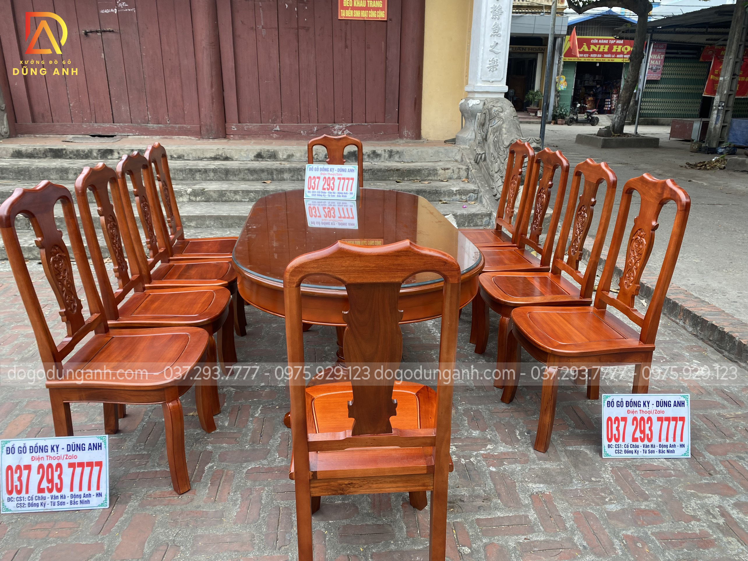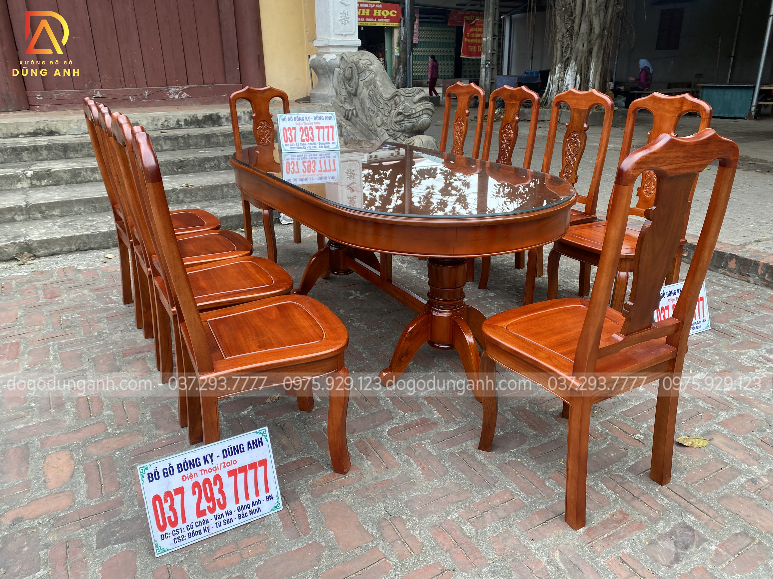 Bộ bàn ăn mẫu Hoa Dây cao cấp bàn bầu dục + 10 ghế siêu đẹp