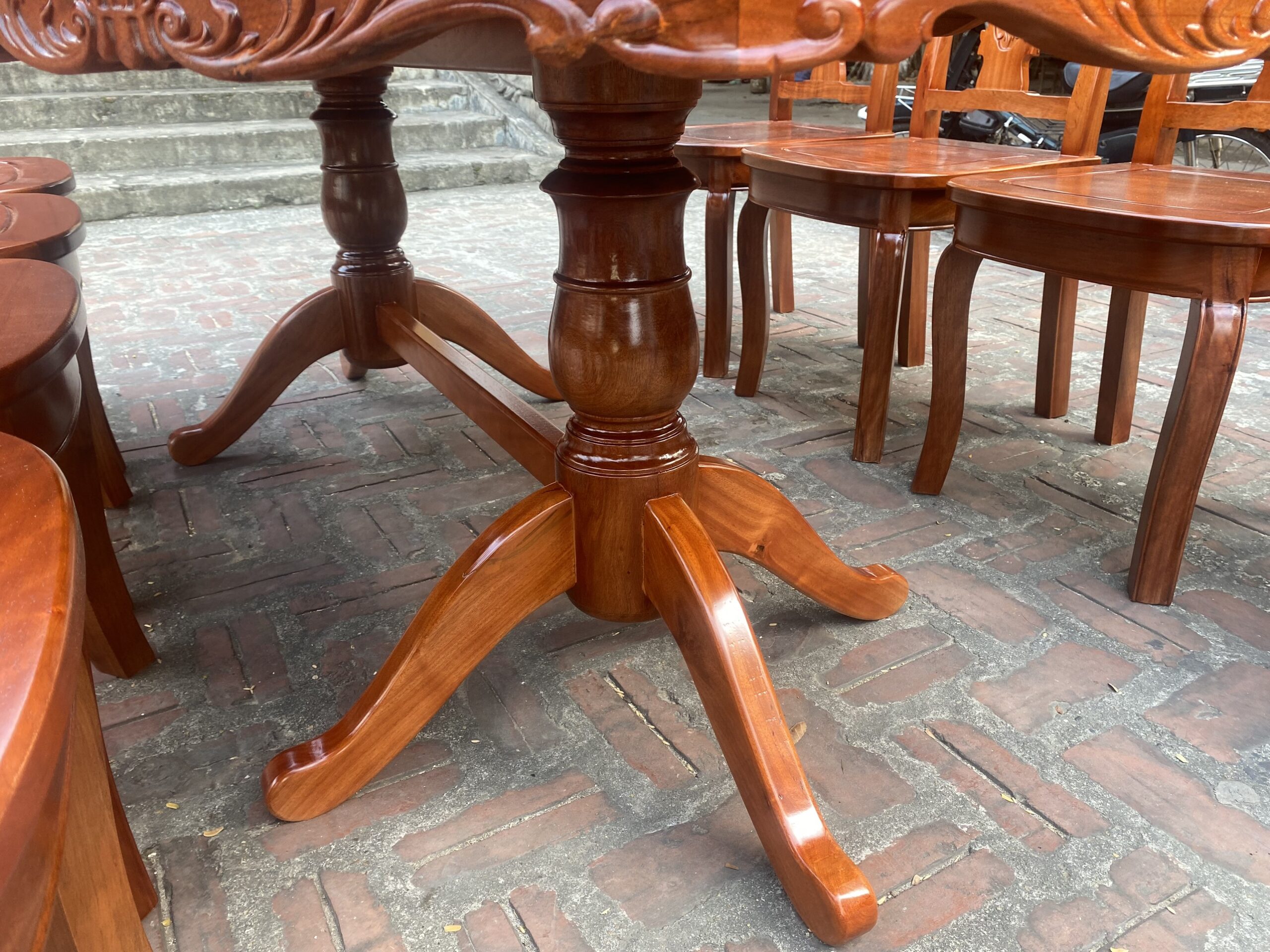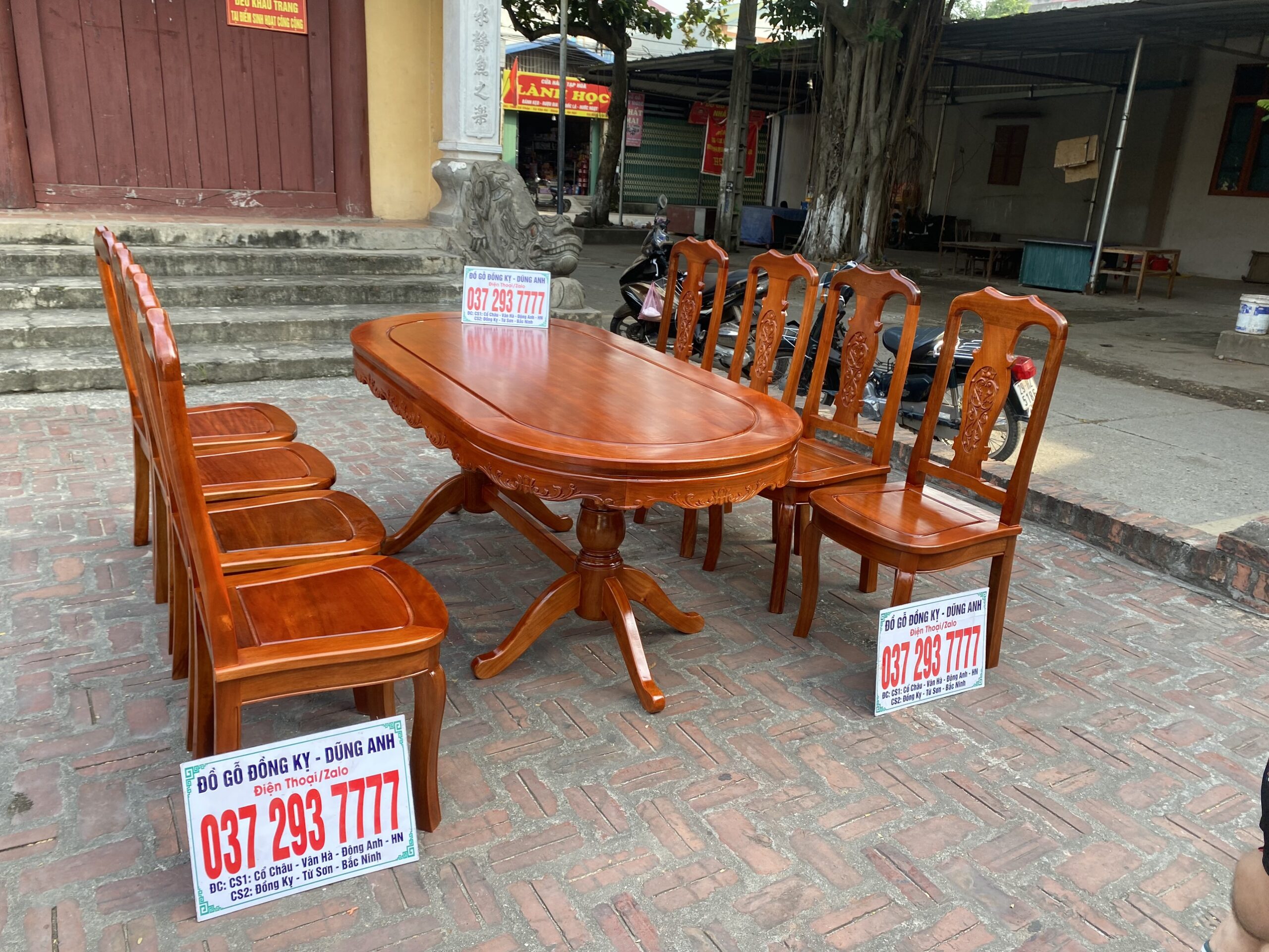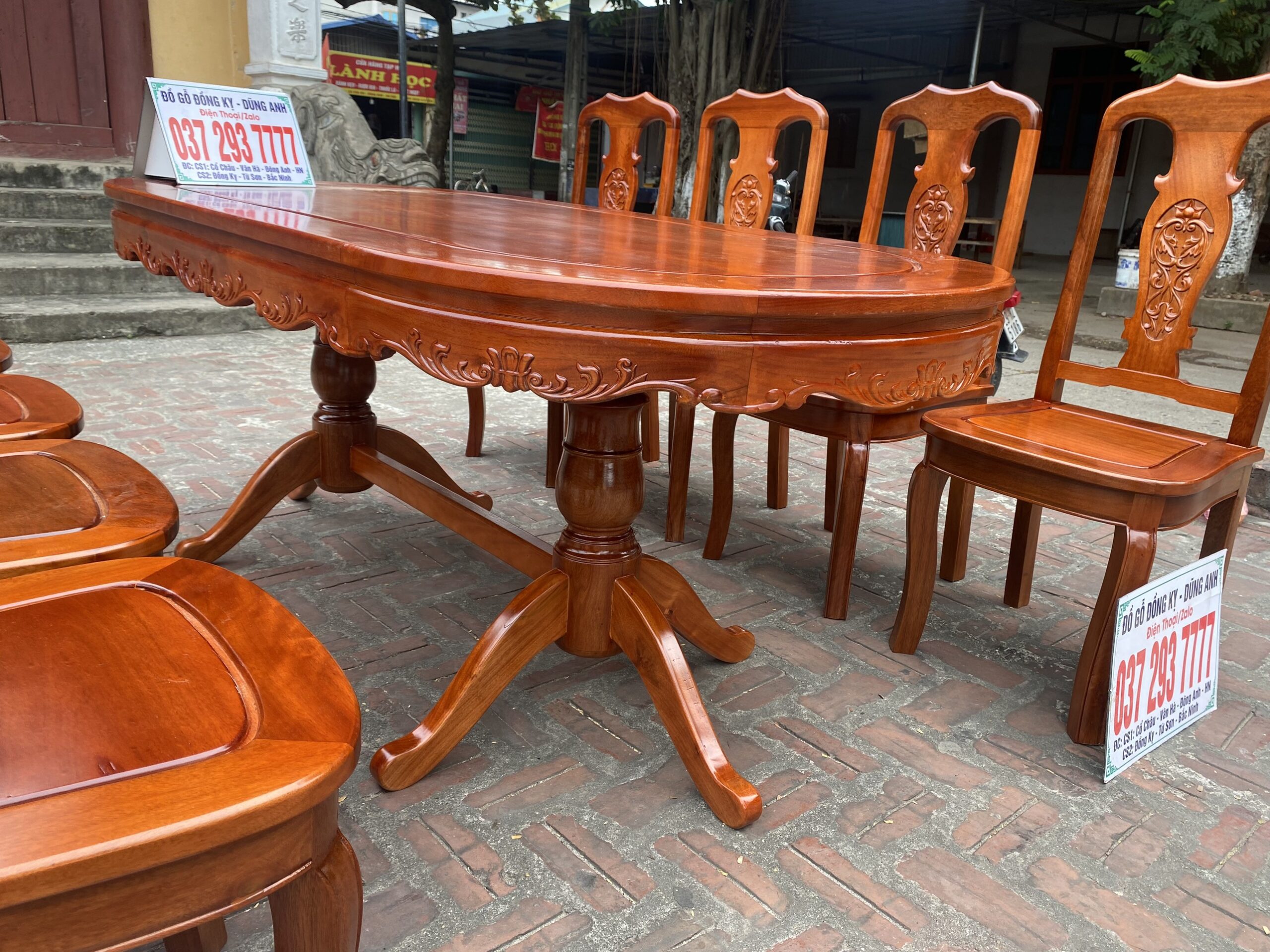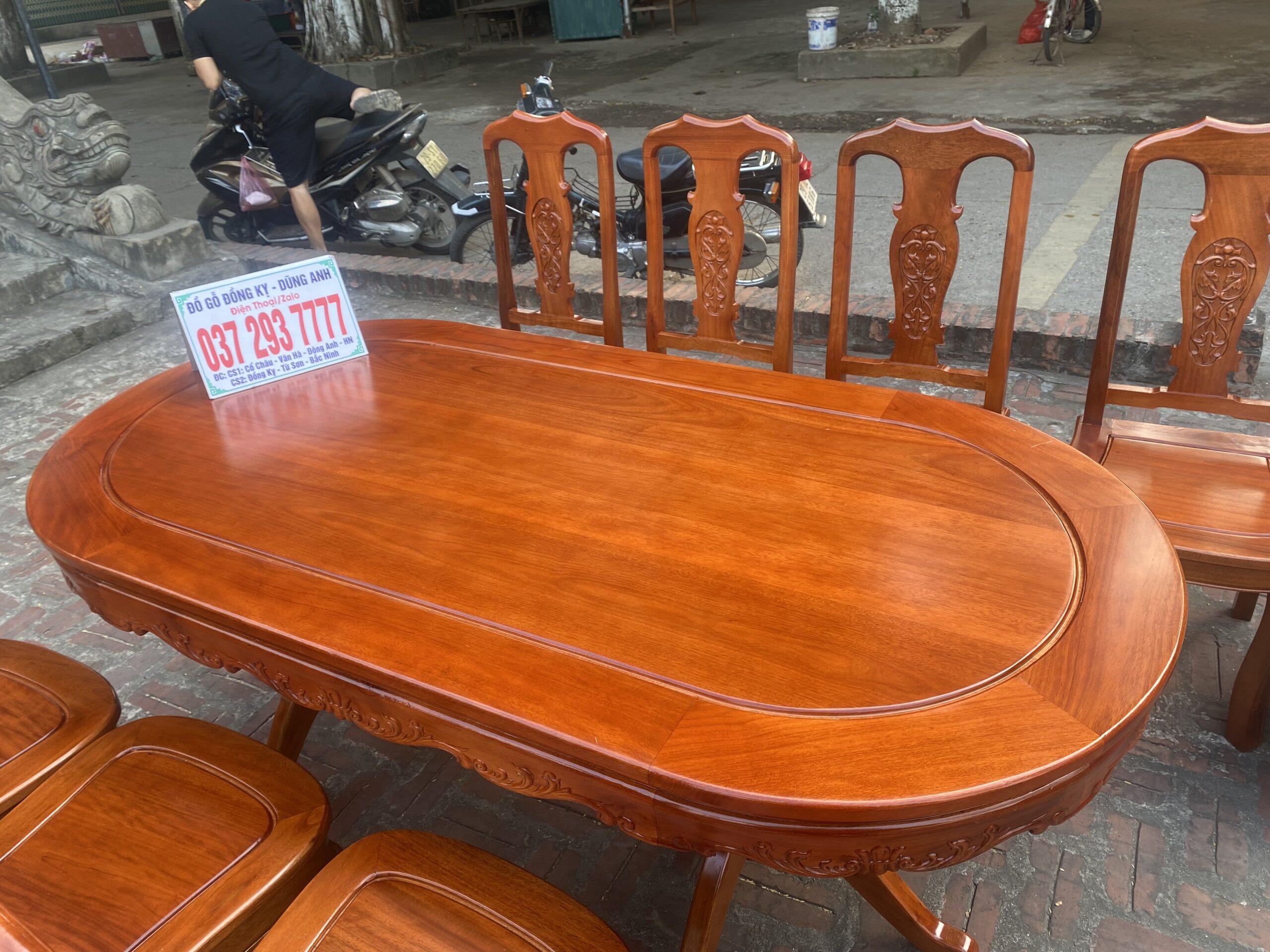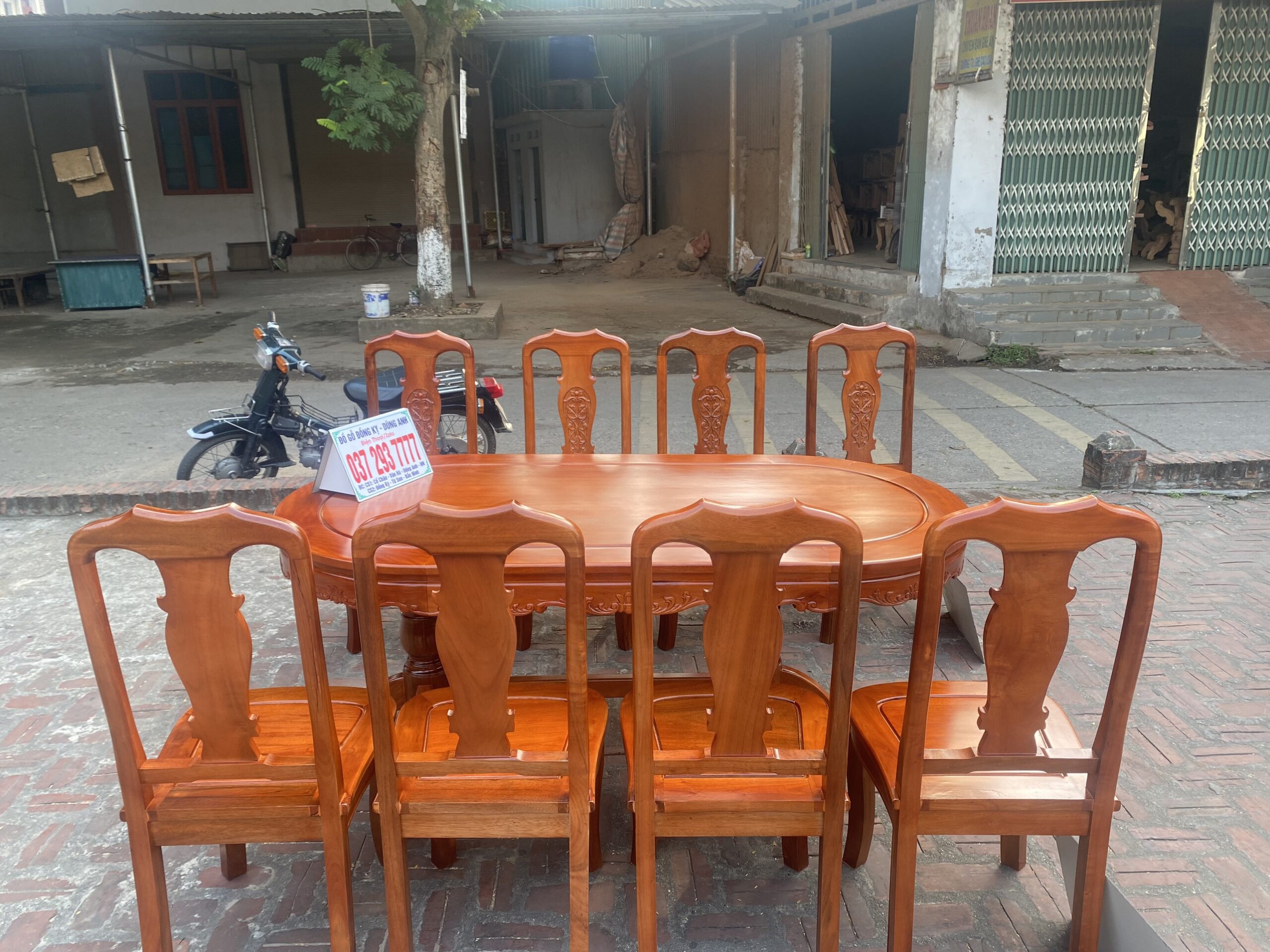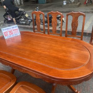 Bộ bàn ăn mẫu Hoa Dây chất liệu gỗ xoan đào bàn bầu dục + 8 ghế