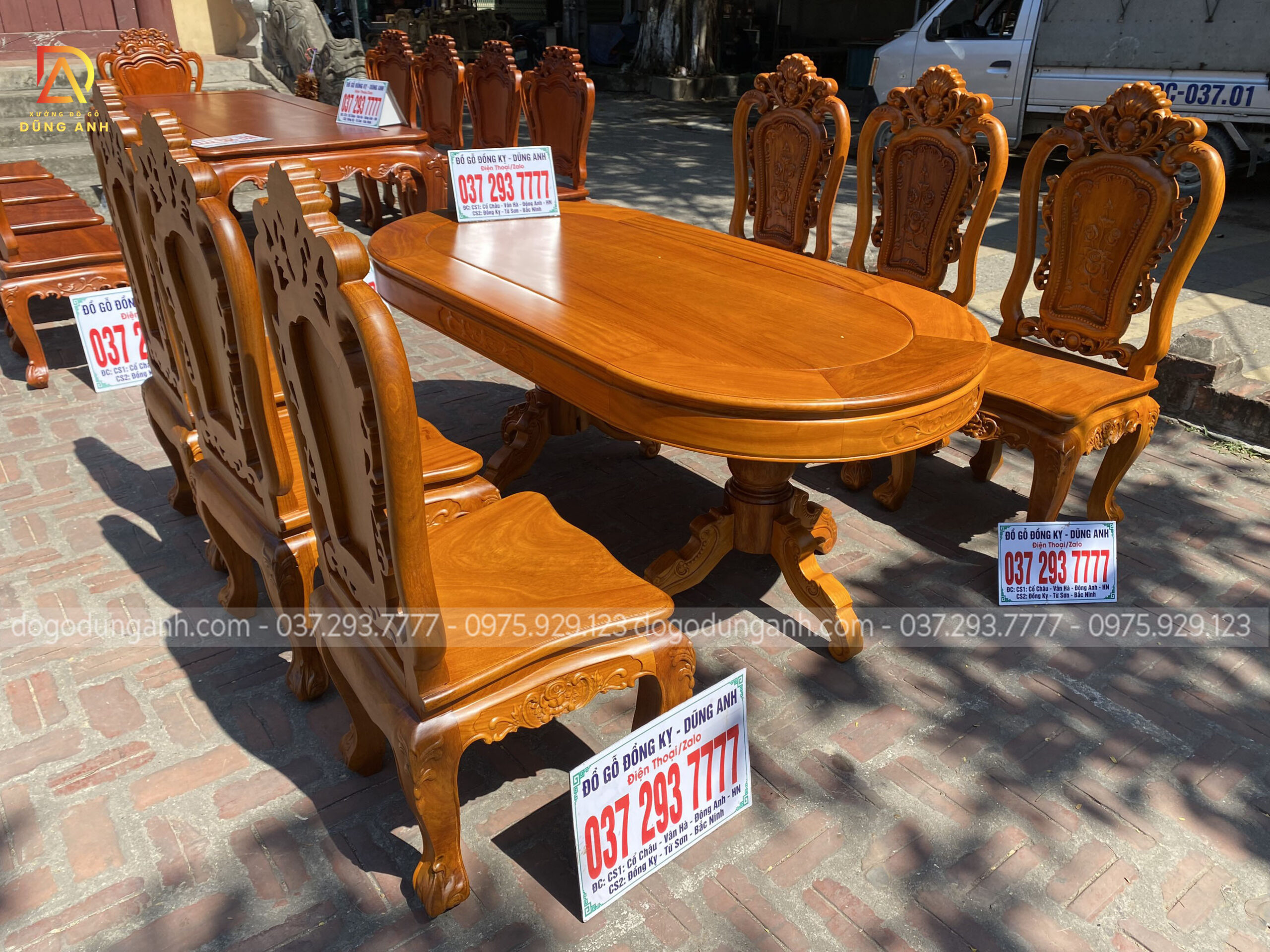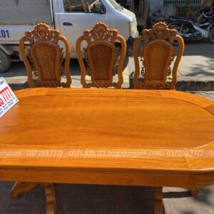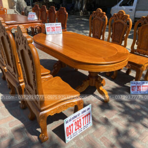 Bộ bàn ăn mẫu Hoa Hồng Hạt 6 ghế + bàn bầu dục