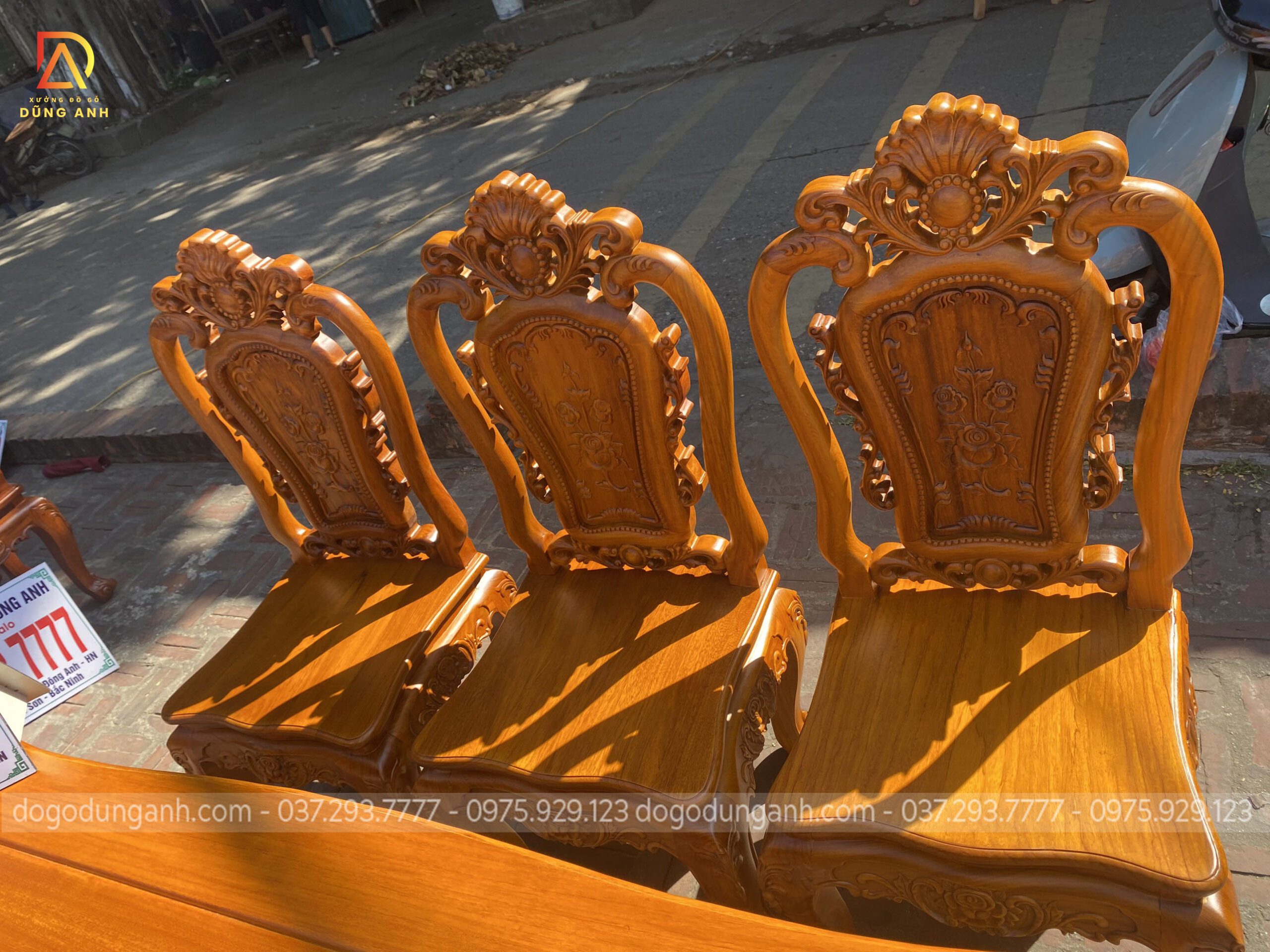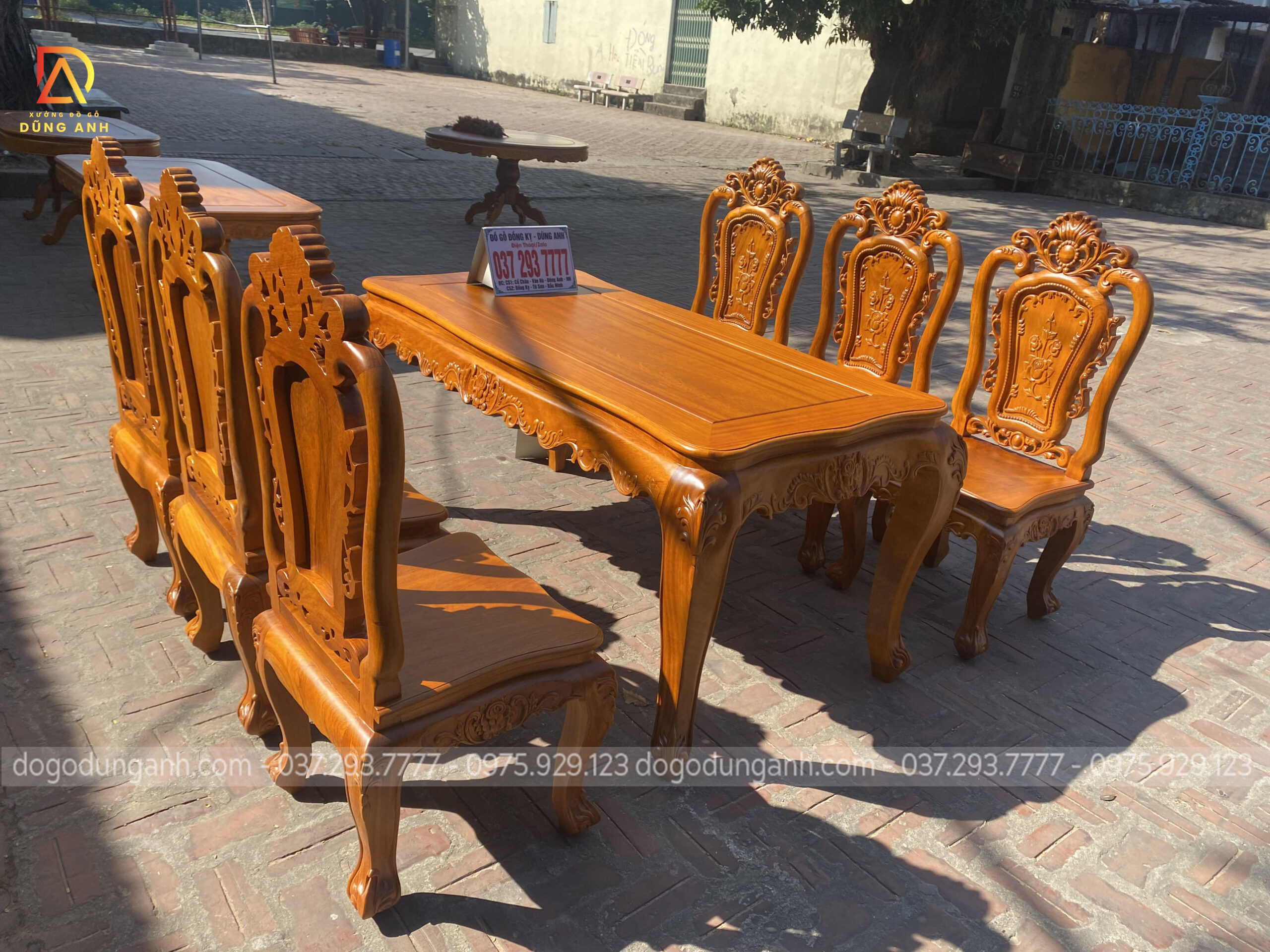Bộ bàn ăn mẫu Hoa Hồng Hạt 6 ghế + bàn củ lạc