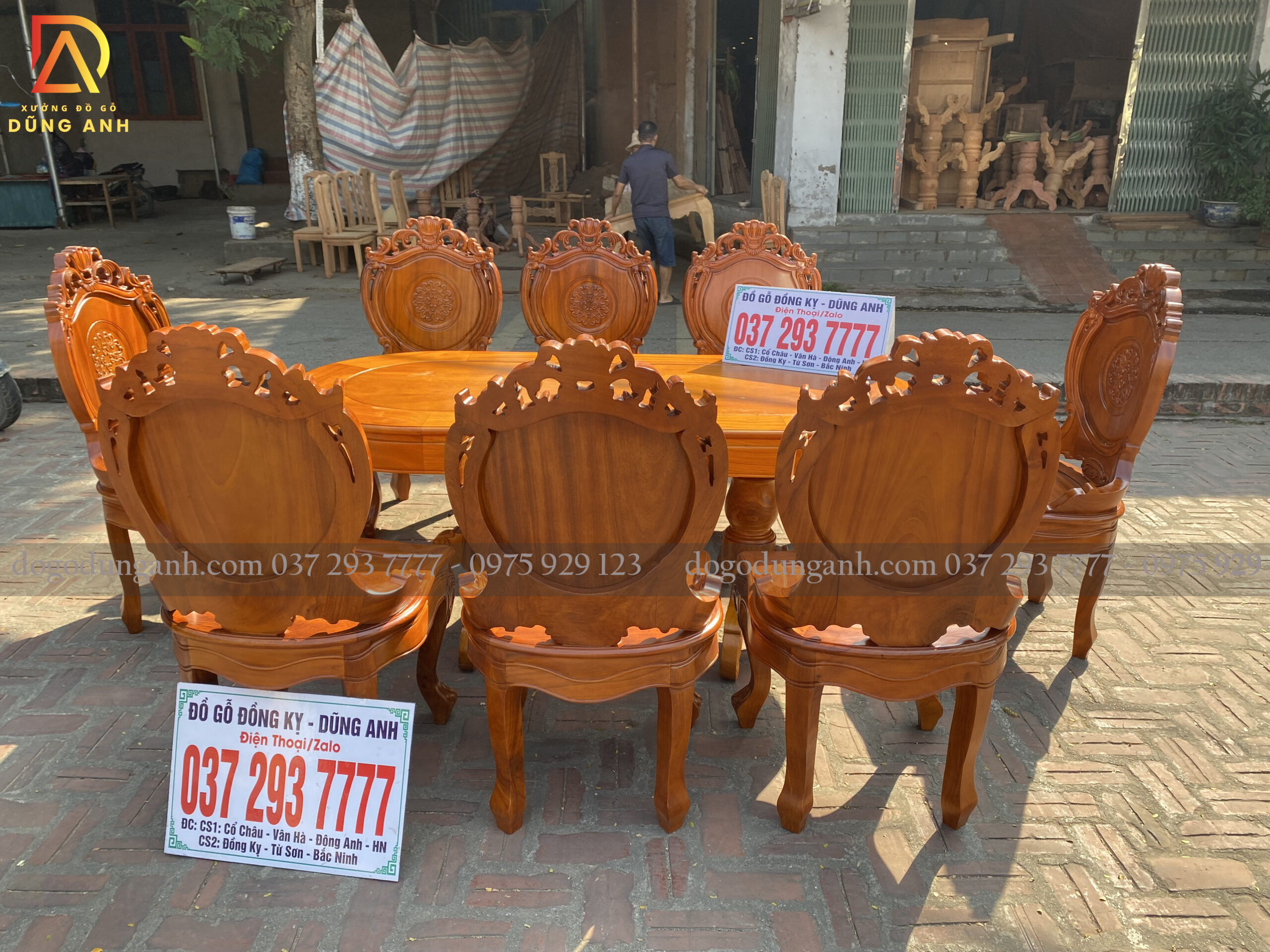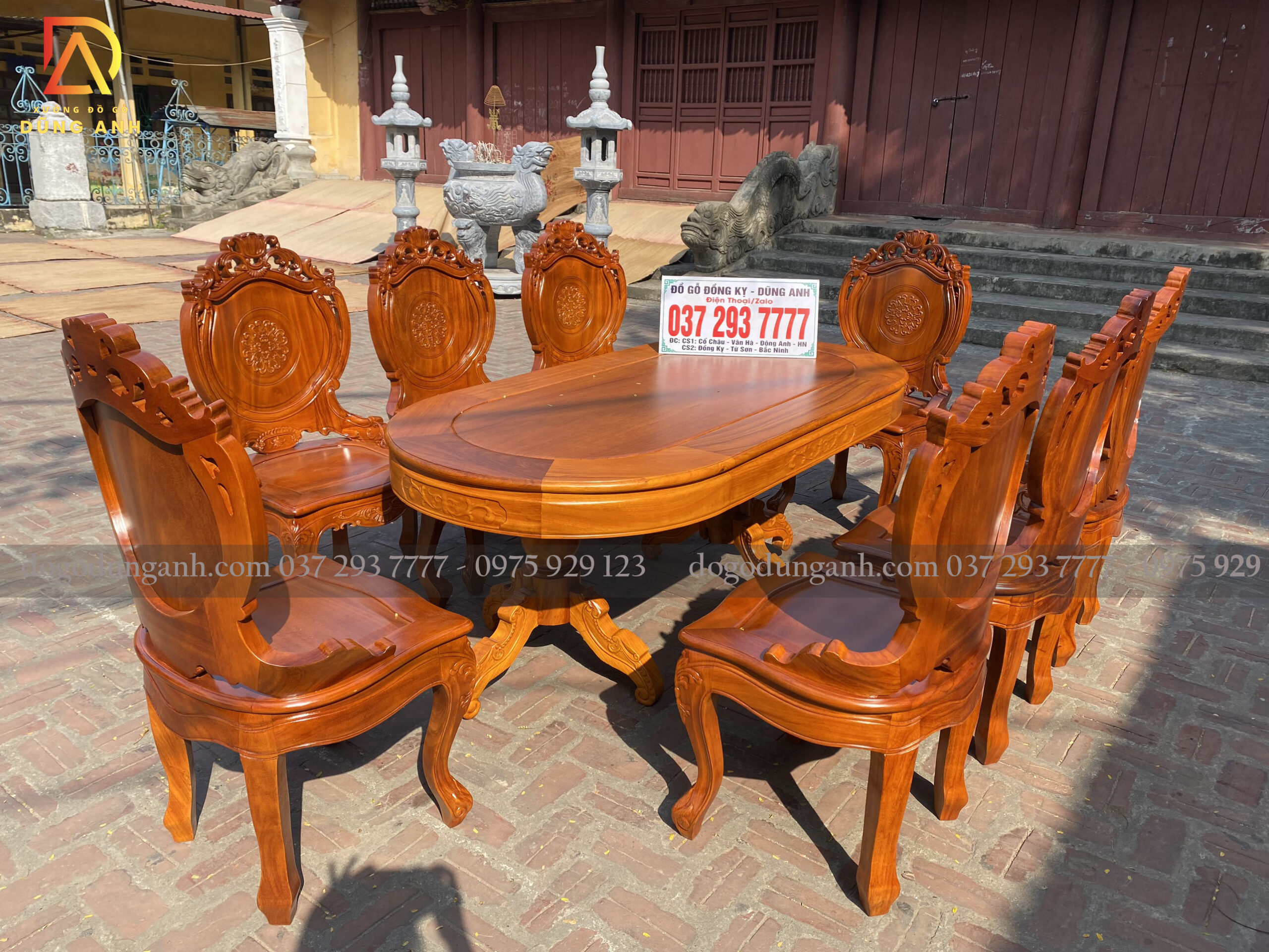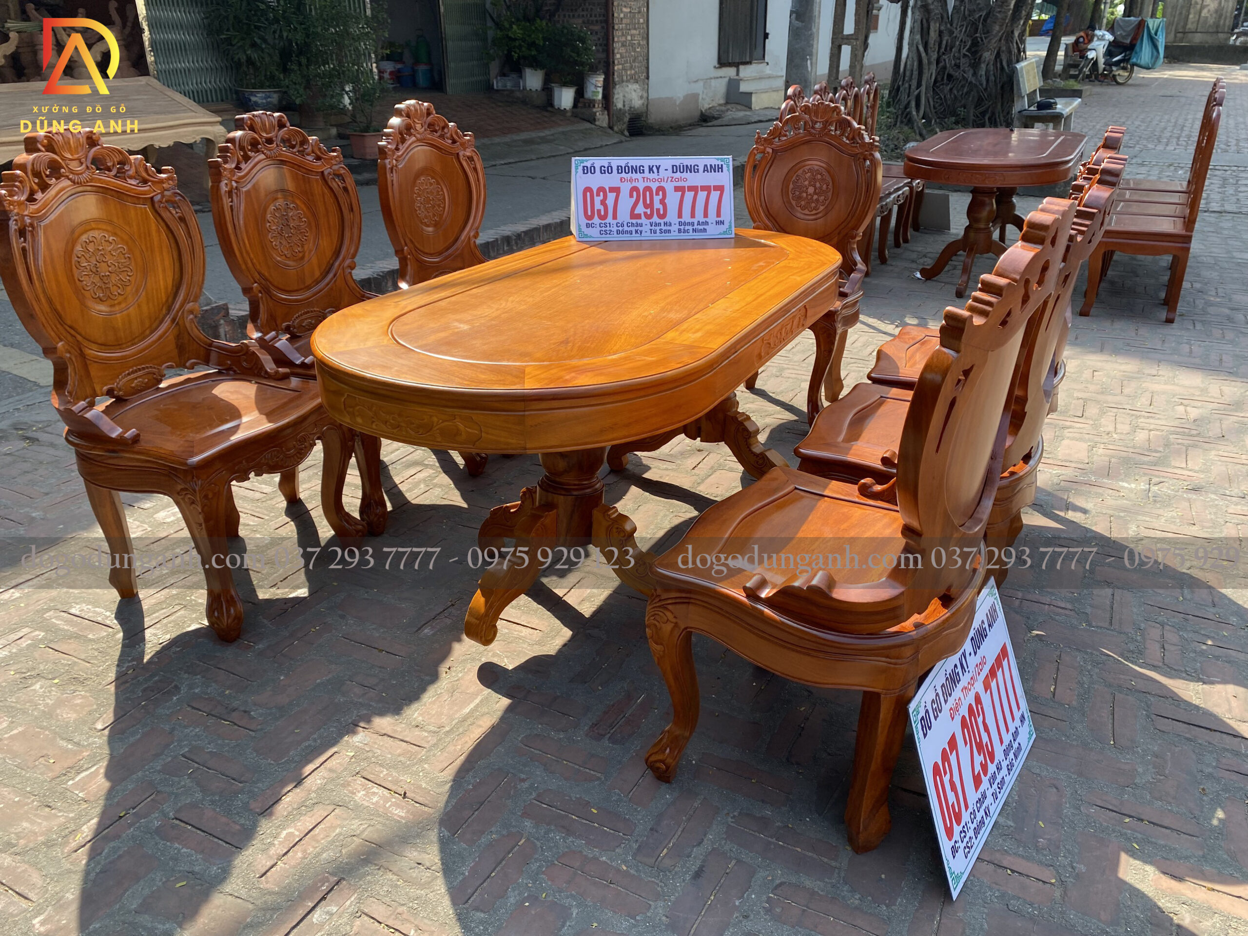 Bộ bàn ăn mẫu Louis Hoàng Gia 8 ghế + bàn bầu dục