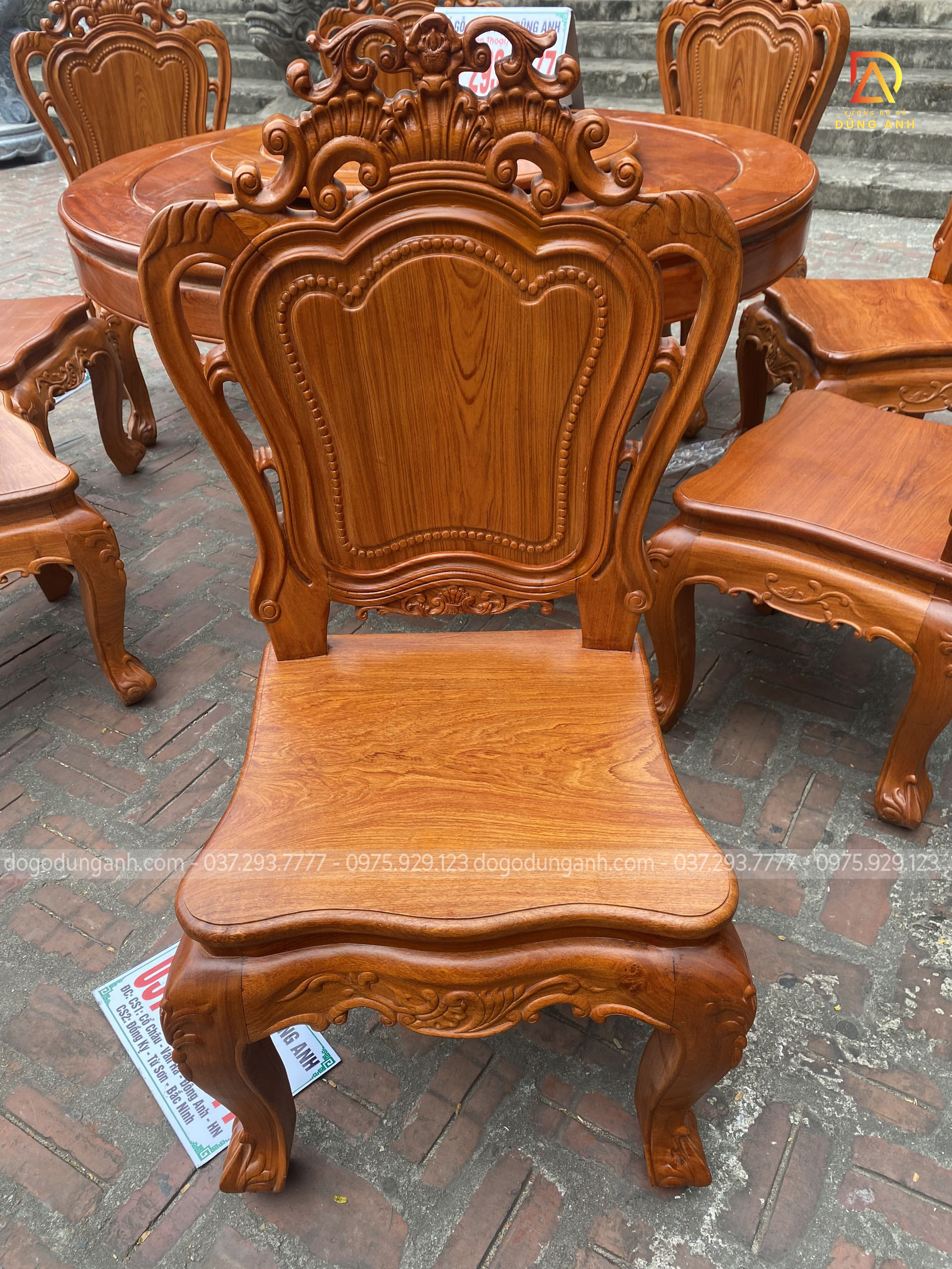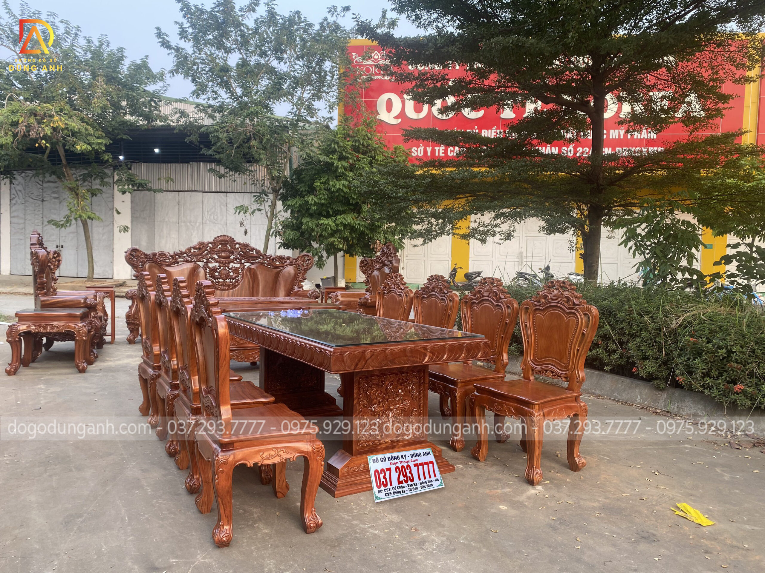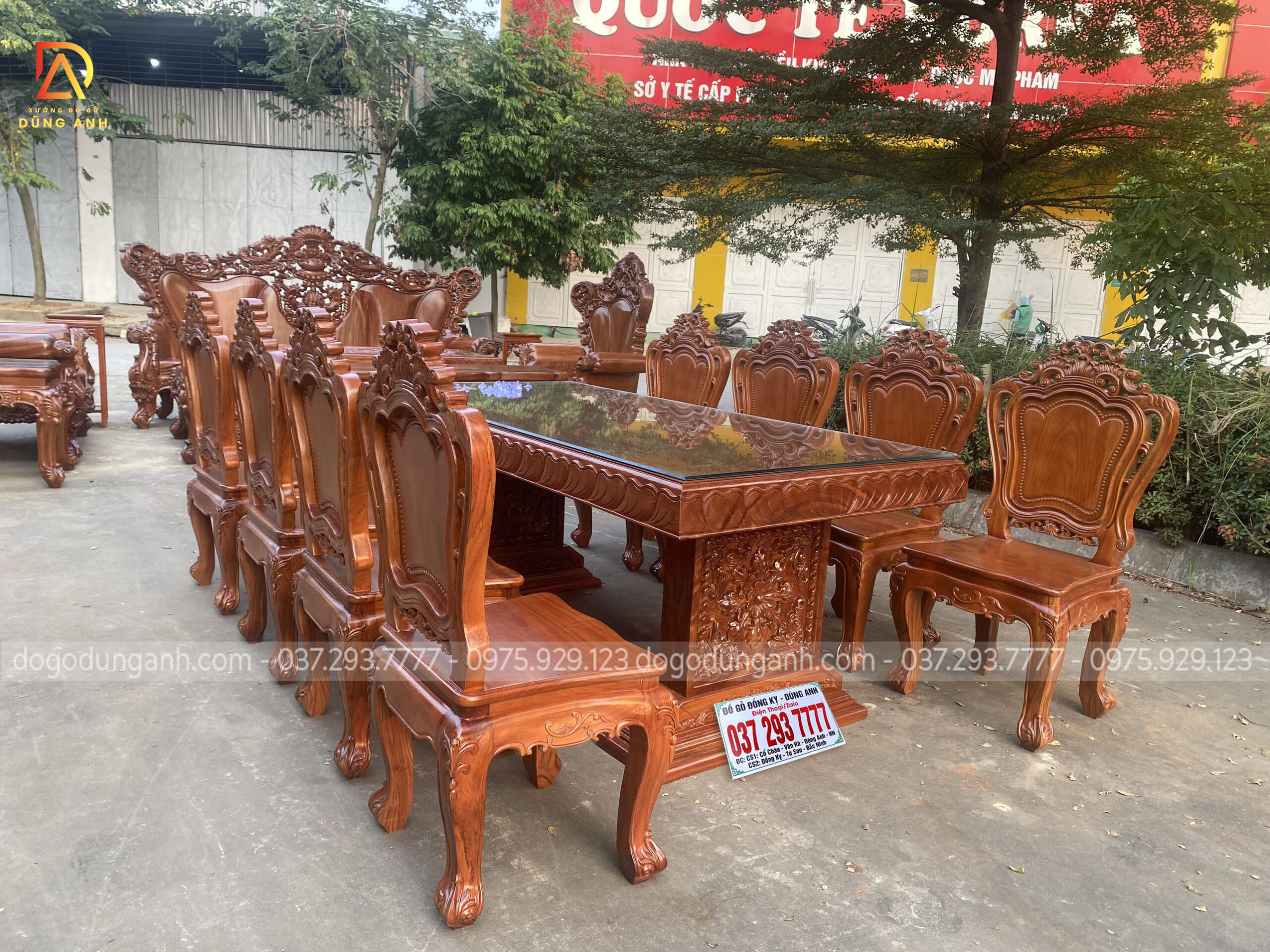 Bộ bàn ăn mẫu Louis Hoàng Gia bàn nguyên khối + 8 ghế gỗ Gõ Đỏ