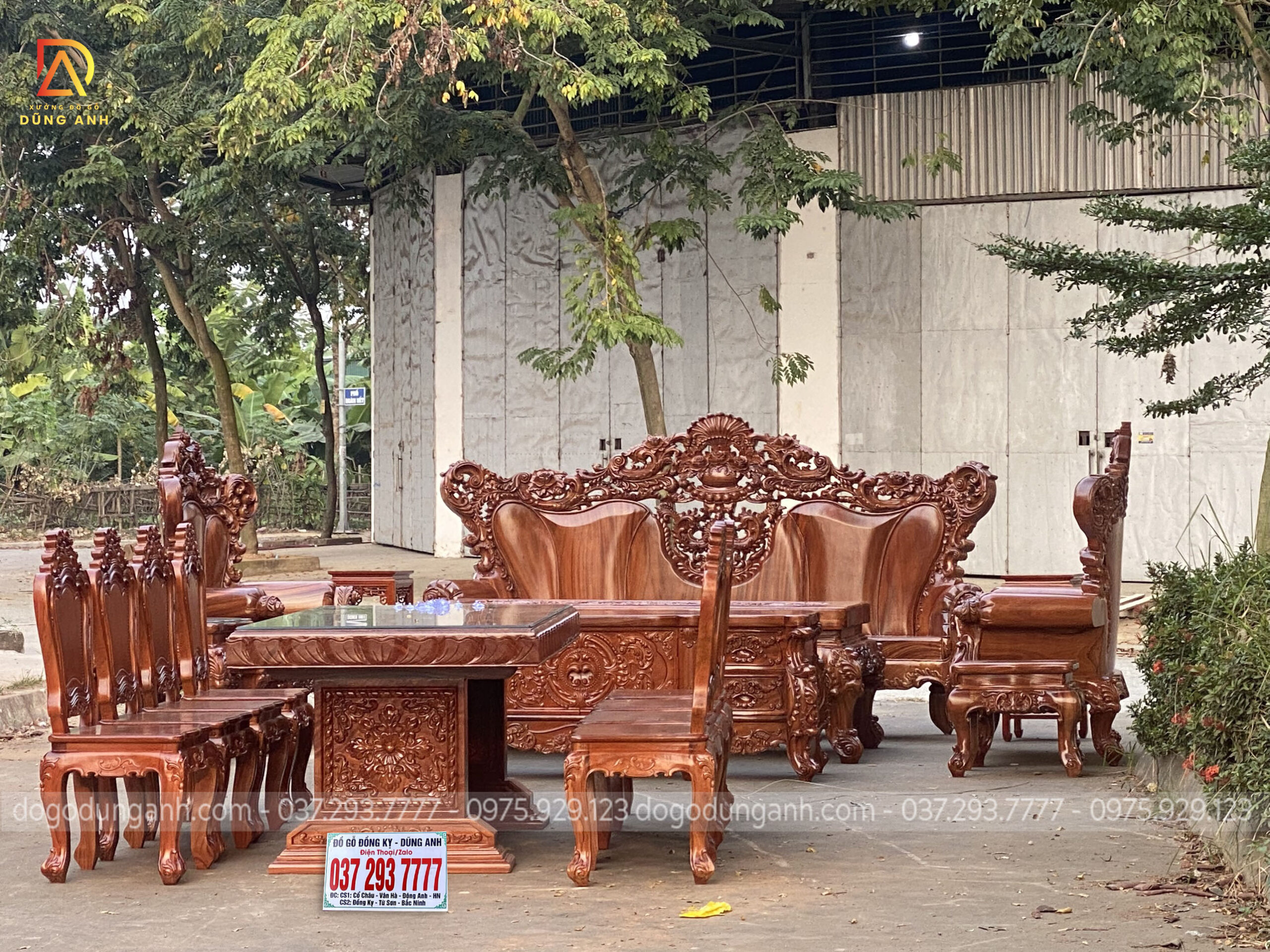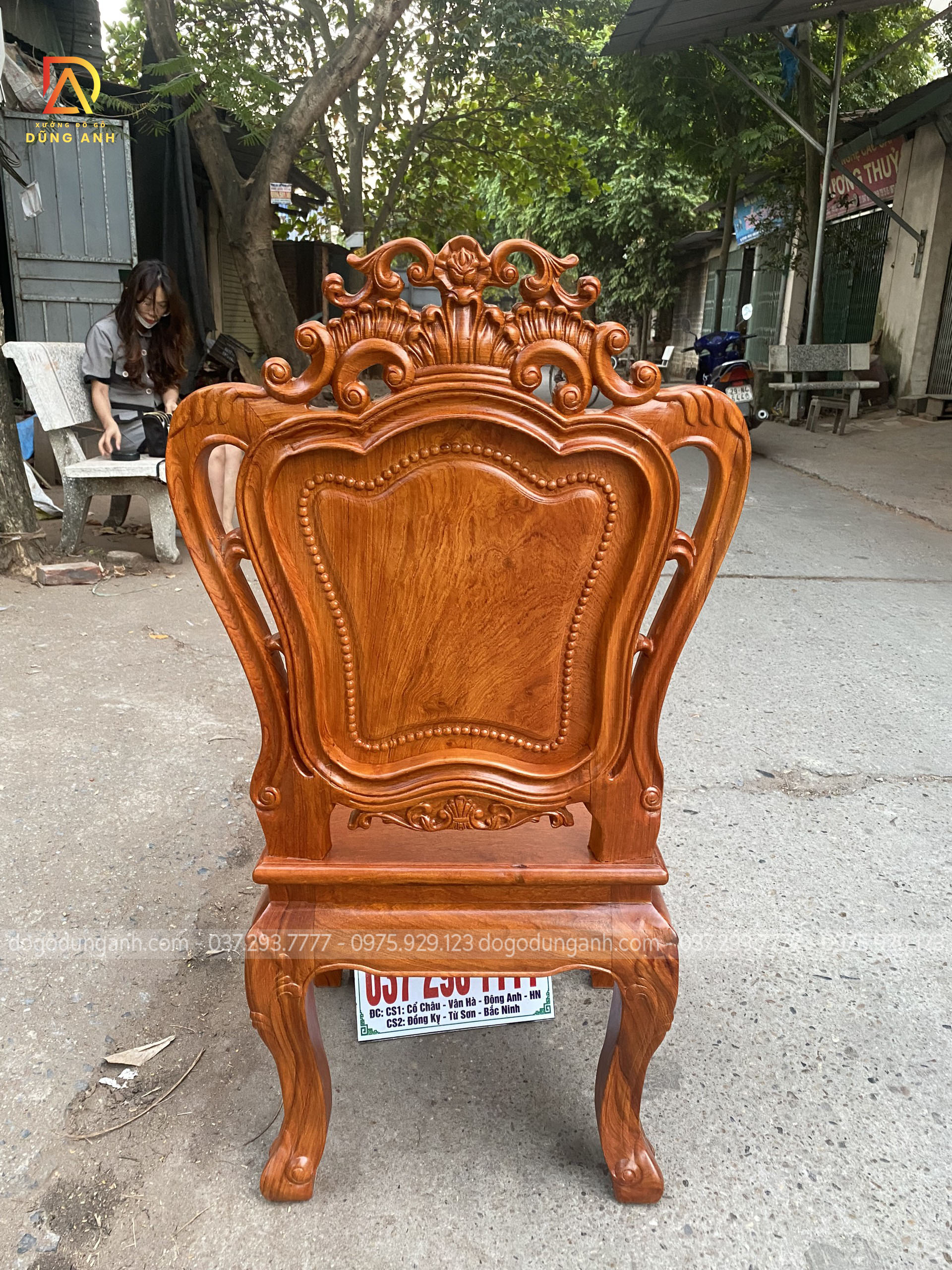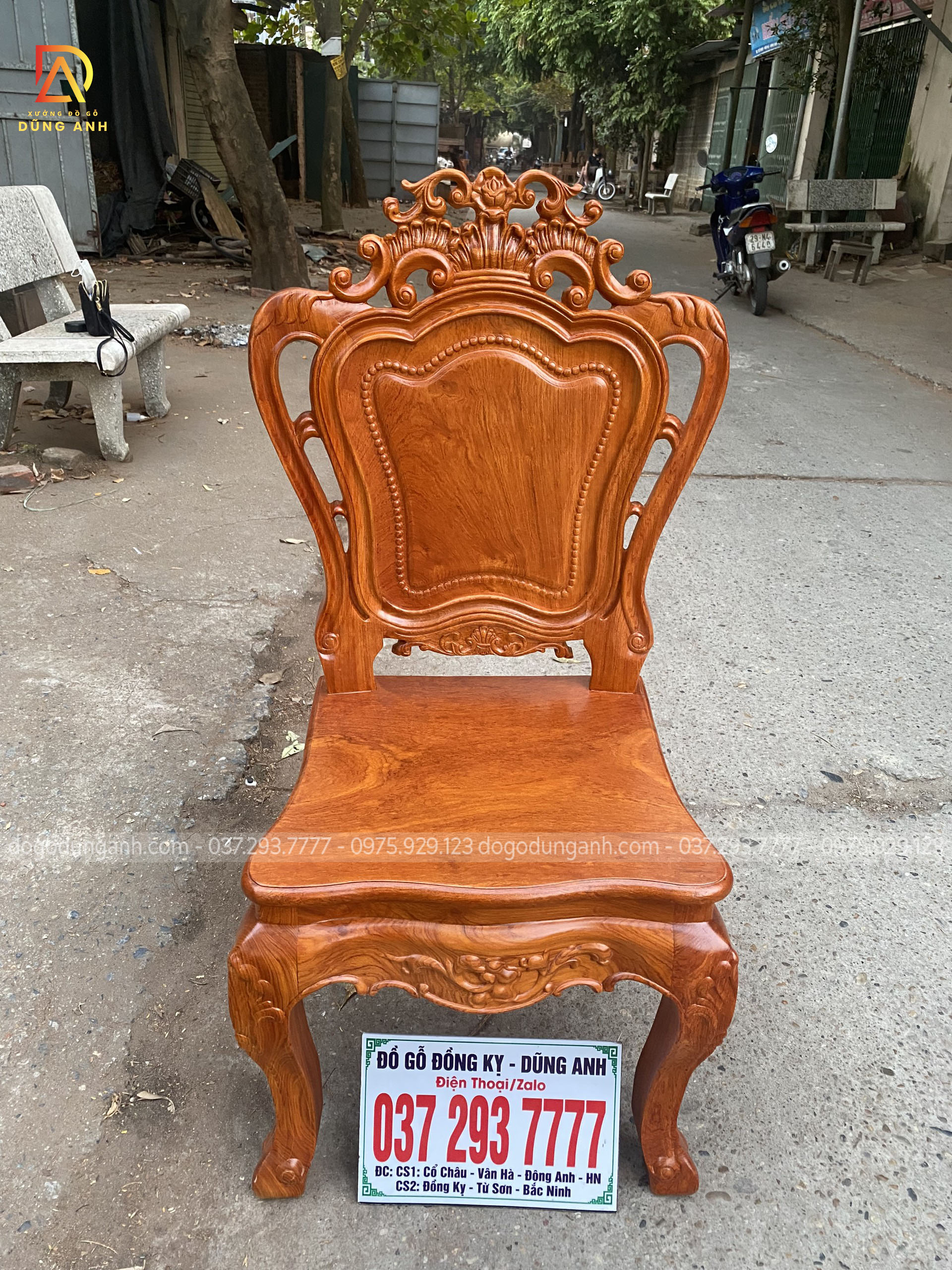 Bộ bàn ăn mẫu Louis Hoàng Gia bàn nguyên khối + 8 ghế gỗ Gõ Đỏ