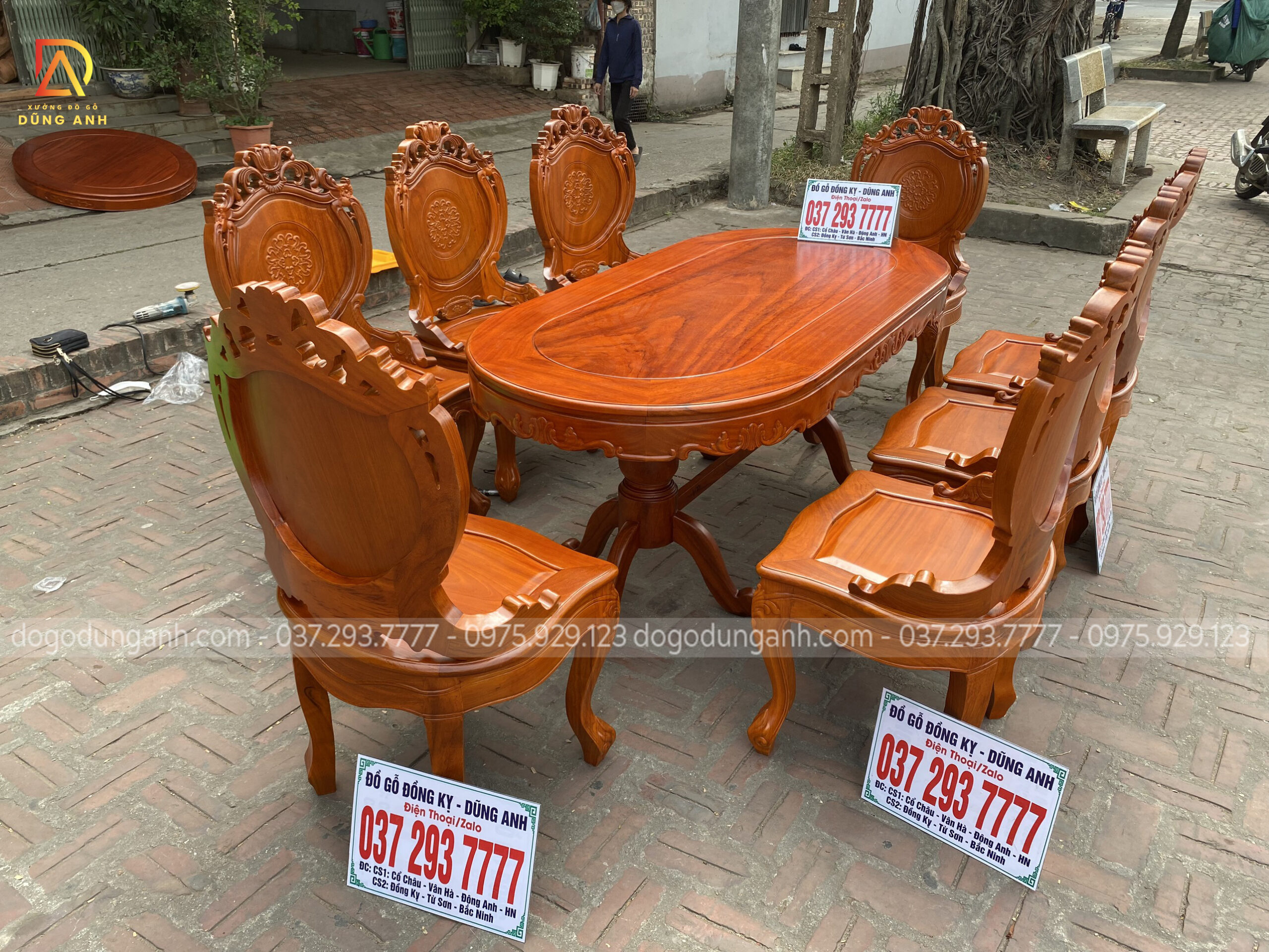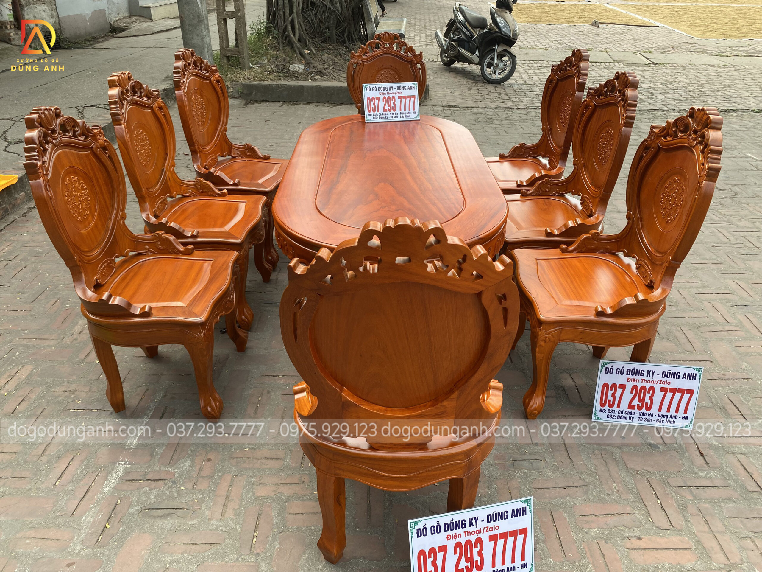 Bộ bàn ăn mẫu Louis Hoàng Gia có tai 8 ghế + bàn bầu dục