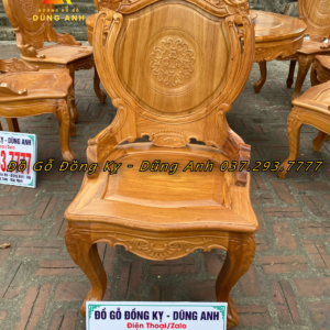 Bộ sản phẩm 8 ghế và 1 bàn tròn đã được anh Toàn ở Tuyên Quang tin tưởng và tìm đến Xưởng Dũng Anh để đặt mua. Được làm từ chất liệu Gỗ Gõ Đỏ, một loại gỗ quý hiếm, có độ cứng và bền bỉ cao, có khả năng chịu đựng va đập mạnh, chống chịu ẩm, nước rất tốt. Do đó đồ nội thất được làm từ loại gỗ này sẽ có tuổi thọ rất cao. Ngoài ra Gỗ Gõ Đỏ có đường vân rất đẹp với màu nâu đỏ đẹp với hình cuộn xoắn, rõ nét làm tăng thêm độ cuốn hút cho các sản phẩm nội thất.