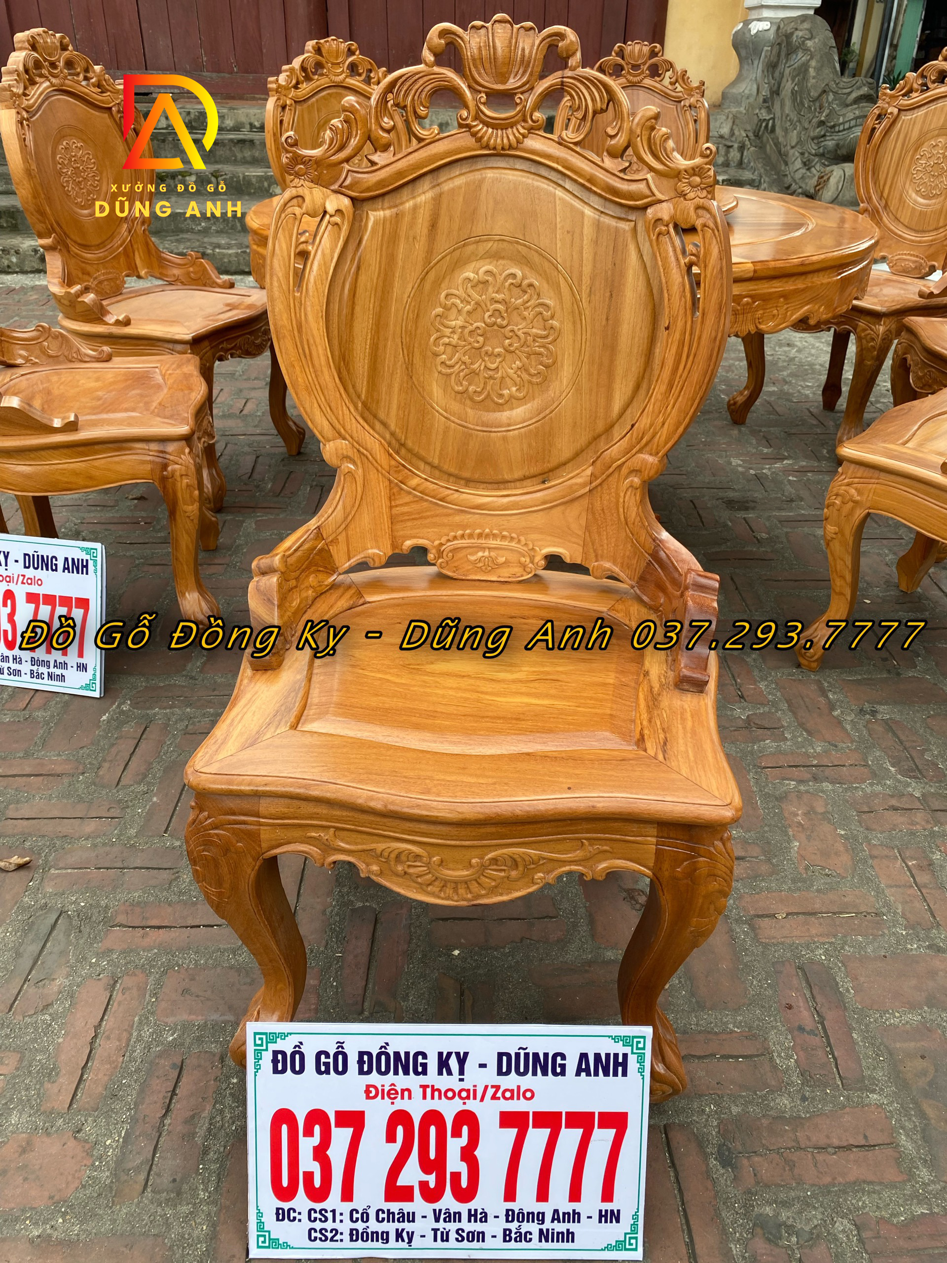 Sản phẩm anh đặt gồm 1 bàn tròn kết hợp cùng bộ 8 ghế lưng tựa cao có tay được thiết kế theo phong cách hoàng gia tân cổ điển. Với kích thước hoành tráng cùng vẻ đẹp sang trọng vượt bậc mẫu bàn ghế ăn này đặc biệt phù hợp với không gian phòng bếp lớn. Đồng thời thể hiện được độ đẳng cấp và chịu chơi của chủ sở hữu.