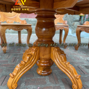 Bộ bàn ăn mẫu Louis Hoàng Gia có tai 8 ghế + bàn tròn có mâm xoay (Anh Toàn, Tuyên Quang)