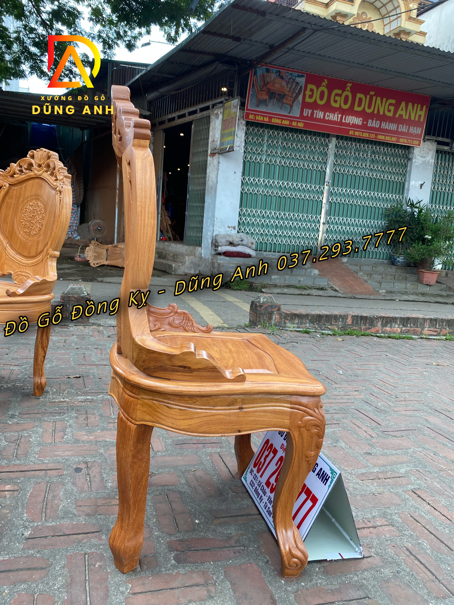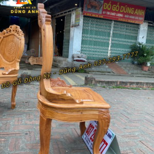 - Chân ghế bản cong 8cm được đục hoa lá tây, rất phù hợp với chiếc bàn
