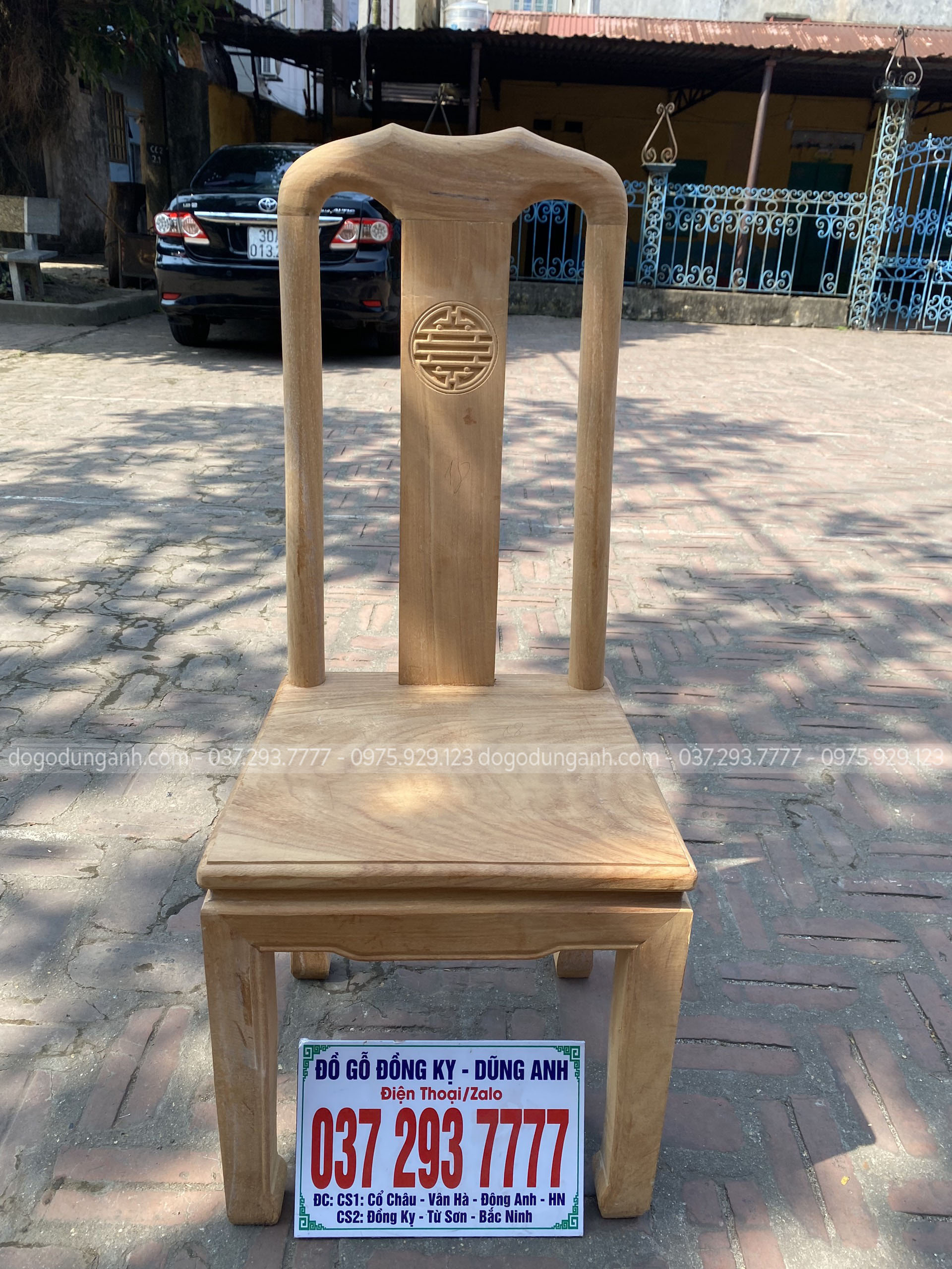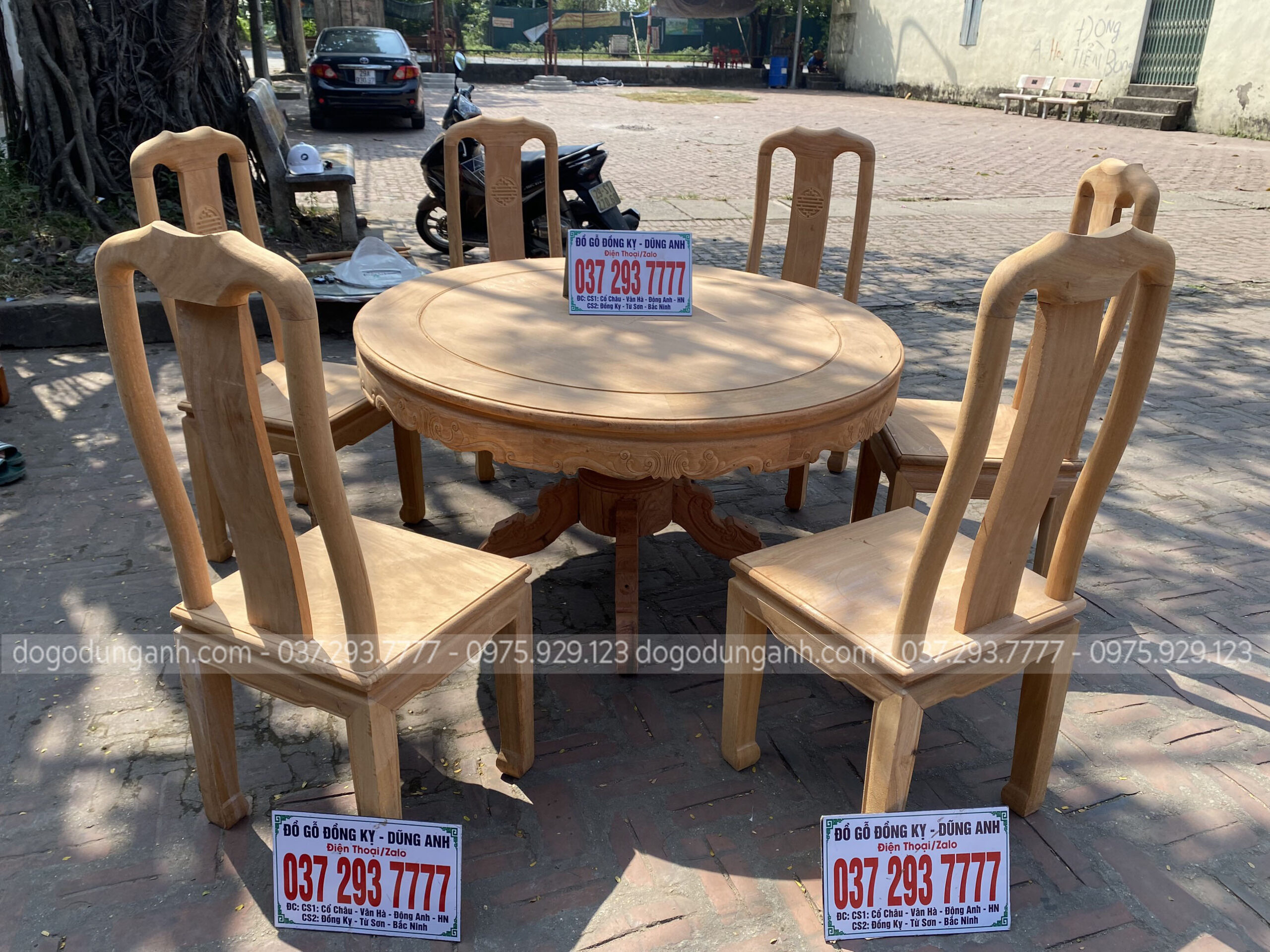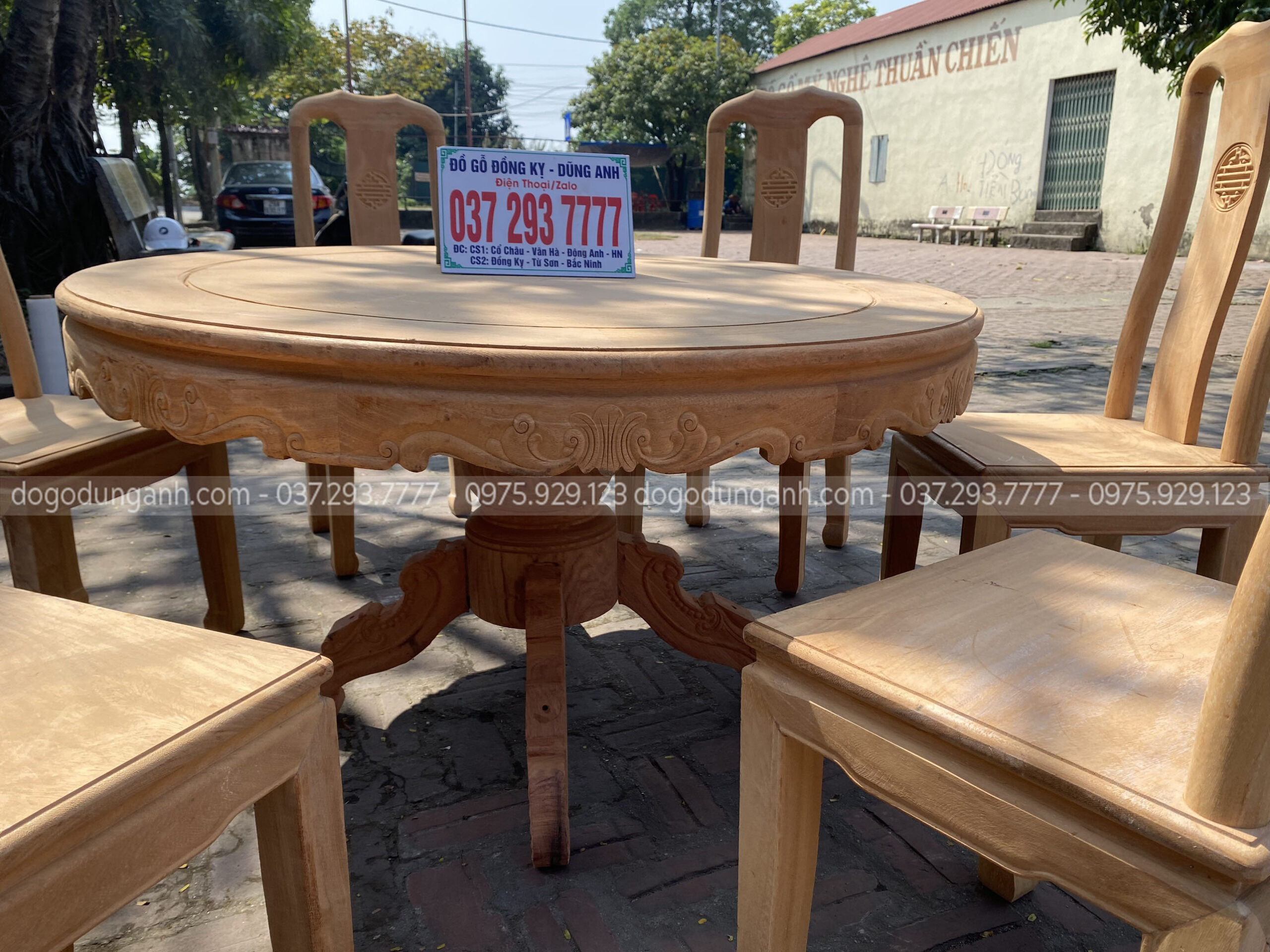 Bộ bàn ăn Triện Thọ tràn liền nguyên khối dày 2,5cm chất liệu gỗ Gõ Đỏ Nam Phi