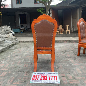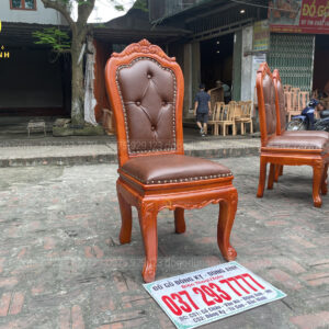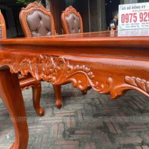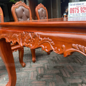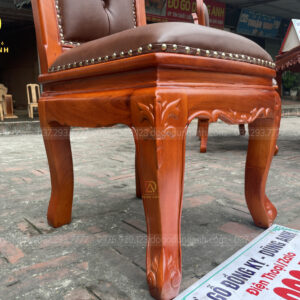 - Chân ghế dày 8 cm vén cong được đục hoa lá tây theo lối bàn , đồng đều và đẹp mắt
