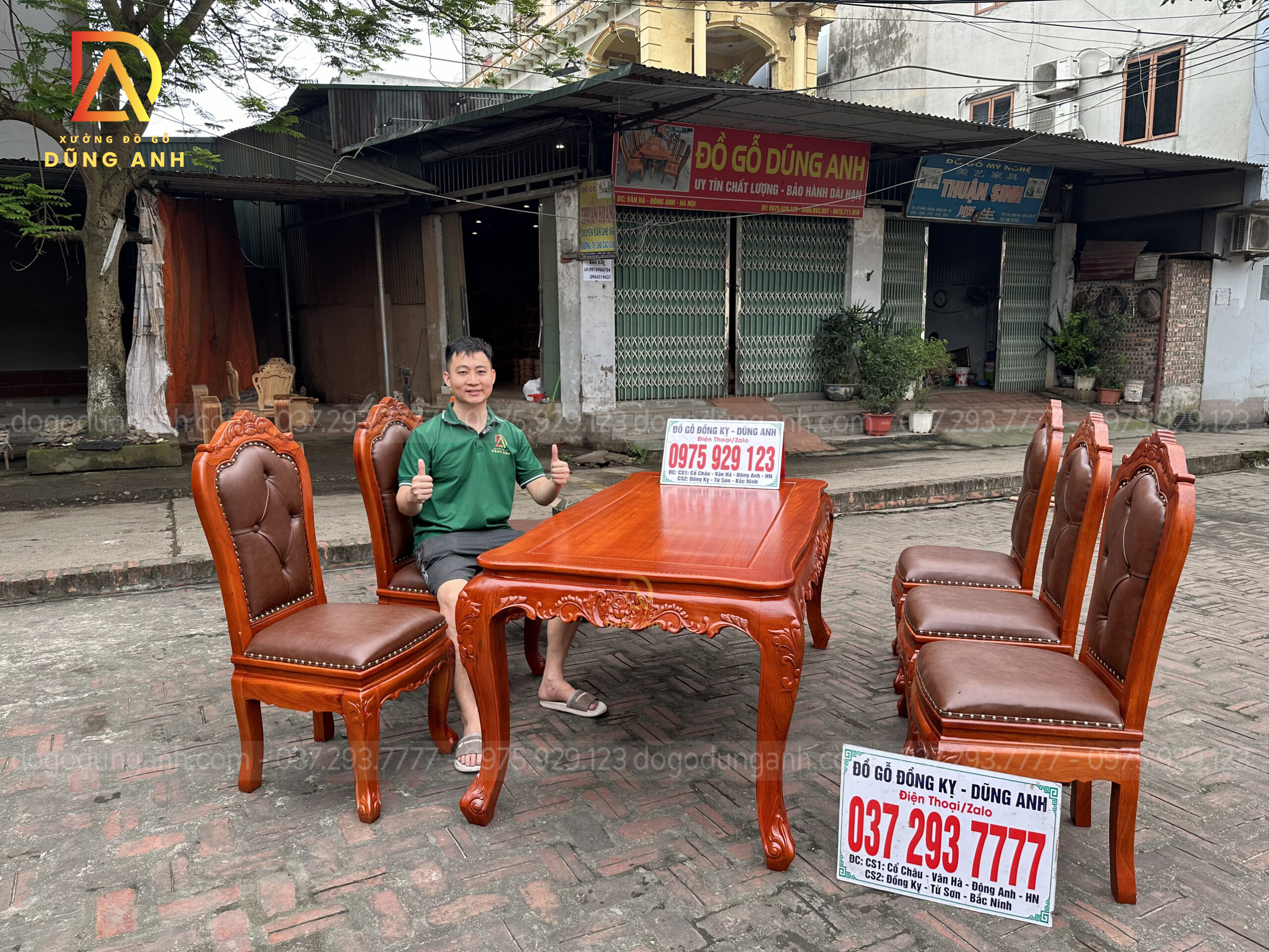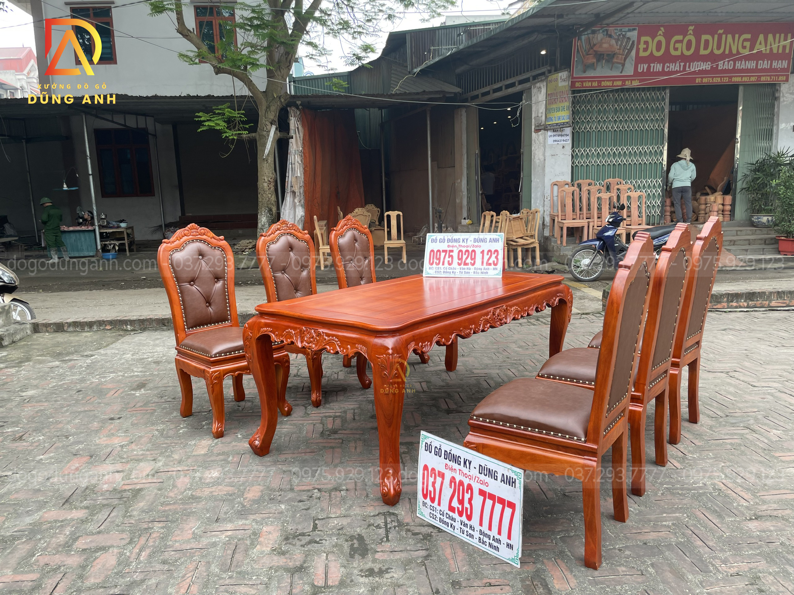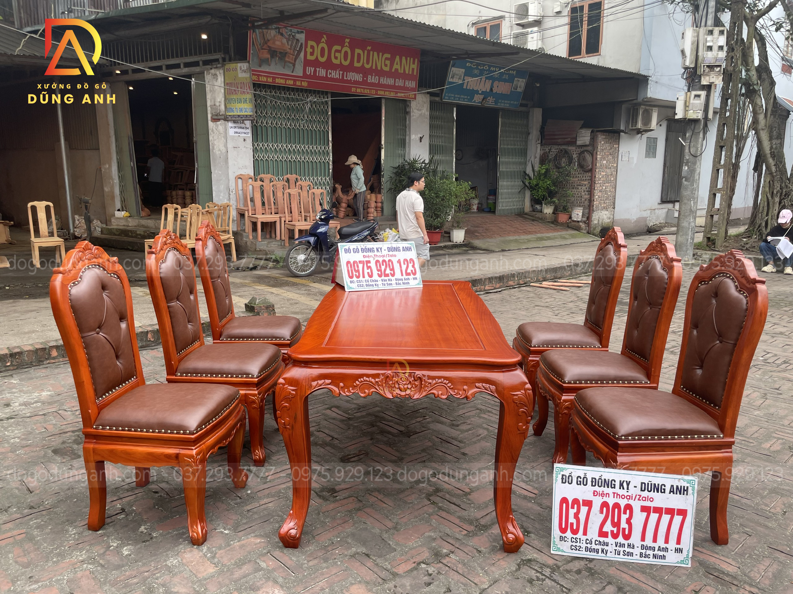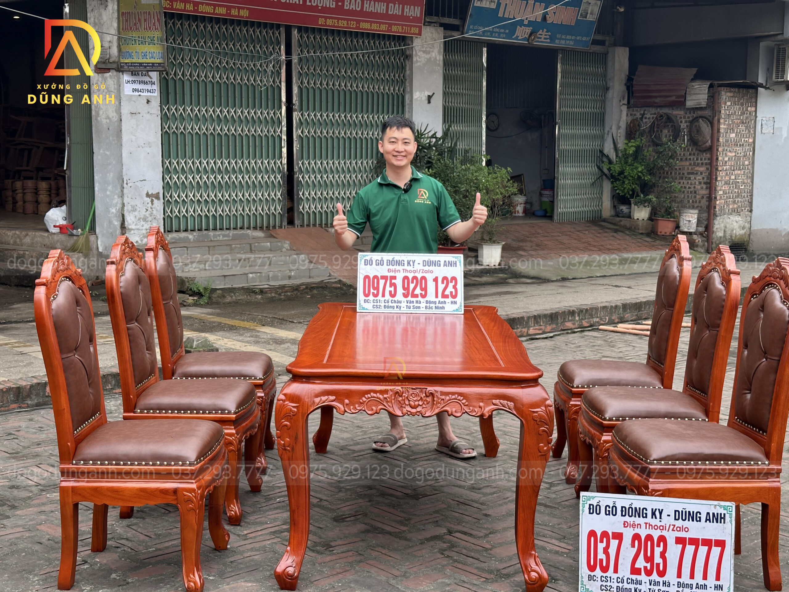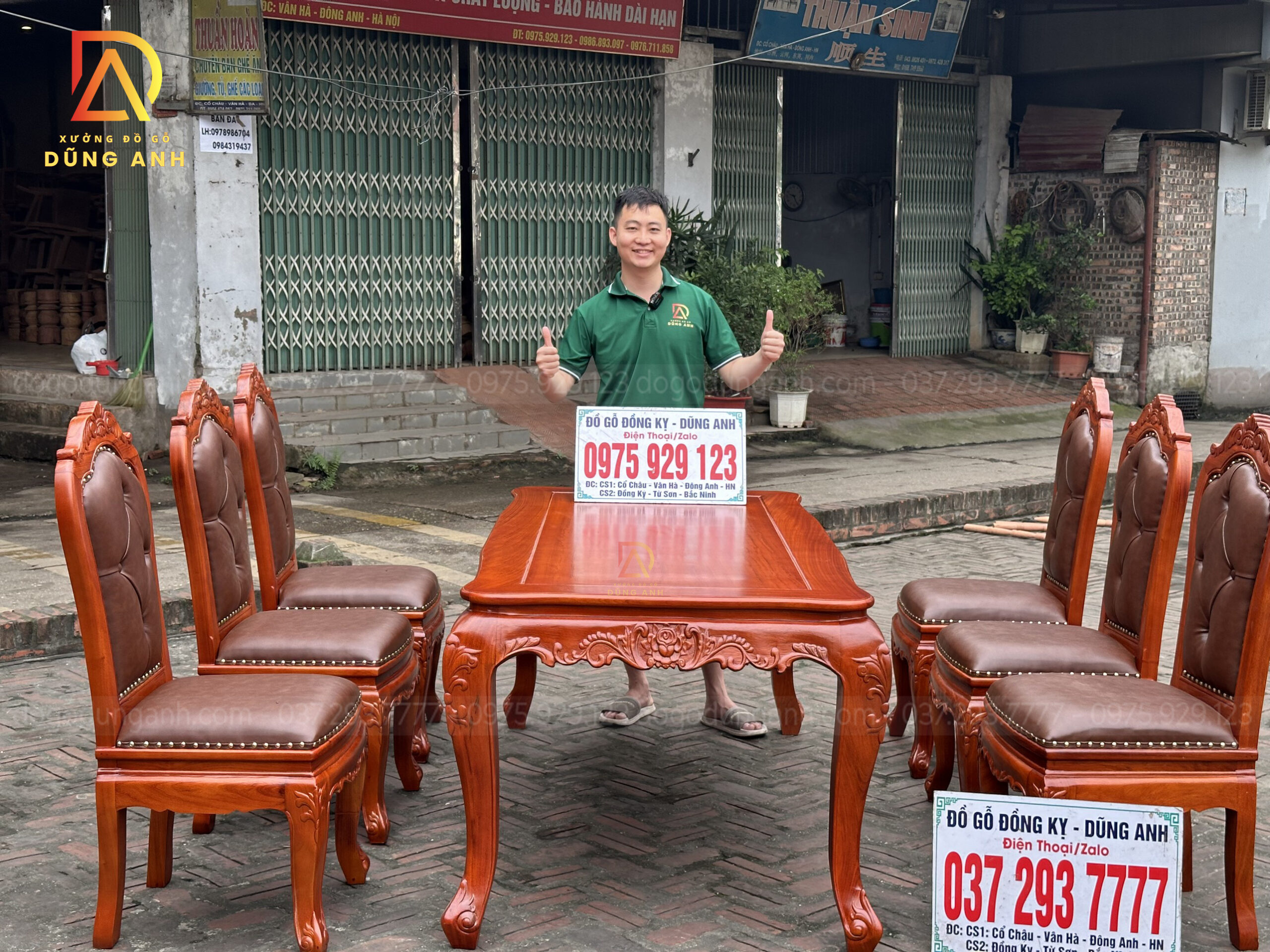 Quý khách có thể tham khảo thêm các mẫu bàn ghế ăn đẹp, bàn ghế ăn nguyên khối, các mẫu ghế ăn đẹp thì có thể liên hệ ngay với Xưởng đồ gỗ Dũng Anh qua: