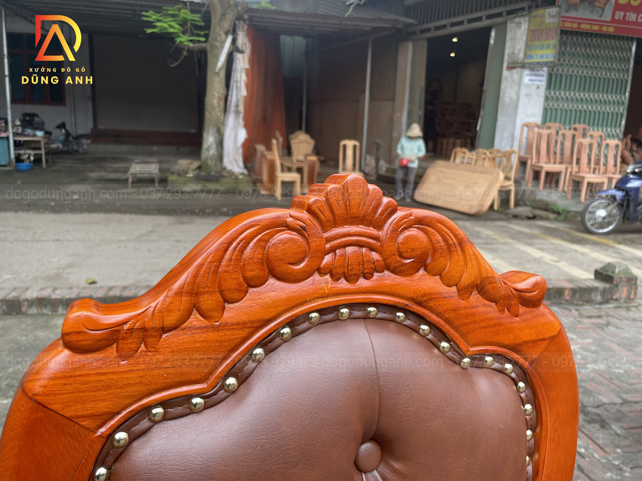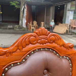 - Trương ghế đục chạm hoa lá tây hình vương miện , ghế được sơn nước sơn của đài loan cực kì sáng bóng và trơn tru