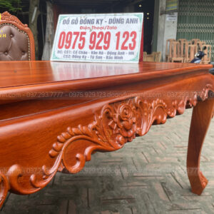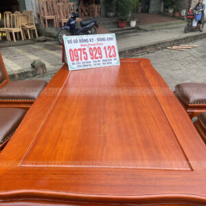 - Chiếc bàn có kích thước chiều rộng là 90 cm và chiều dài 180cm , khuôn trang được bo cong theo củ lạc từ yếm cổ tạo điểm nhấn bắt mắt hơn cho chiếc bàn