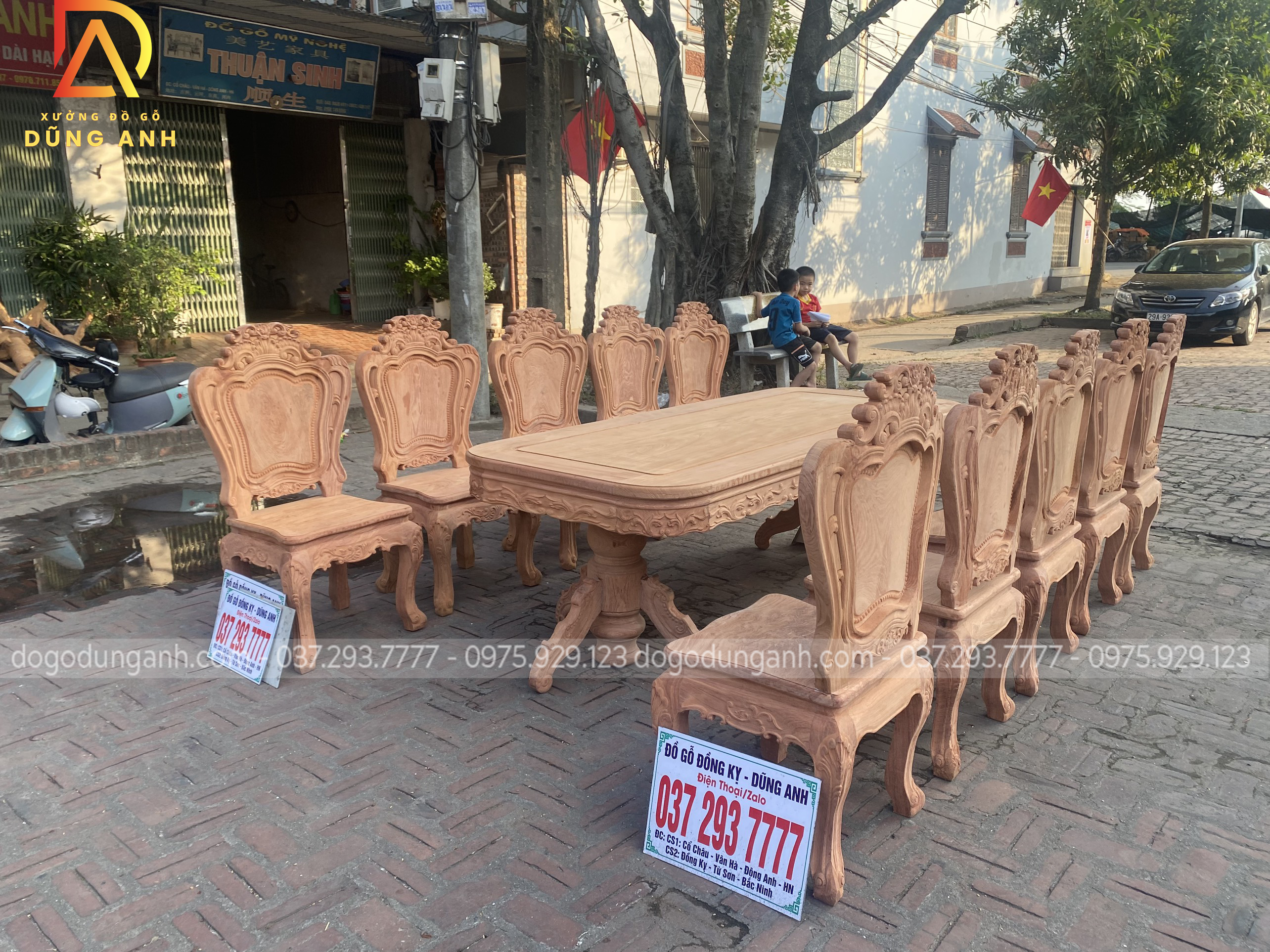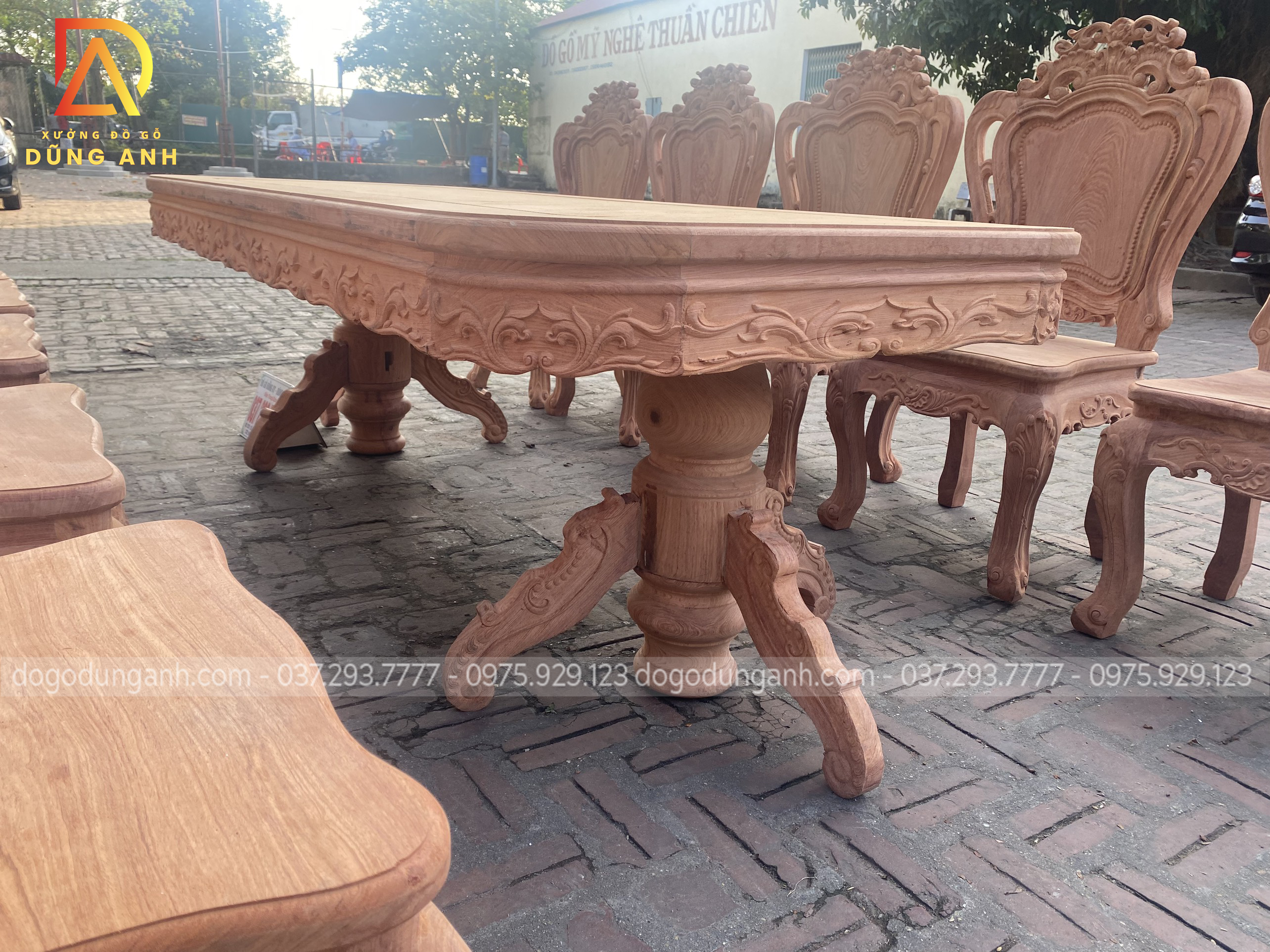 Bộ bàn ghế louis hoàng gia của anh Xiêm gồm 10 ghế và 1 bàn cua góc