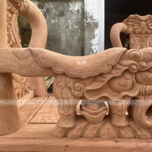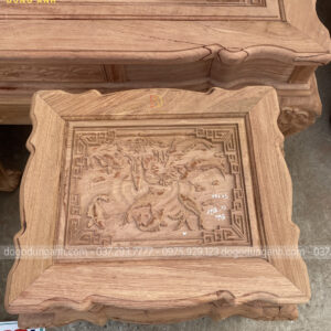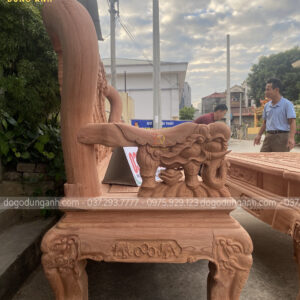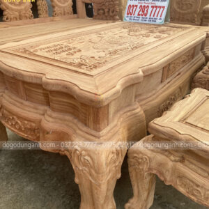 Siêu phẩm bàn ghế phòng khách kiểu dáng Hoàng Gia đục khắc 2 mặt tinh xảo, từng đường nét chạm trổ được thể hiện tài tình và kéo léo dưới bàn tay của những người thợ thủ công làng nghề truyền thống.