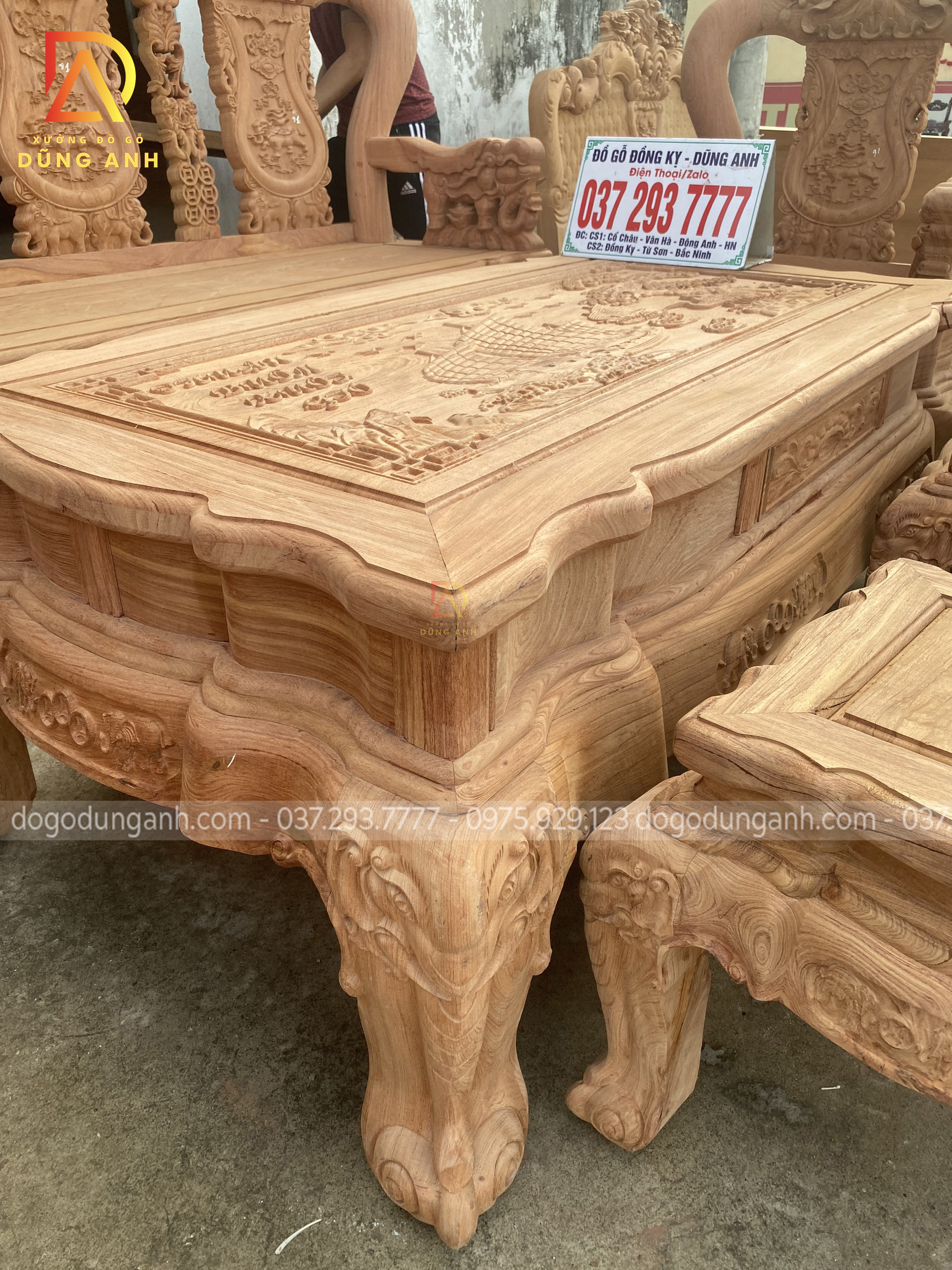 Đồ gỗ Dũng Anh vừa hoàn thành phần thô bộ bàn ghế Minh Quốc Voi sau 2 tuần. Sản phẩm được đích thân thợ mộc trên 40 năm kinh nghiệm thực hiện. Bộ sản phẩm được thi công với chất lượng gỗ Hương Đá với 100% chất liệu gỗ tự nhiên