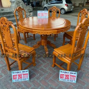 Bộ ghế Hồng Con chất liệu gỗ Gõ Đỏ 6 ghế kết hợp bàn tròn