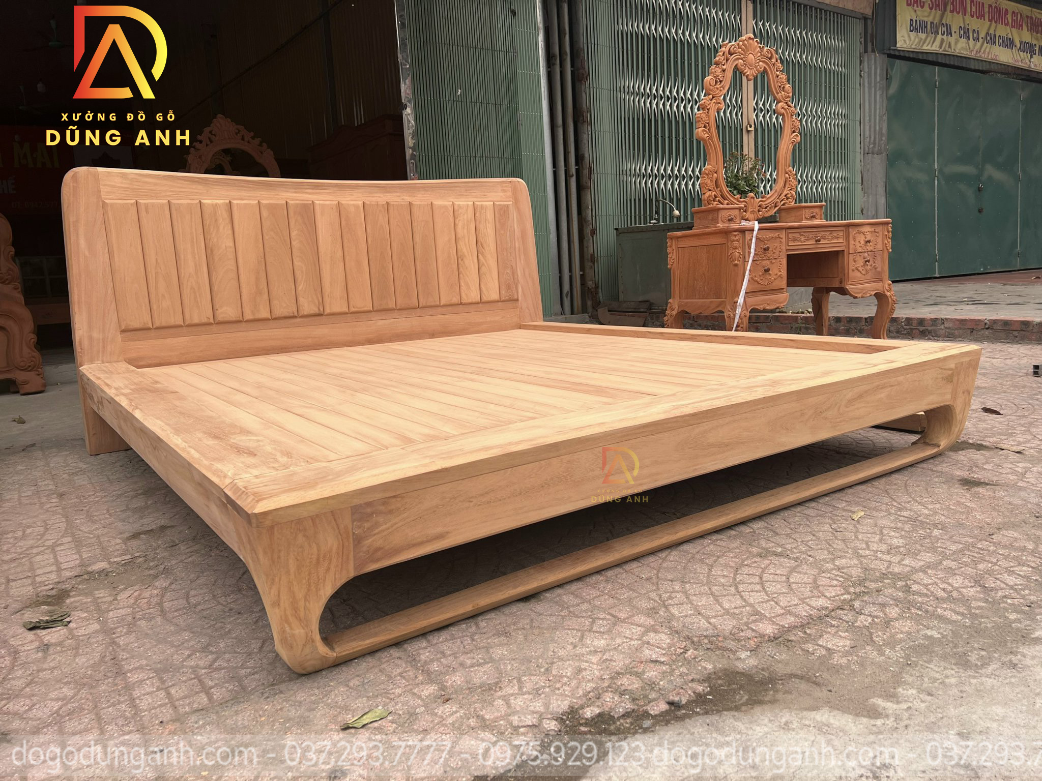 Kích thước đặt lòng đệm 1m80x2m chất liệu gỗ gõ đỏ có độ co ngót rất là ít