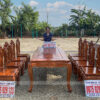 Bộ Hiện đại 6 Ghế kết hợp bàn nguyên khối chân trụ chữ U – Gỗ Gõ Đỏ