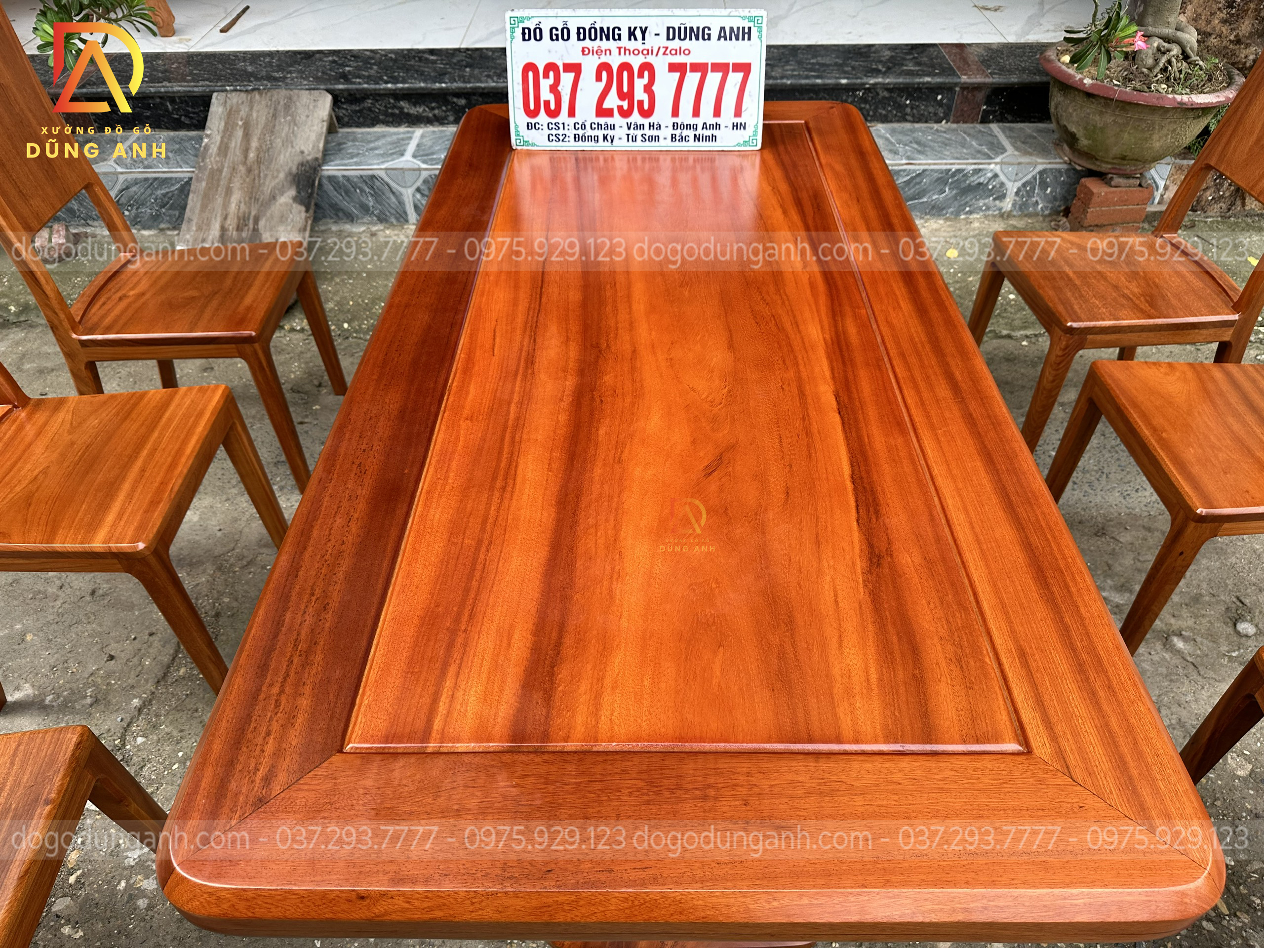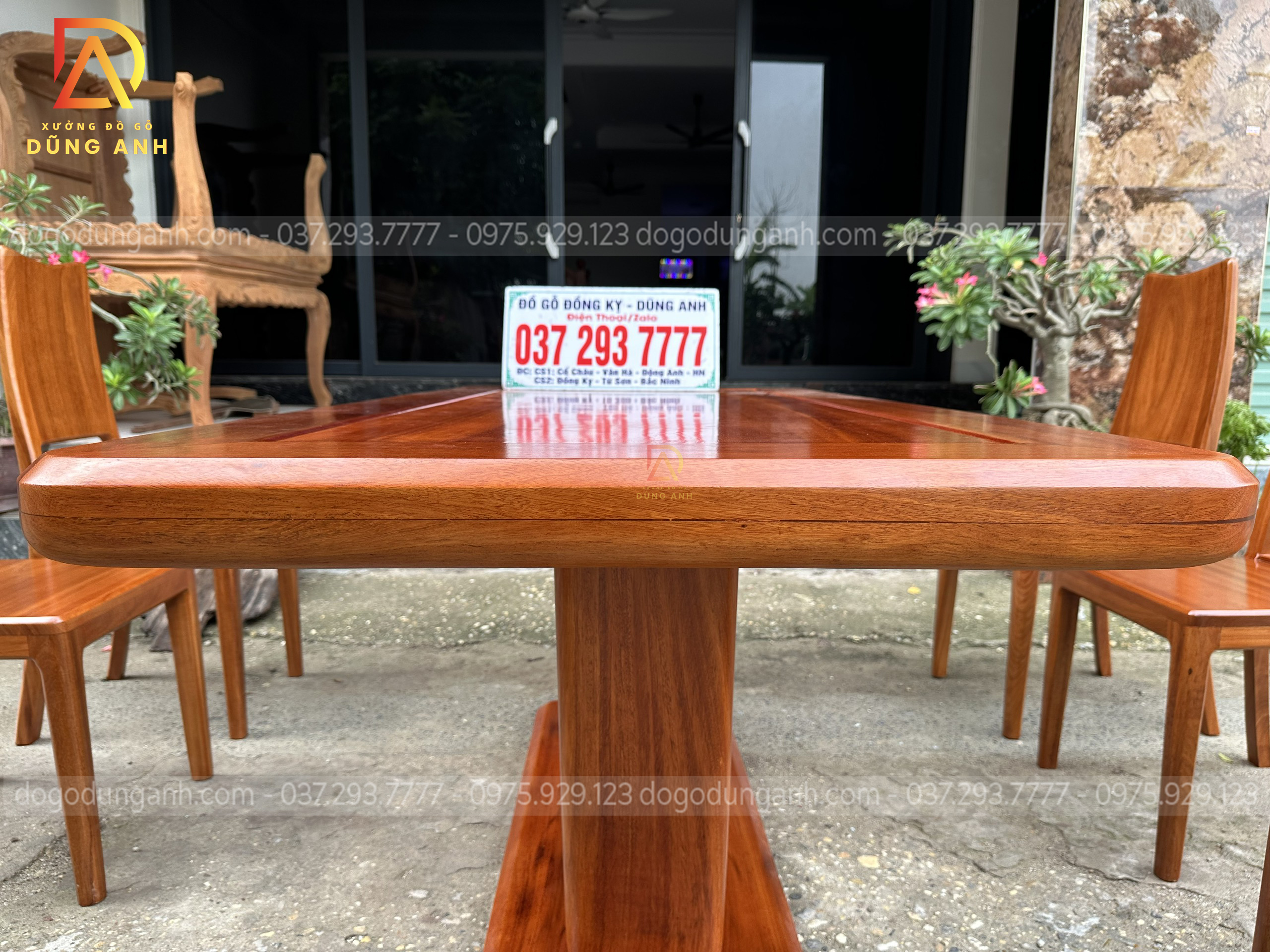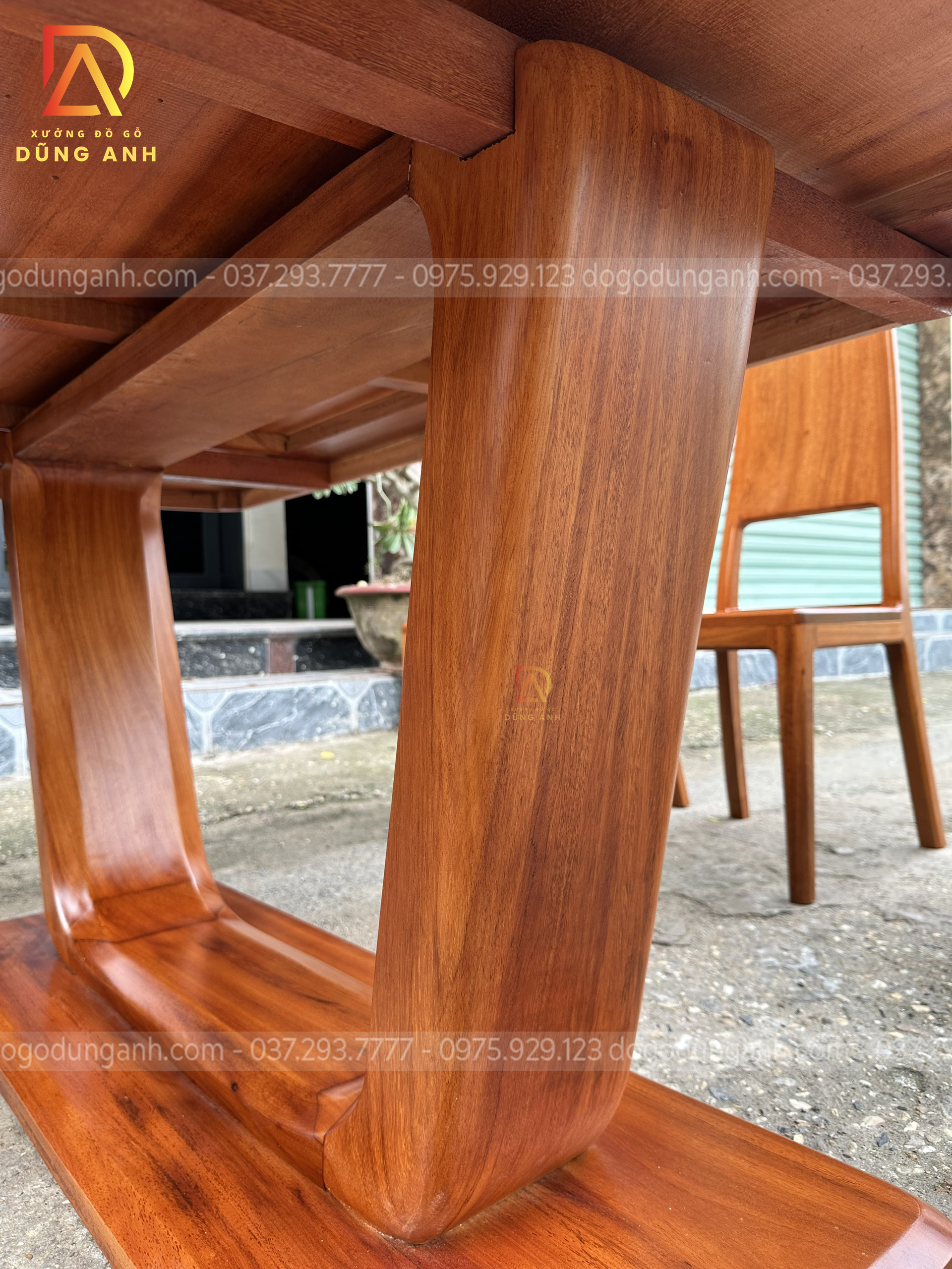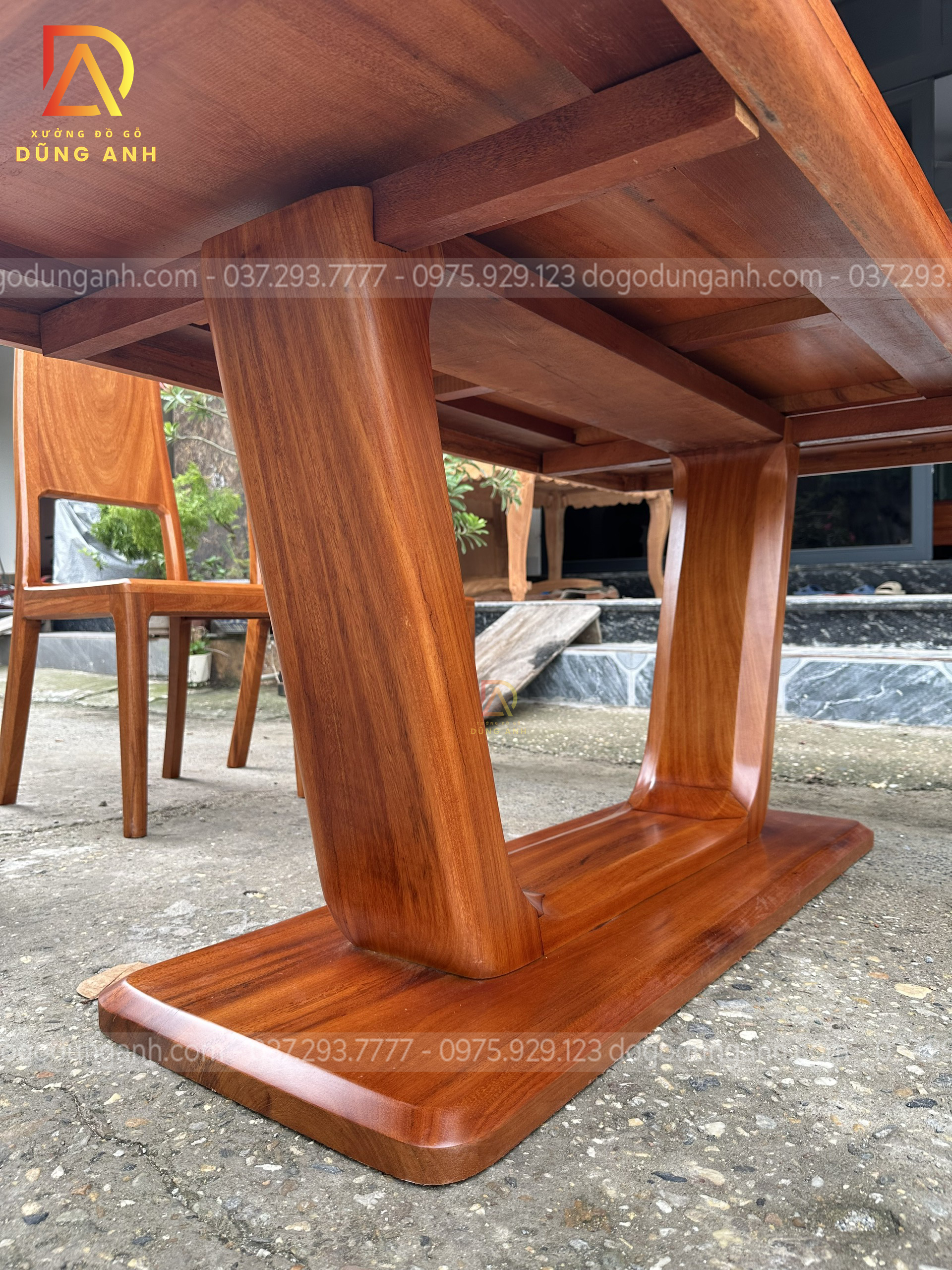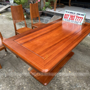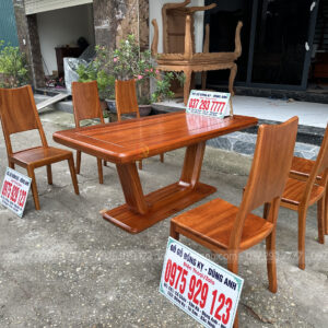 Dogodunganh | Bộ Hiện đại 6 Ghế kết hợp bàn chữ nhật + chân trụ chữ U nguyên khối – Gỗ Gõ Đỏ