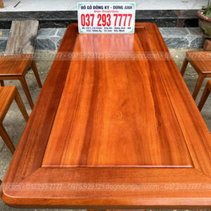 - Chiếc bàn có Kích thước chiều rộng là 90cm dài là 180cm , ván bàn được làm liền một tấm dày 1.5 cm vân gỗ gỏ đỏ cực kì đanh gỗ loại 1